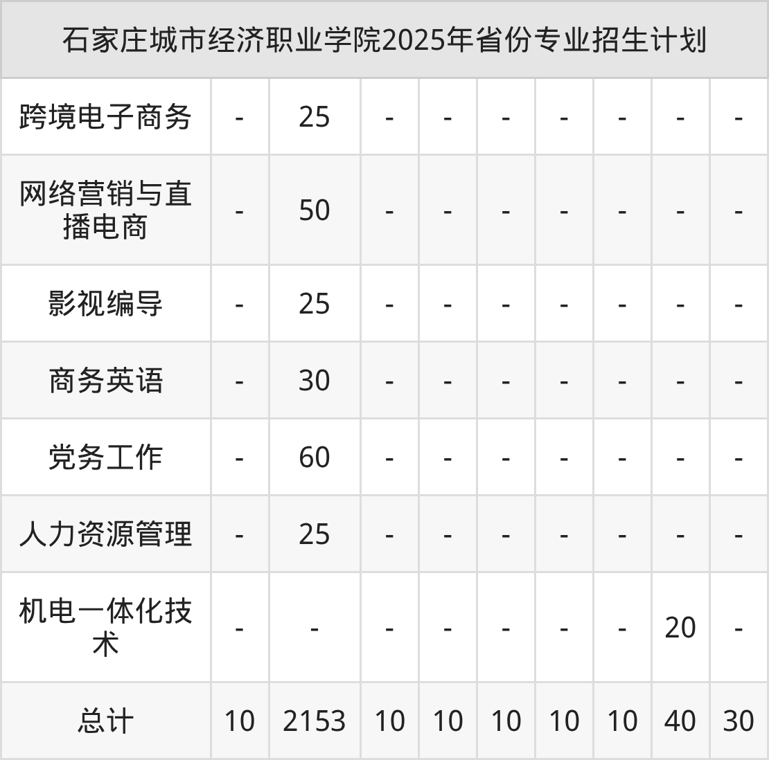 2026年石家庄城市经济职业学院专科招生计划待公布,下面附上2025年数据,暂供参考: