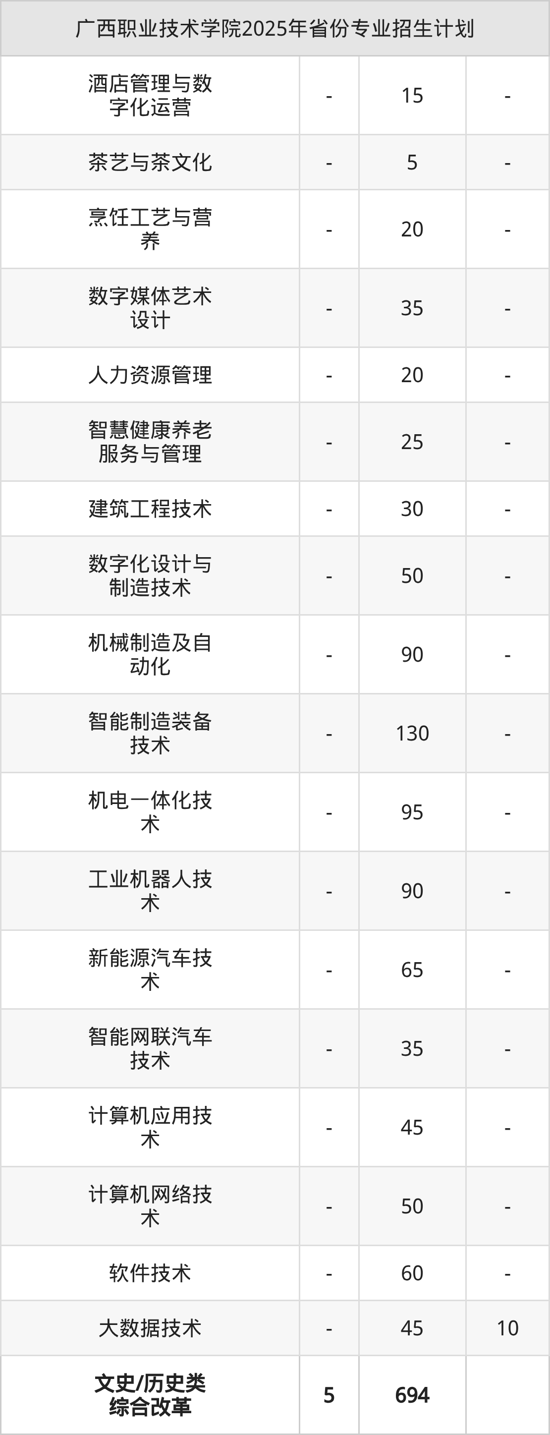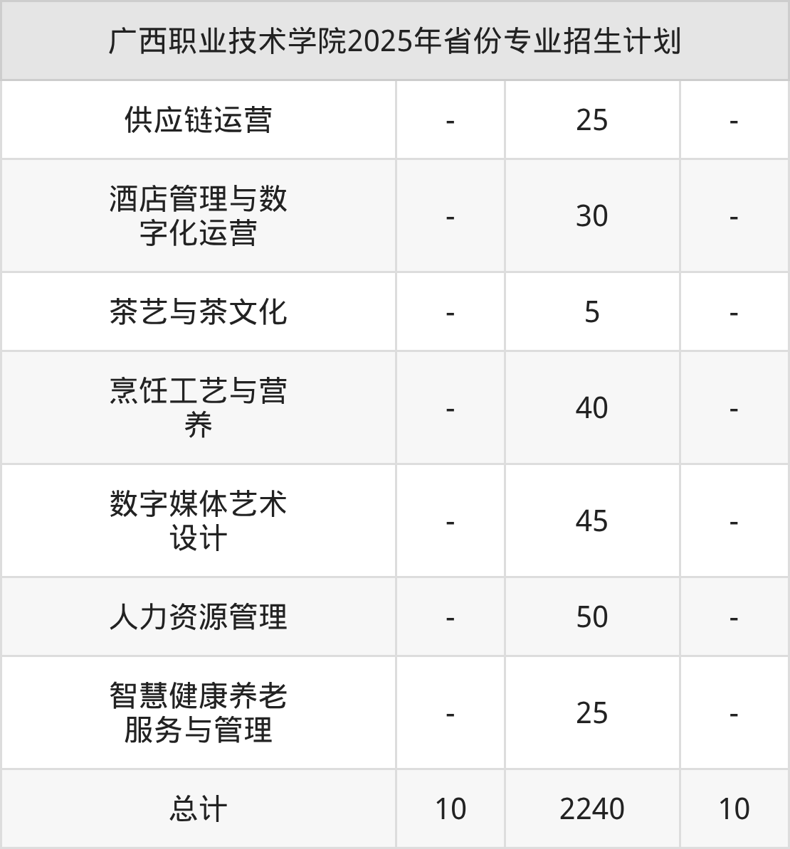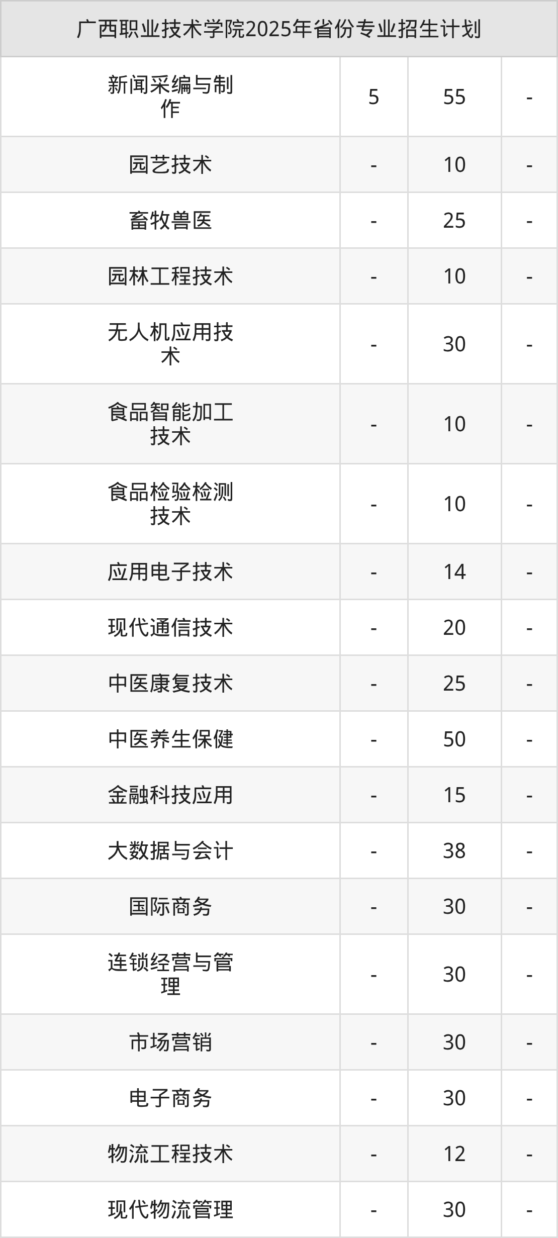 2026年广西职业技术学院专科招生计划待公布,下面附上2025年数据,暂供参考: