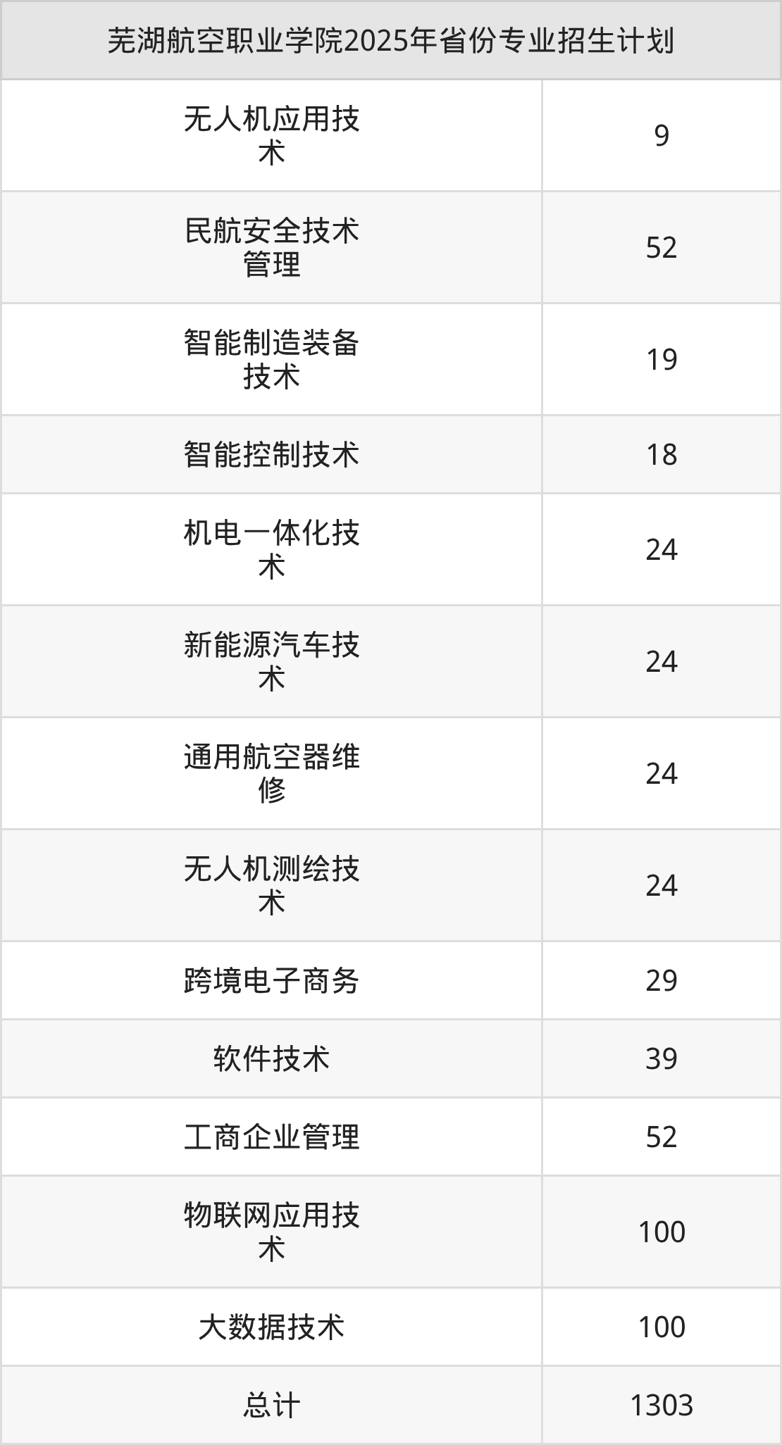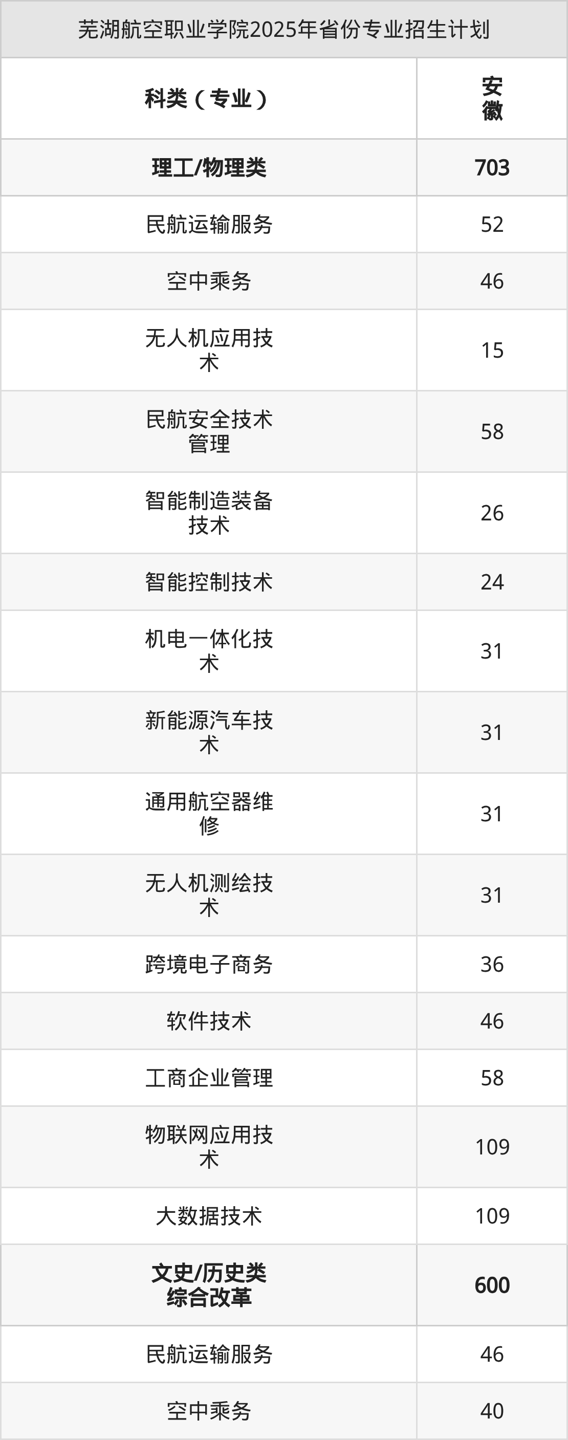 2026年芜湖航空职业学院专科招生计划待公布,下面附上2025年数据,暂供参考: