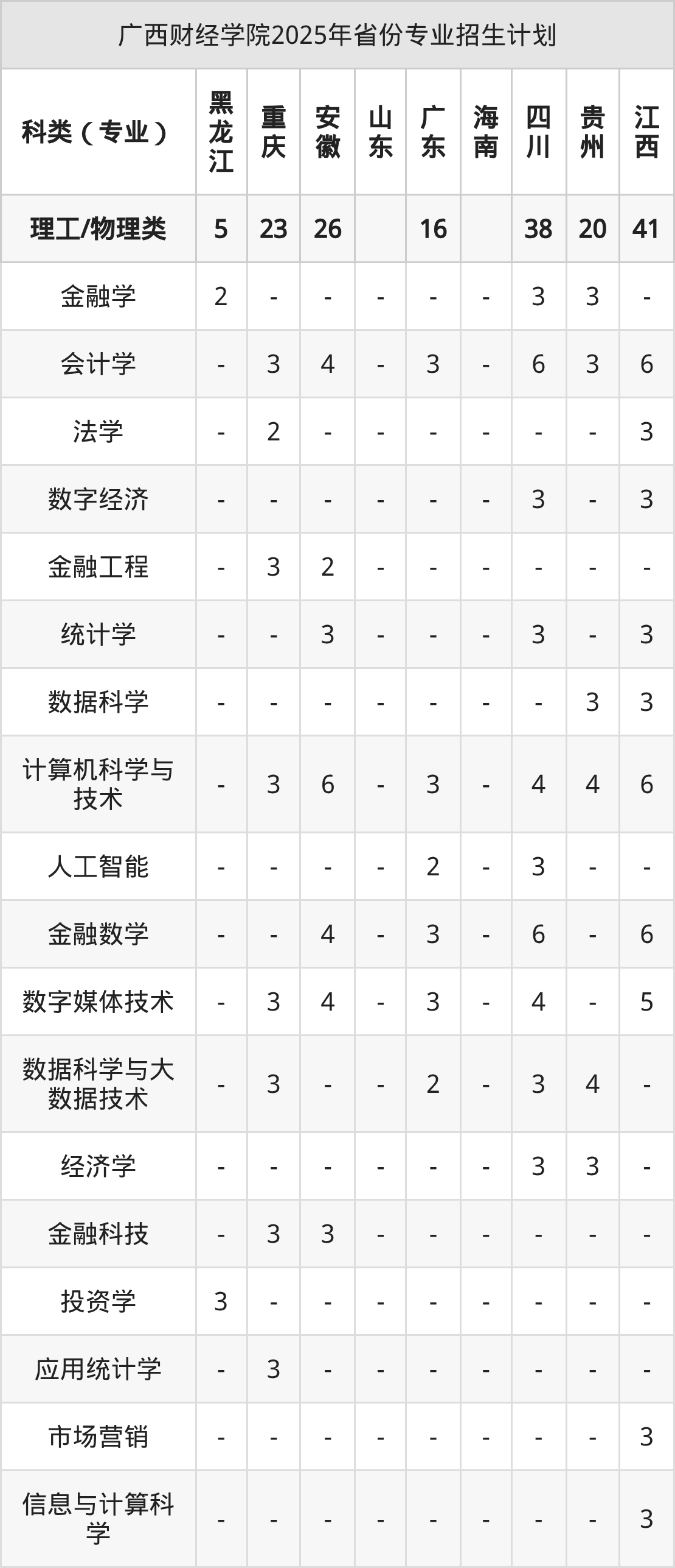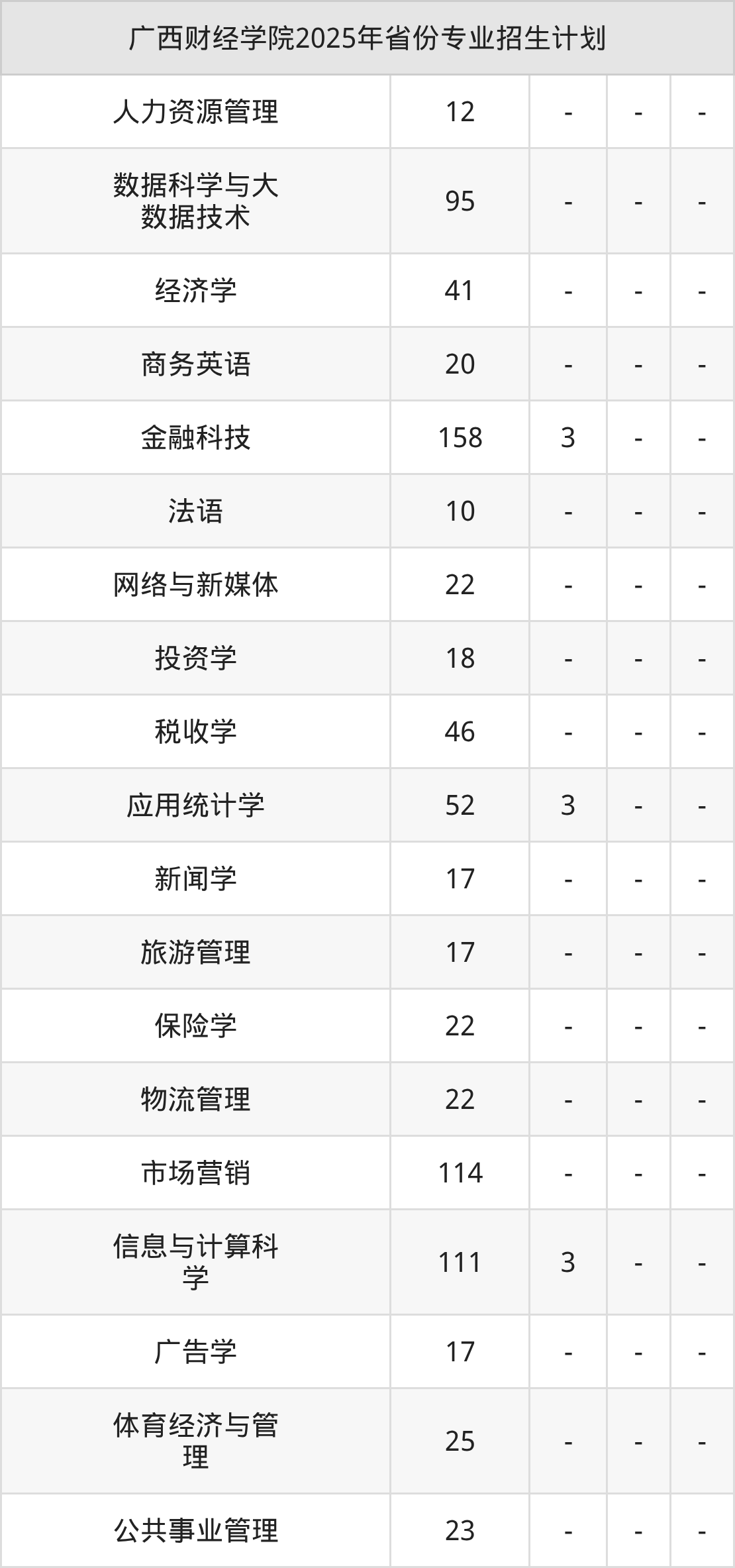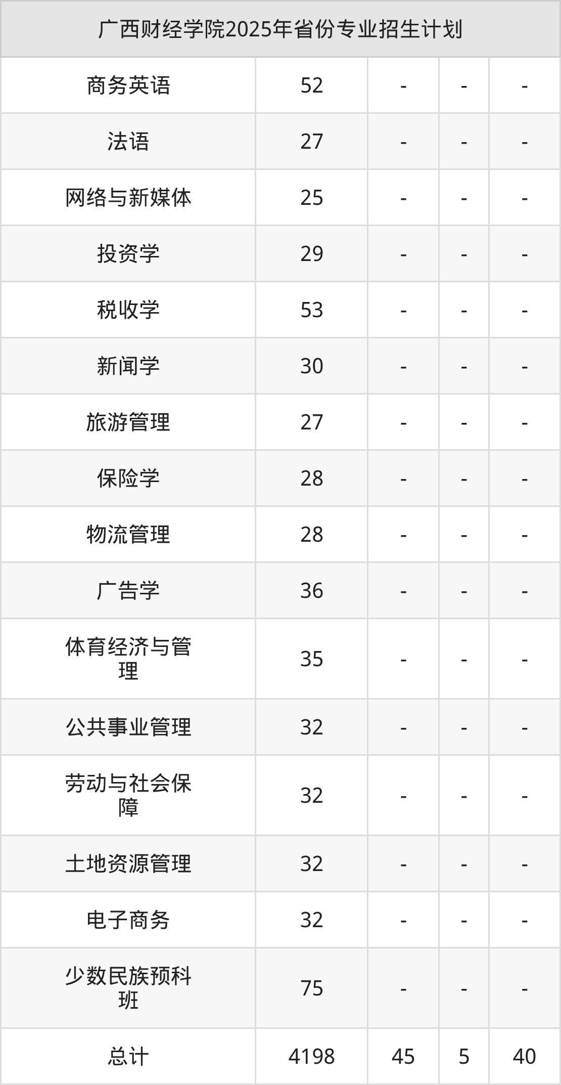 2026年广西财经学院本科招生计划待公布,下面附上2025年数据,暂供参考: