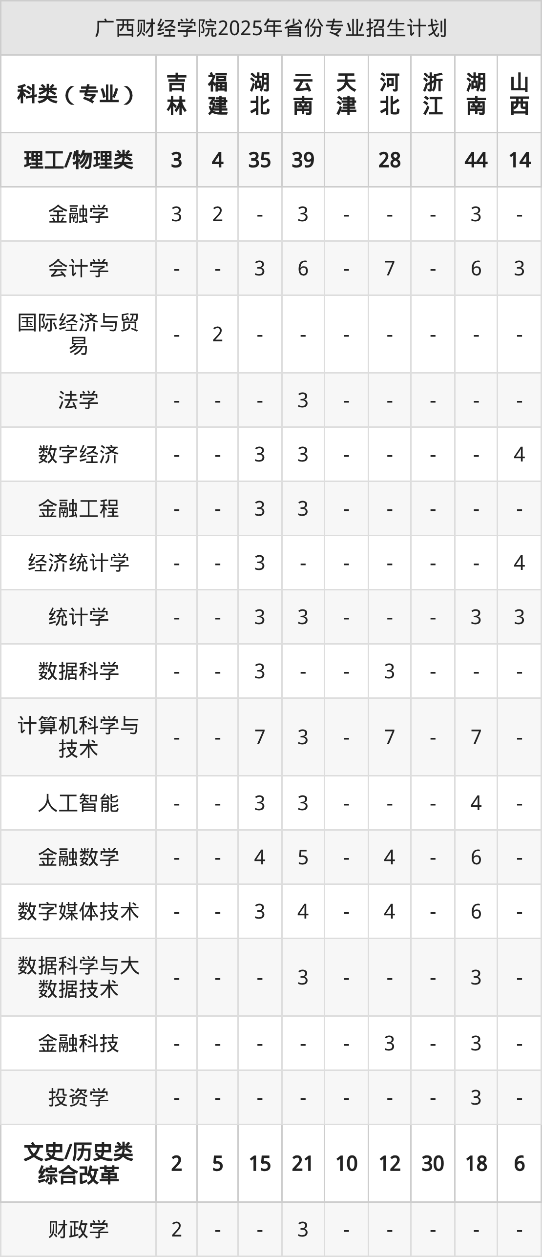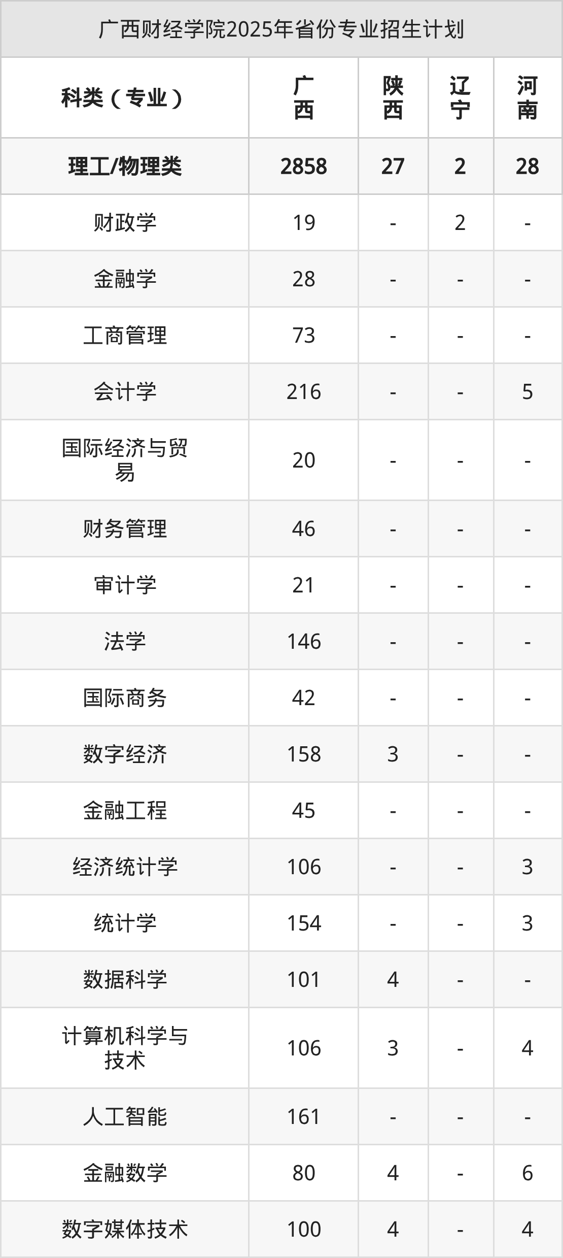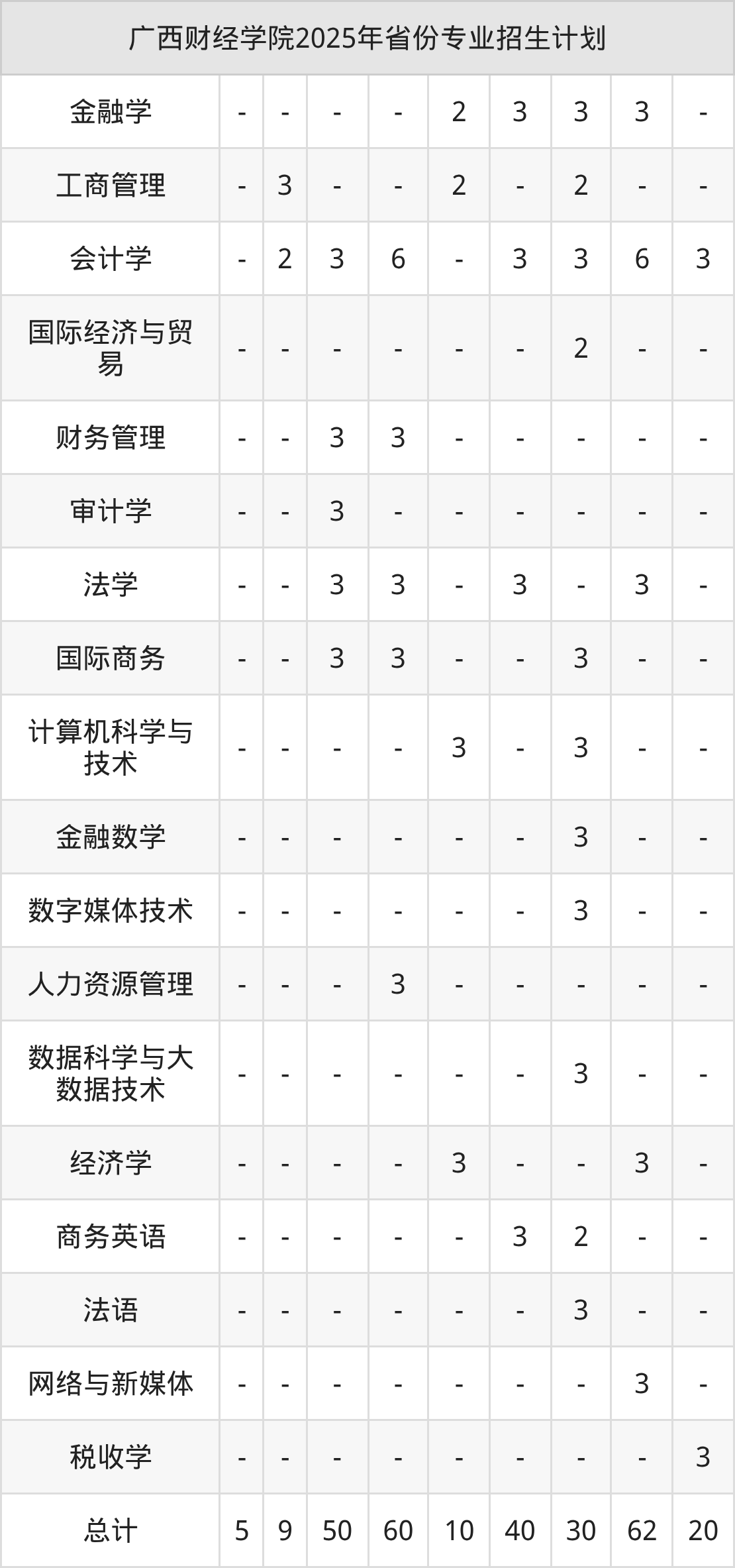 2026年广西财经学院本科招生计划待公布,下面附上2025年数据,暂供参考: