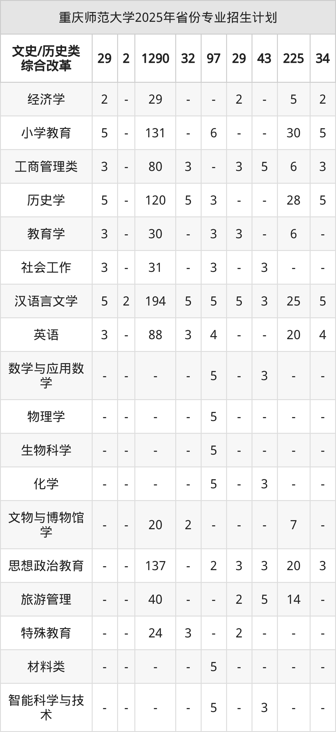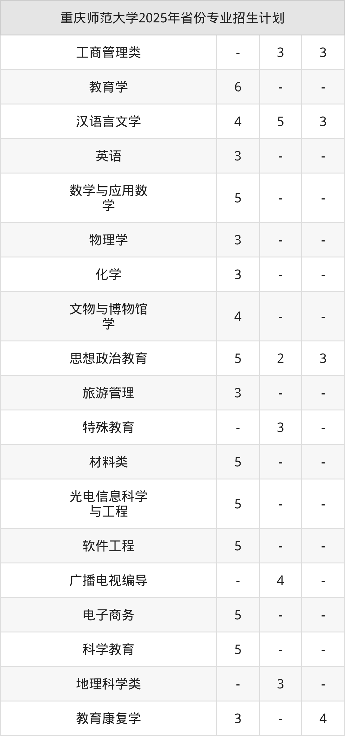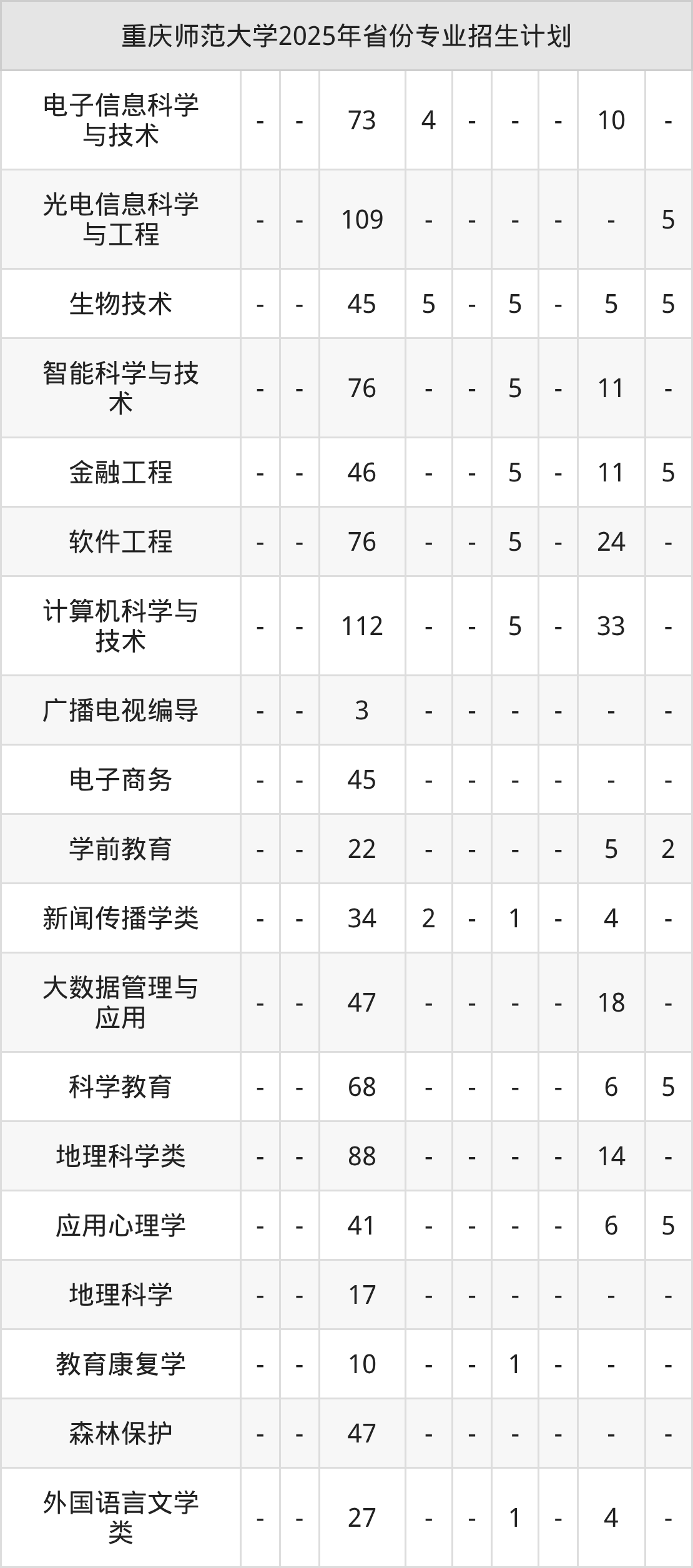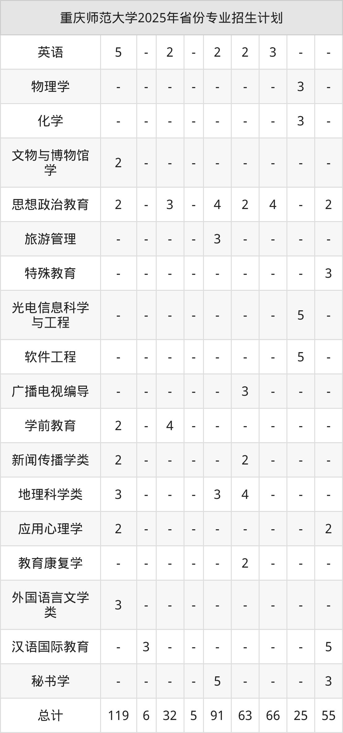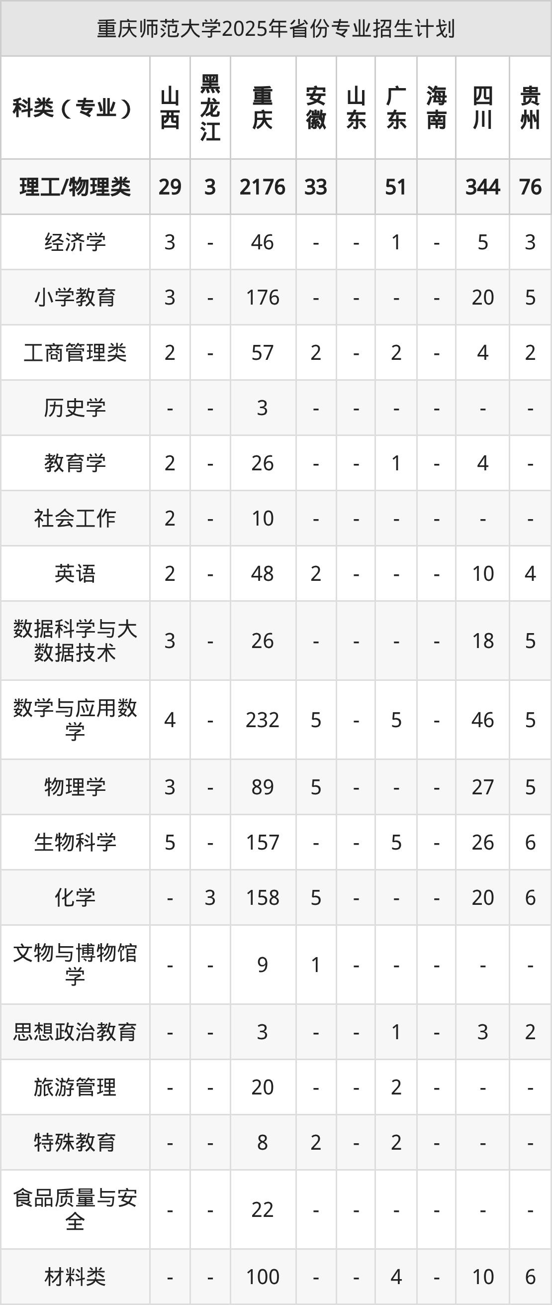2026年重庆师范大学本科招生计划待公布,下面附上2025年数据,暂供参考: