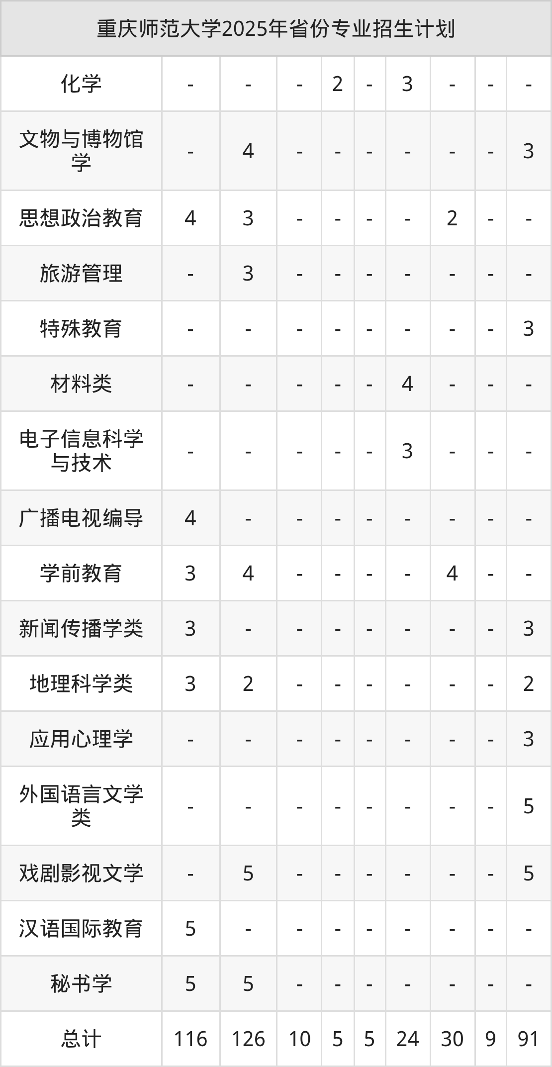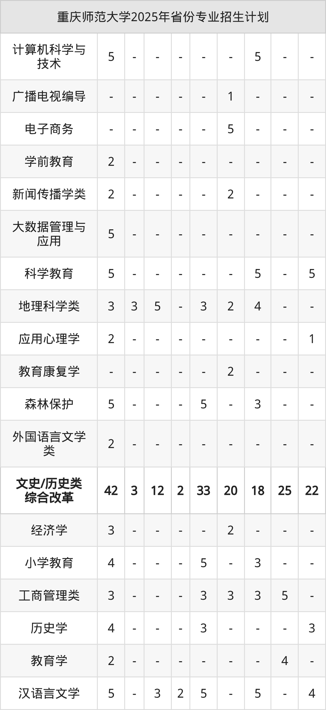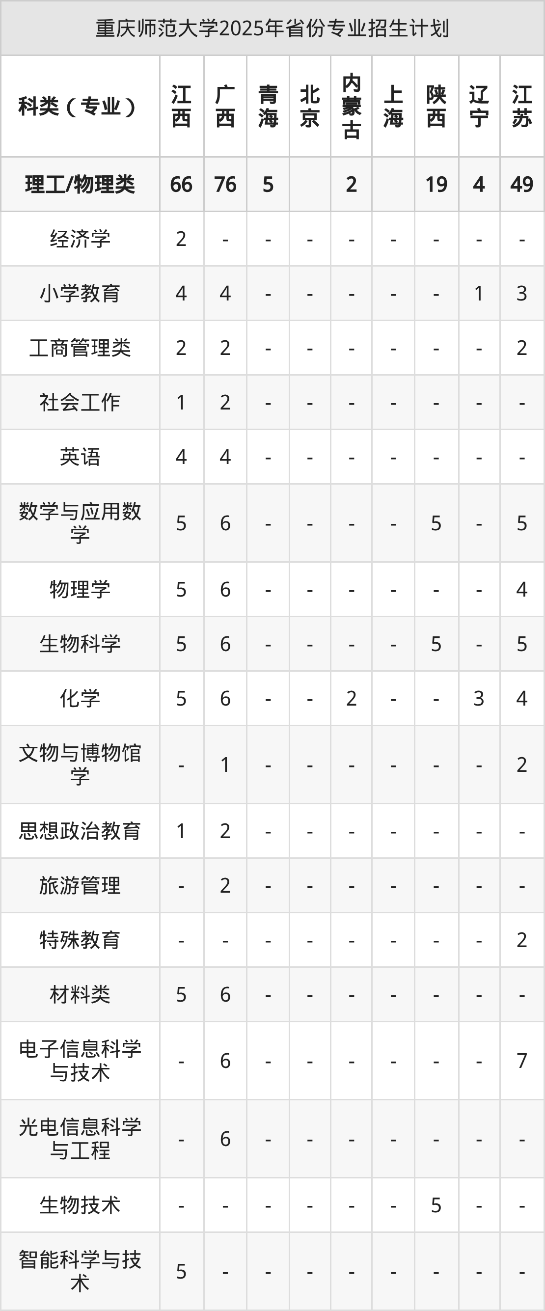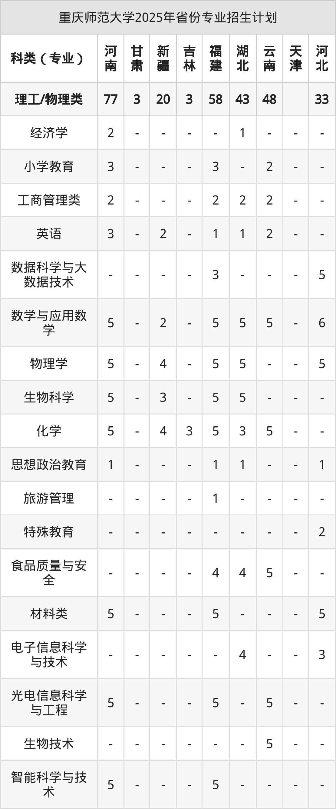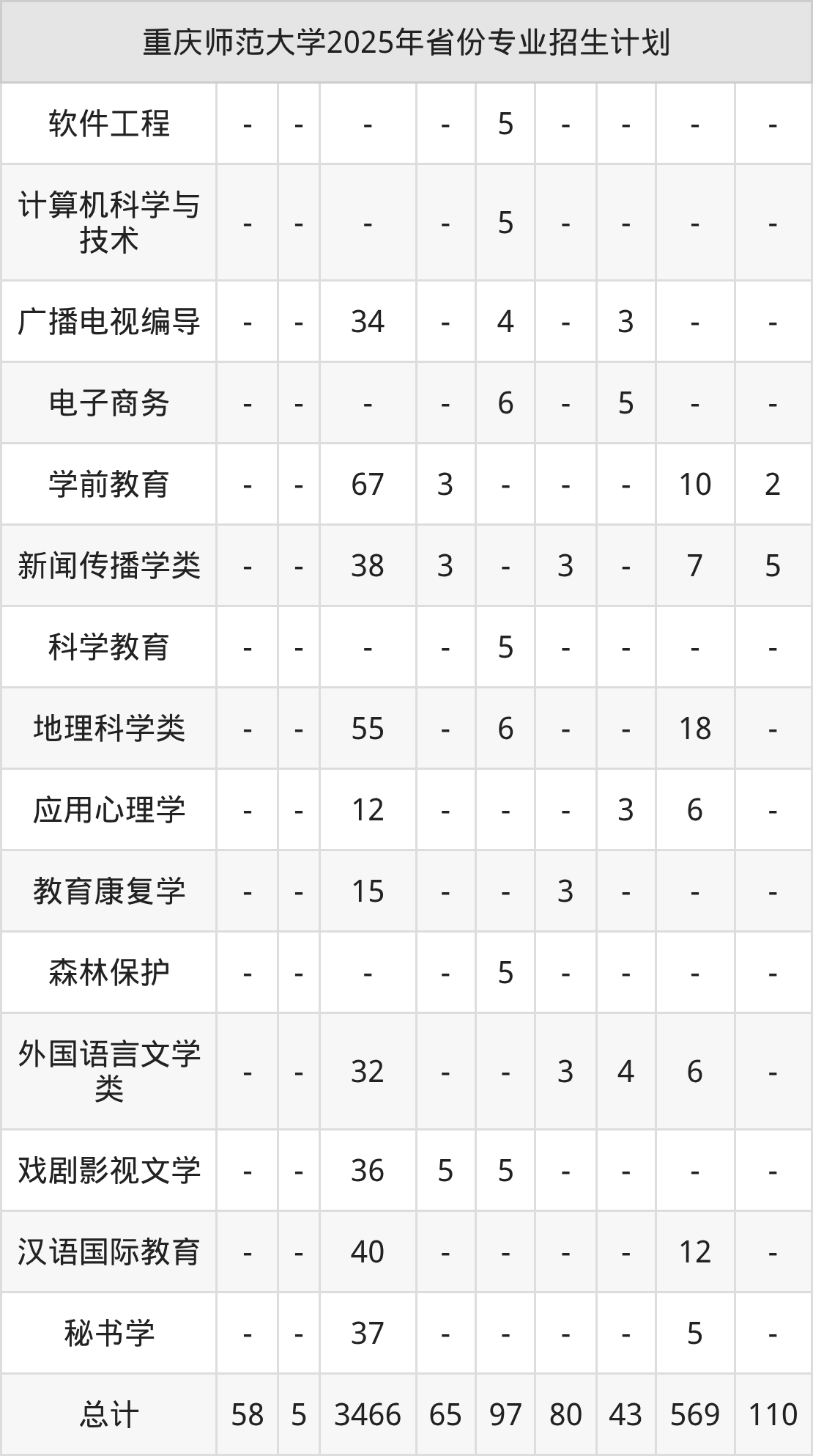 2026年重庆师范大学本科招生计划待公布,下面附上2025年数据,暂供参考: