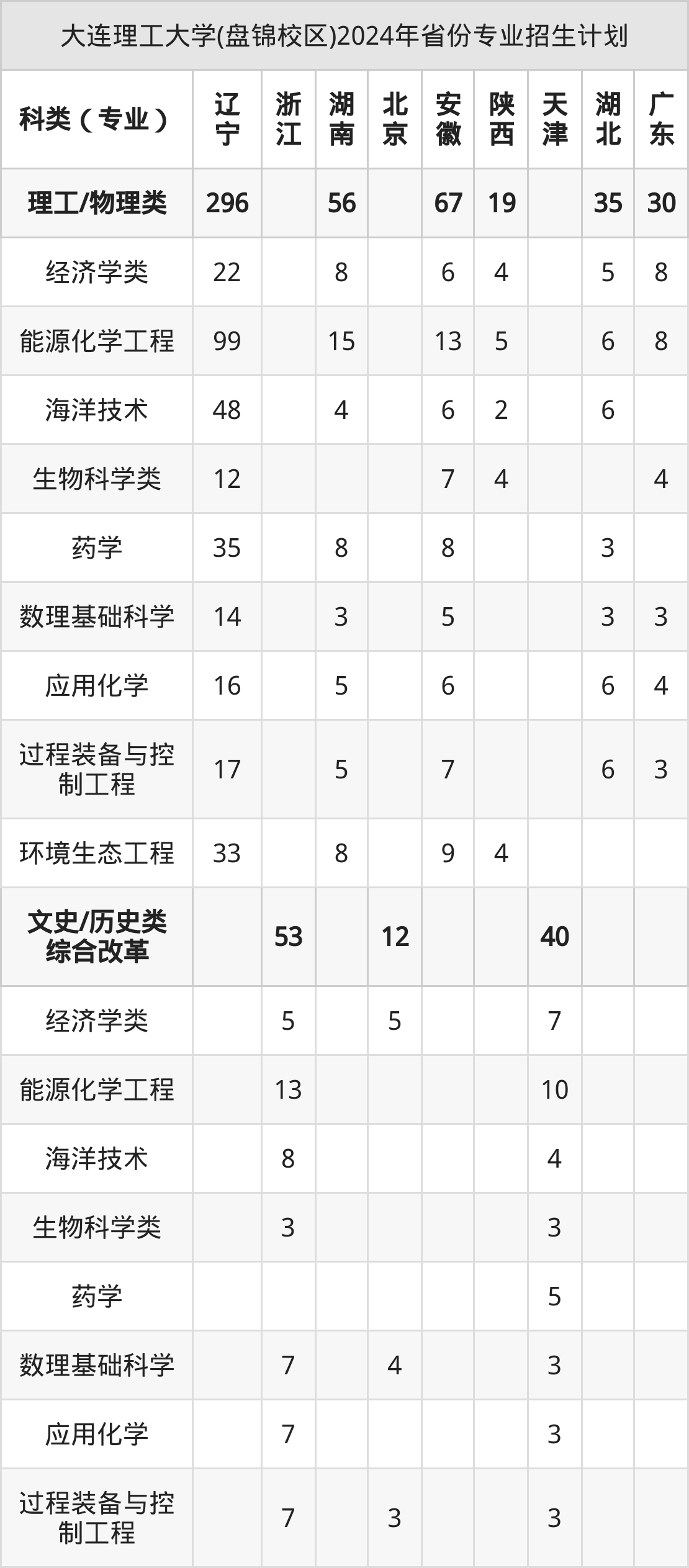 2025年大连理工大学(盘锦校区)本科招生计划待公布,下面附上2024年数据,暂供参考: