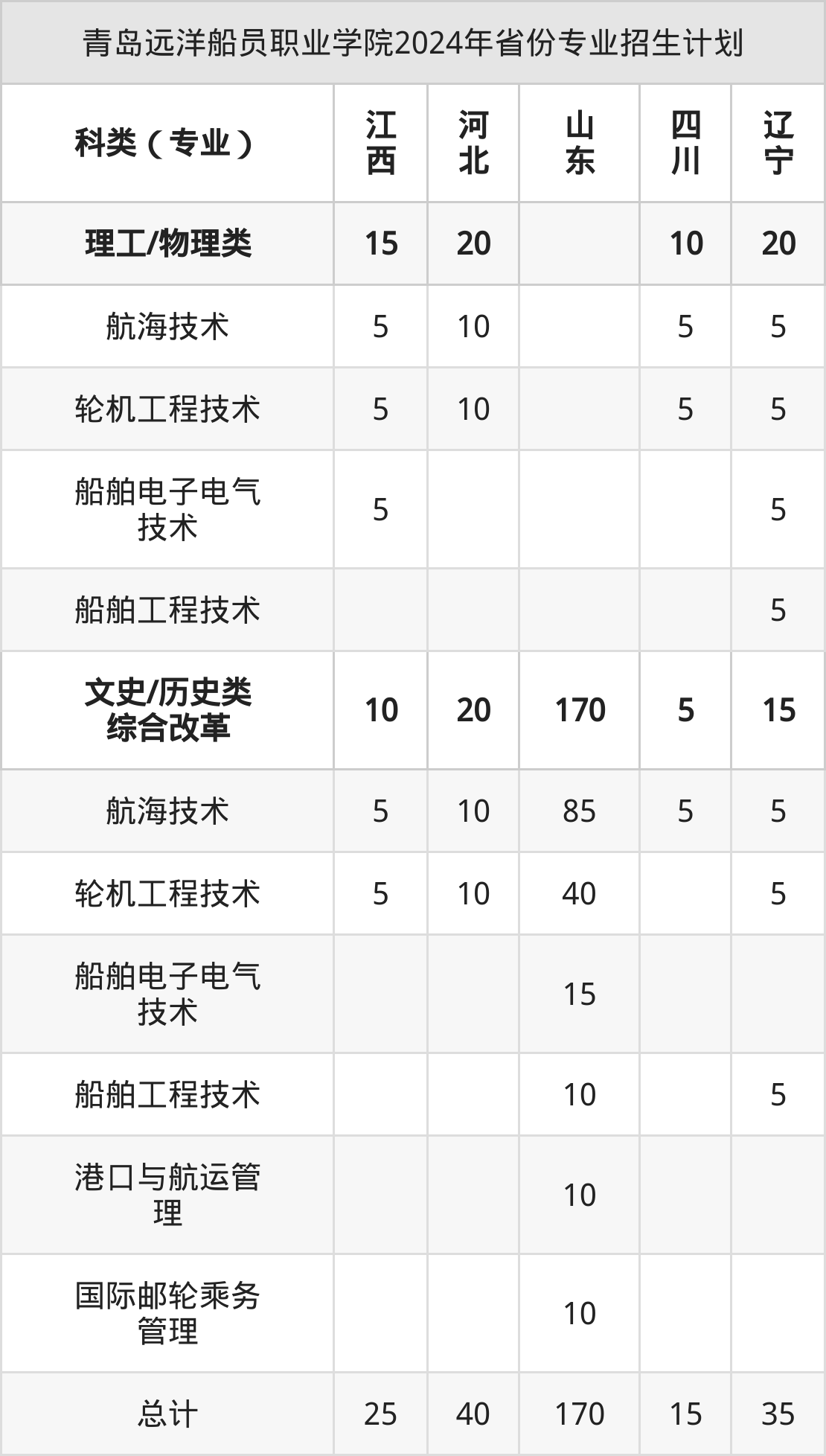 2025年青岛远洋船员职业学院专科招生计划待公布,下面附上2024年数据,暂供参考: