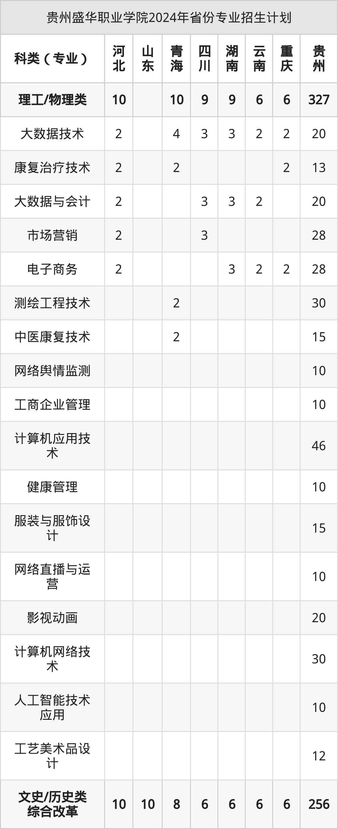 2025年贵州盛华职业学院专科招生计划待公布,下面附上2024年数据,暂供参考: