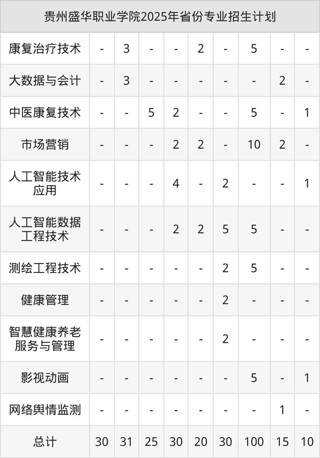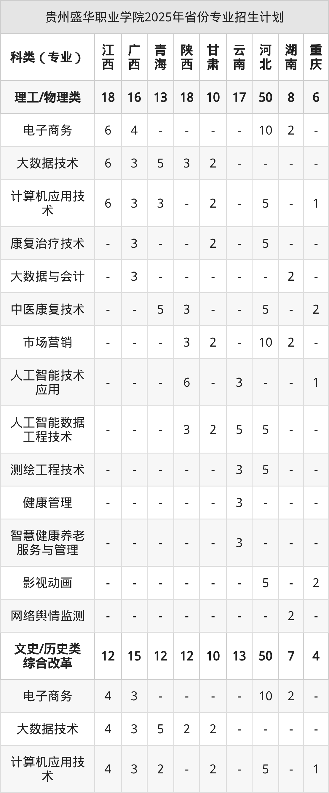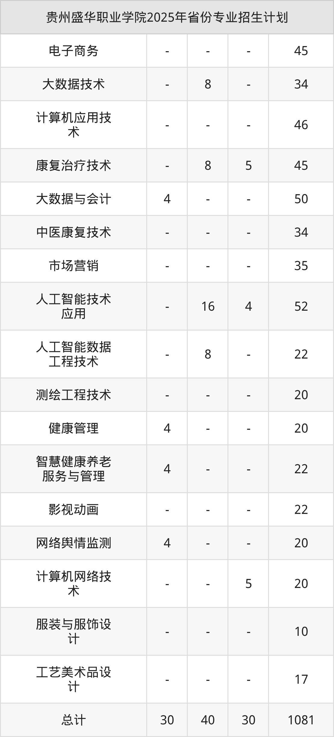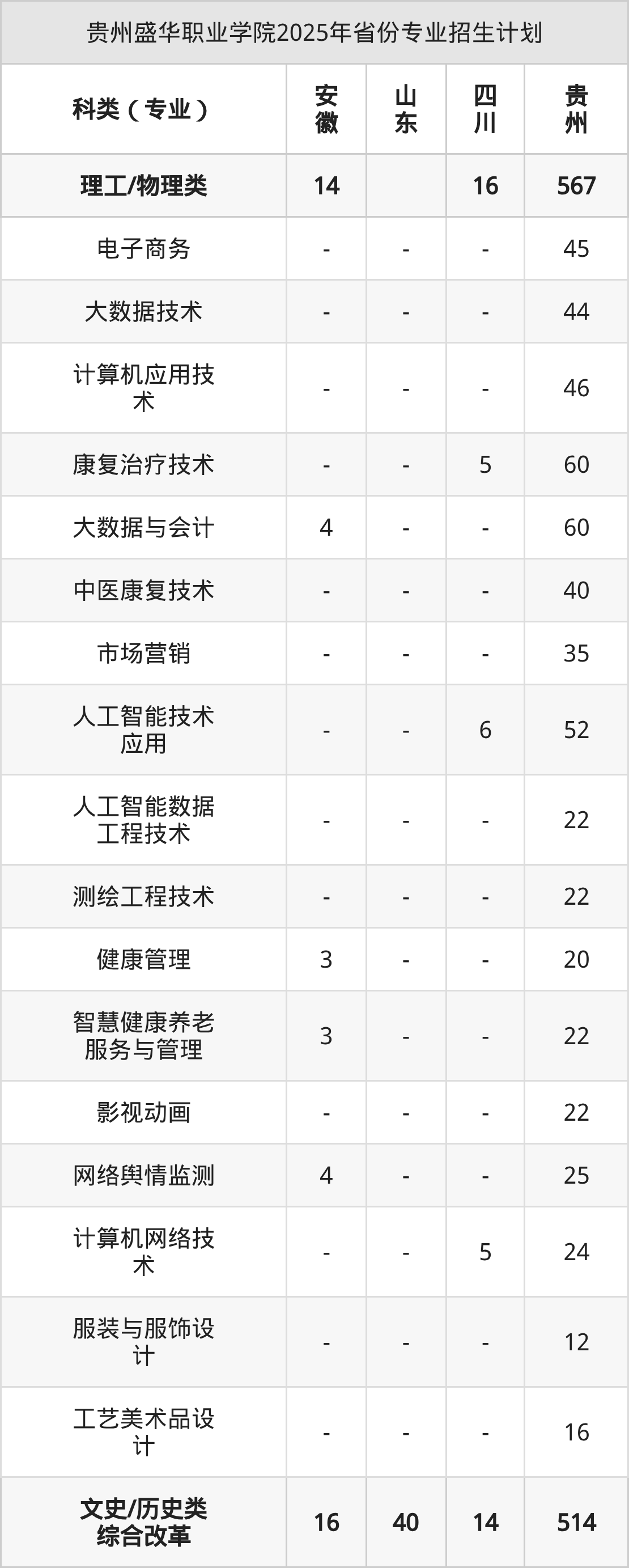 2026年贵州盛华职业学院专科招生计划待公布,下面附上2025年数据,暂供参考:
