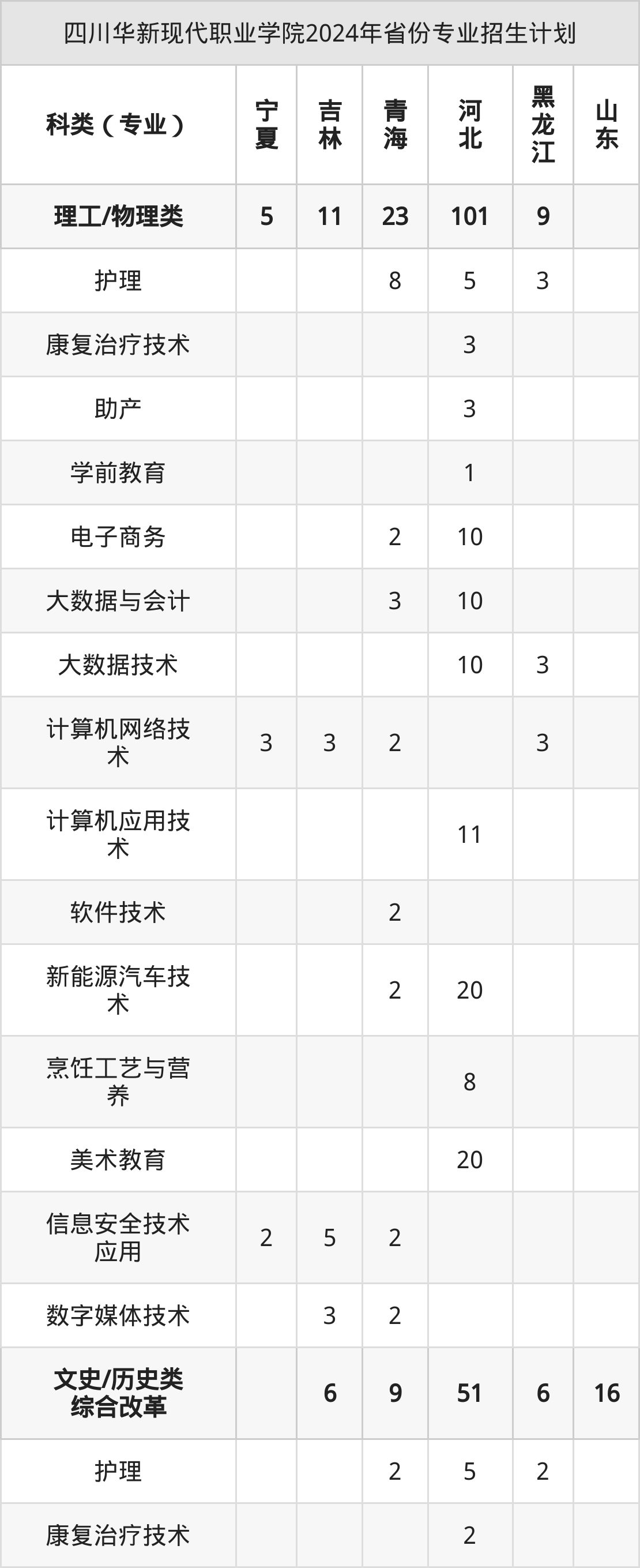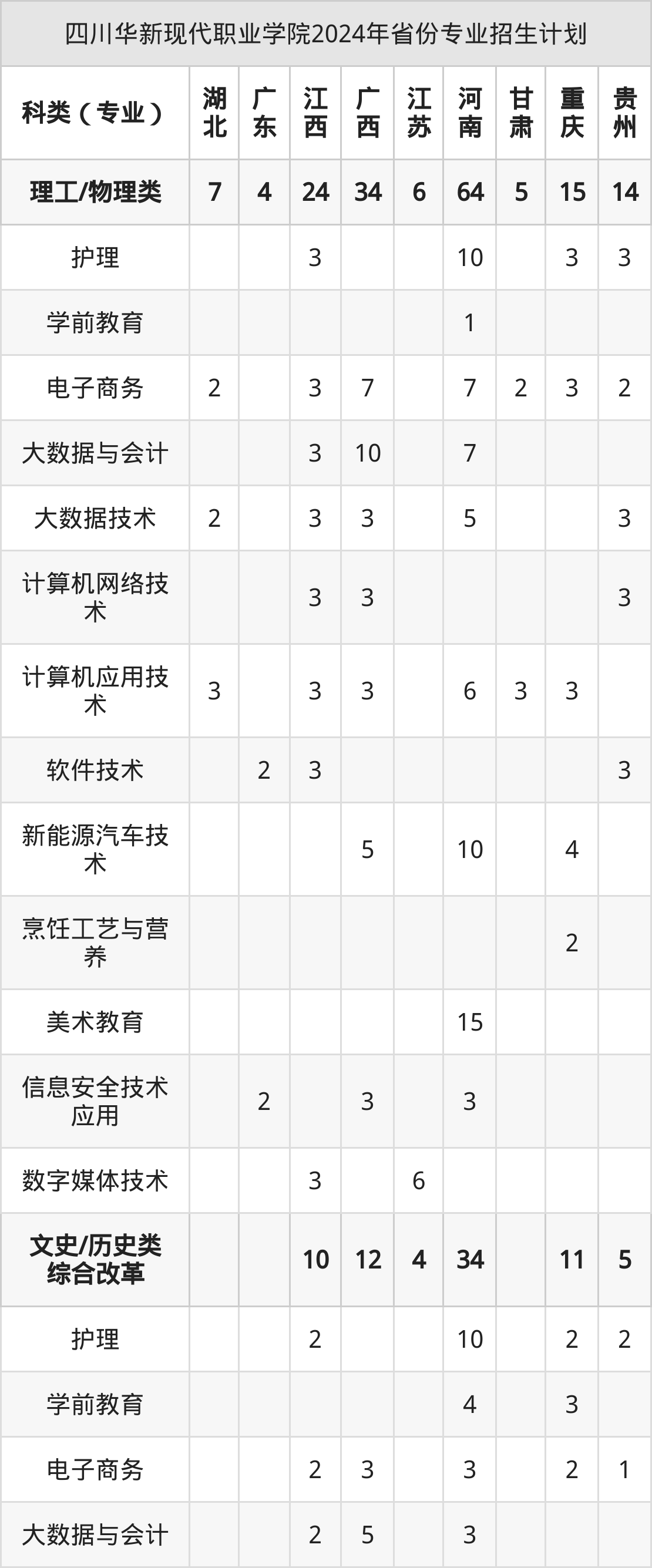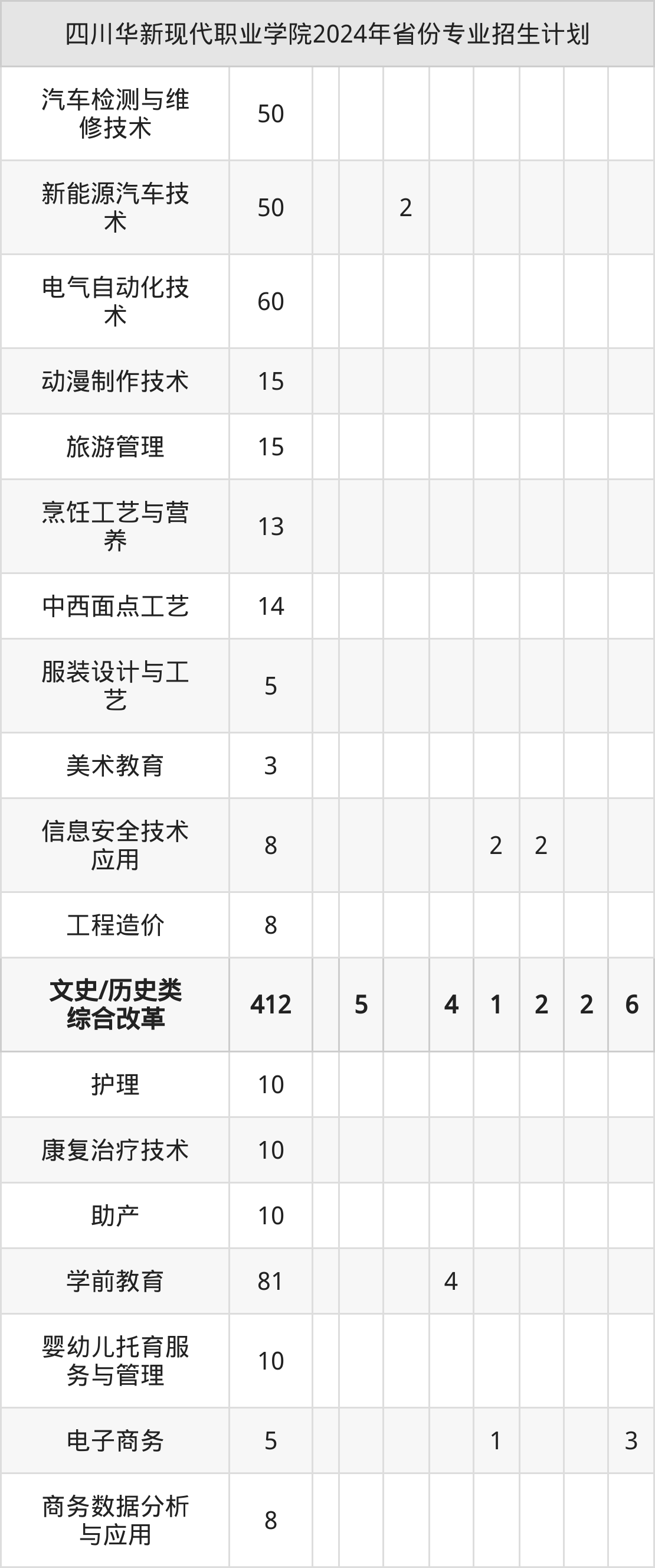 2025年四川华新现代职业学院专科招生计划待公布,下面附上2024年数据,暂供参考: