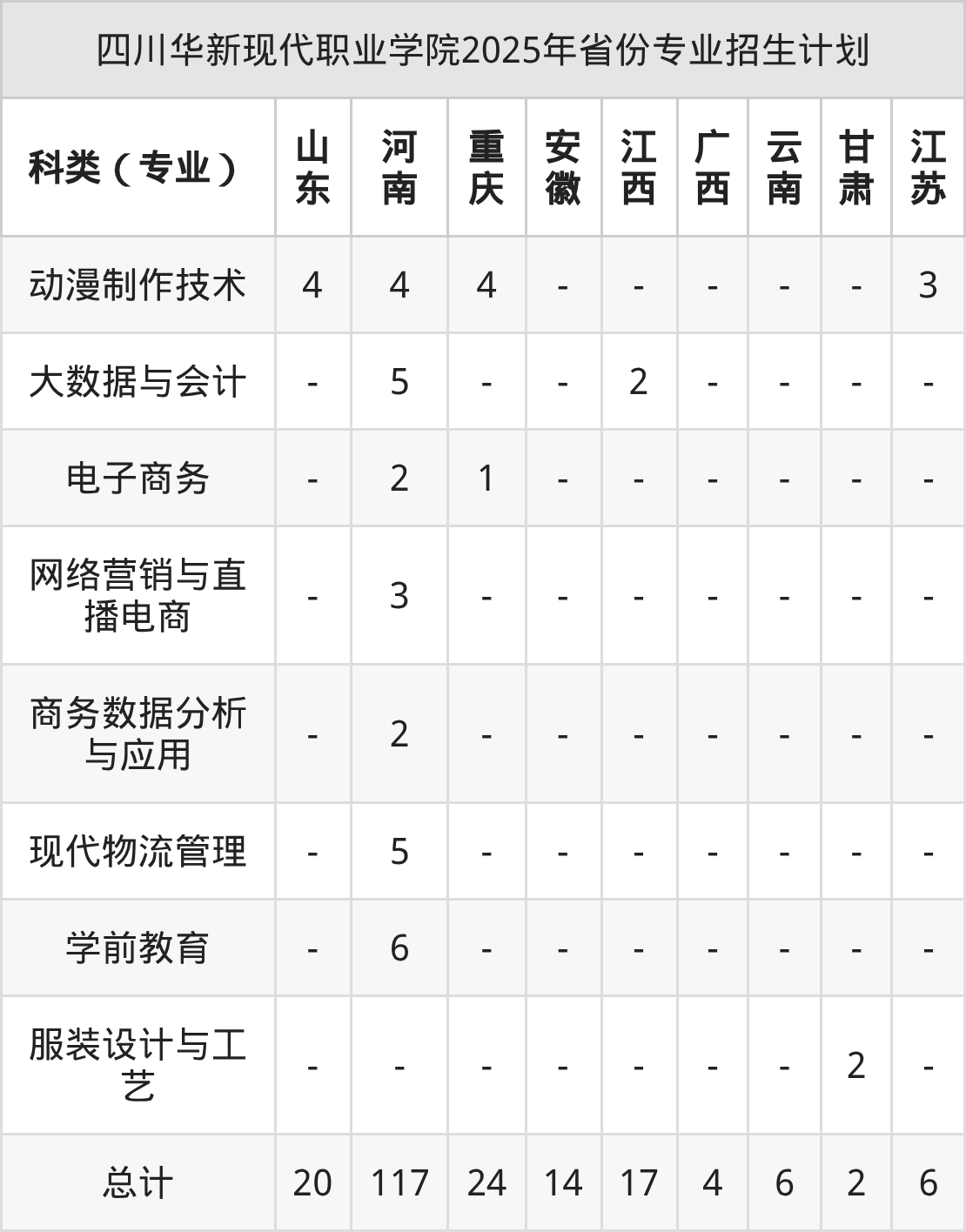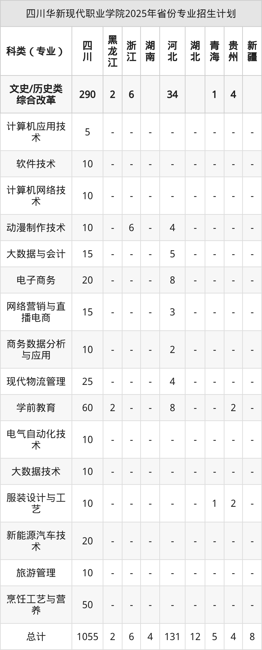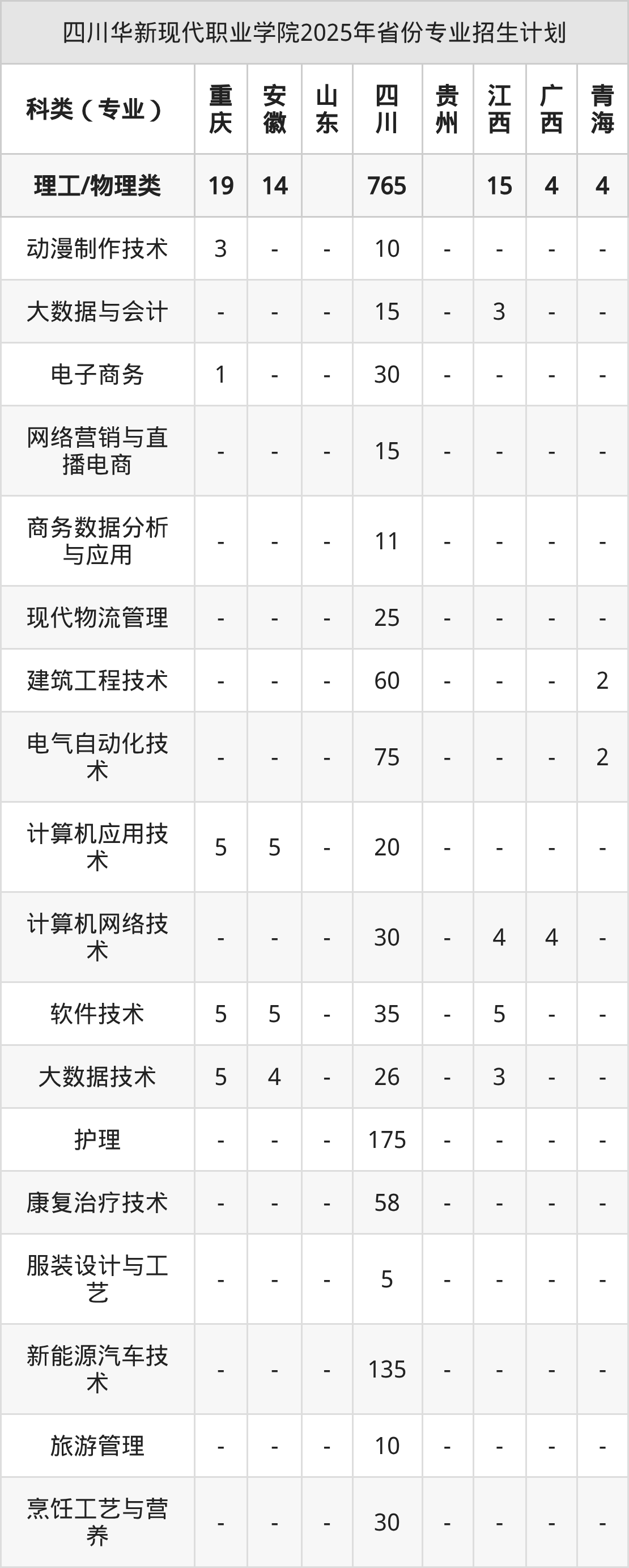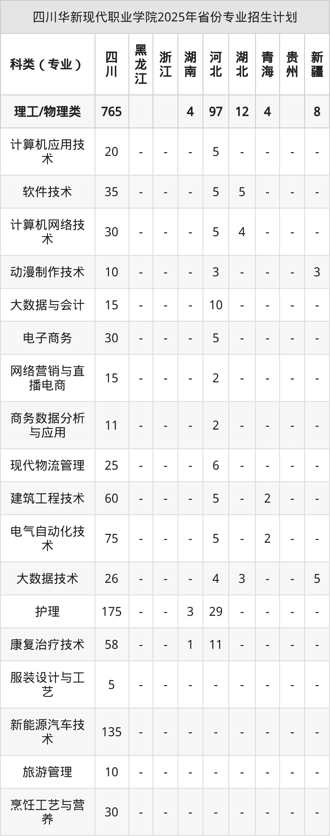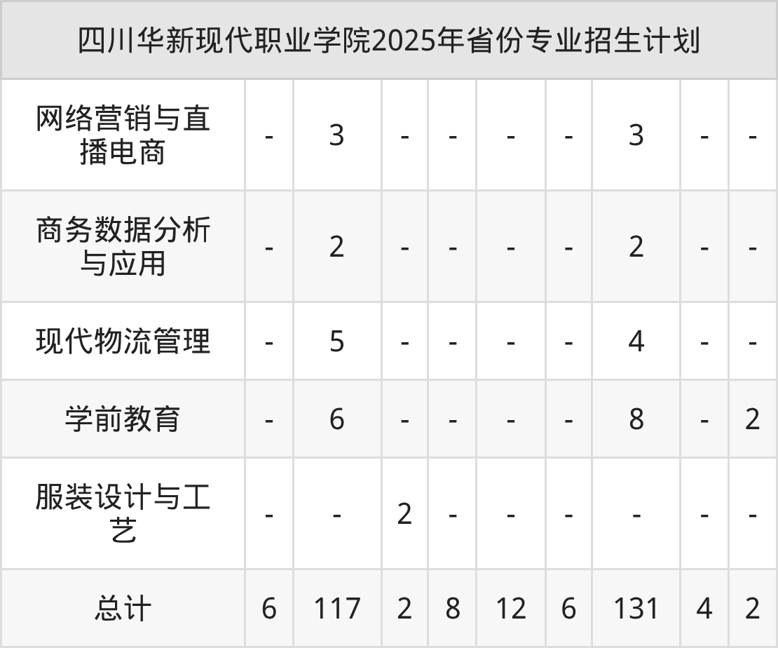 2026年四川华新现代职业学院专科招生计划待公布,下面附上2025年数据,暂供参考: