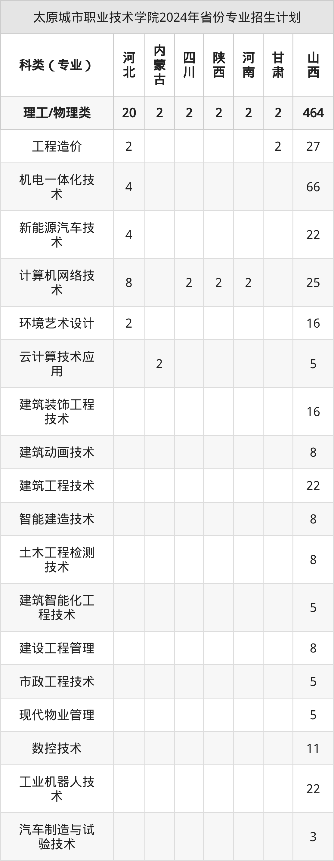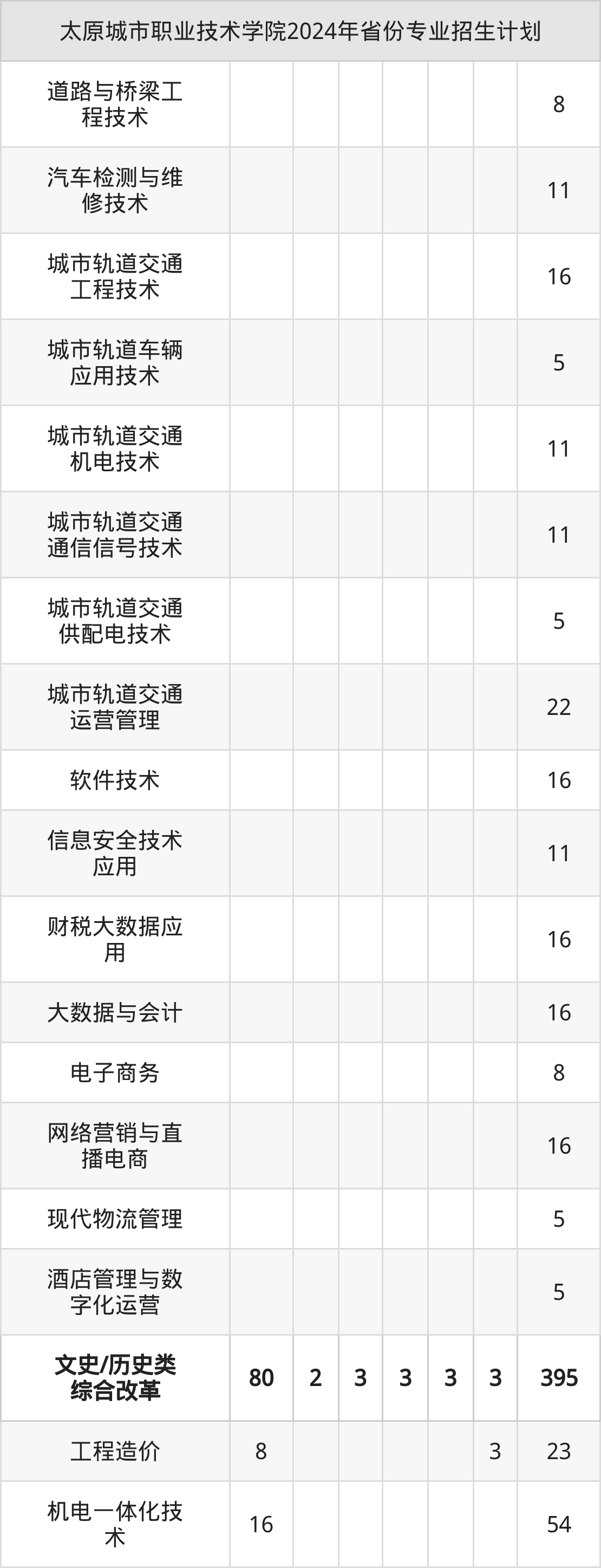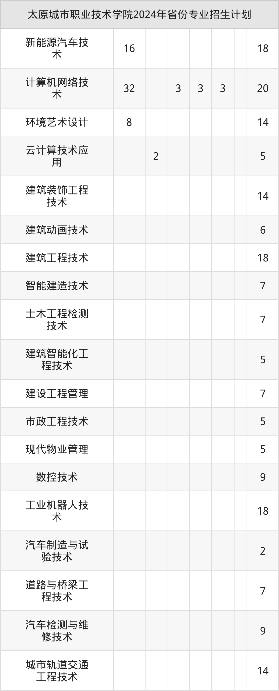 2025年太原城市职业技术学院专科招生计划待公布,下面附上2024年数据,暂供参考: