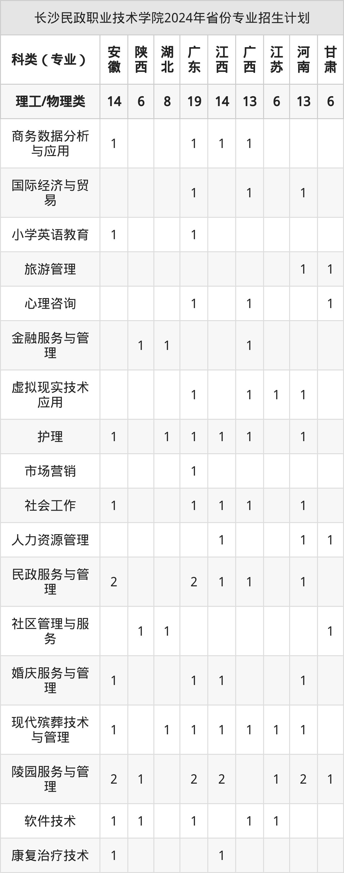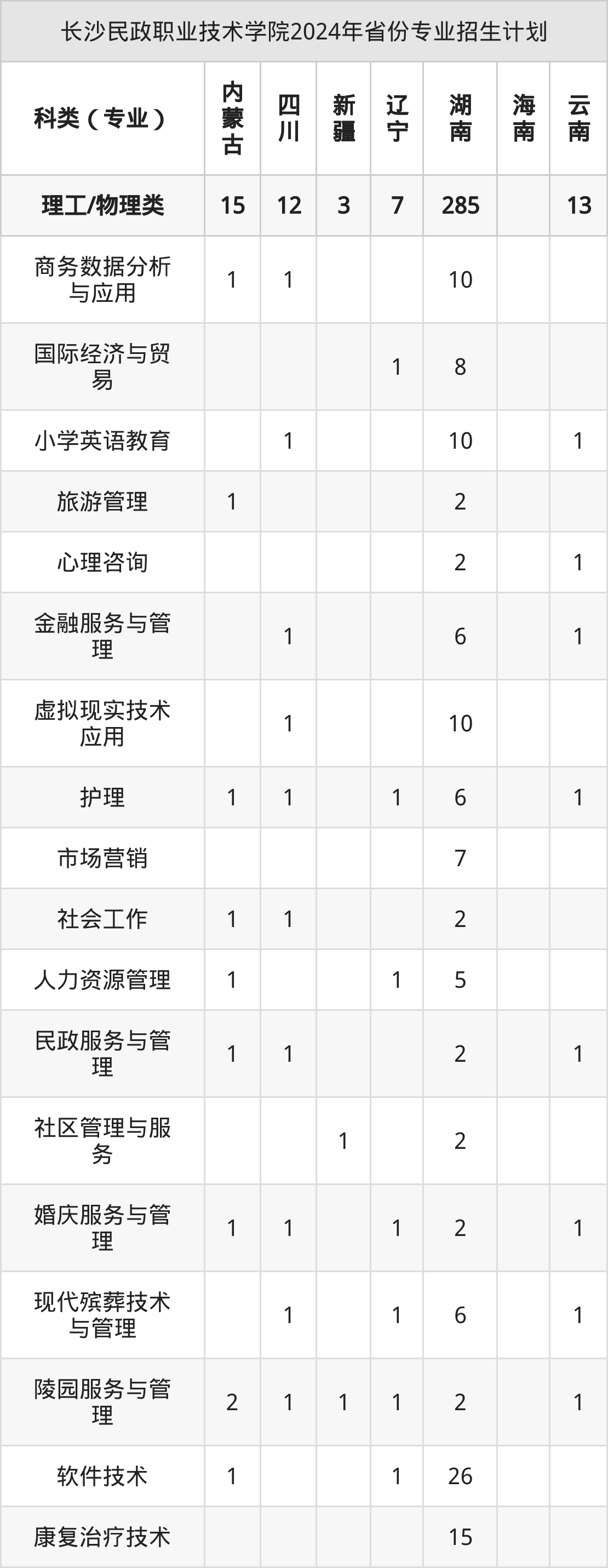 2025年长沙民政职业技术学院专科招生计划待公布,下面附上2024年数据,暂供参考: