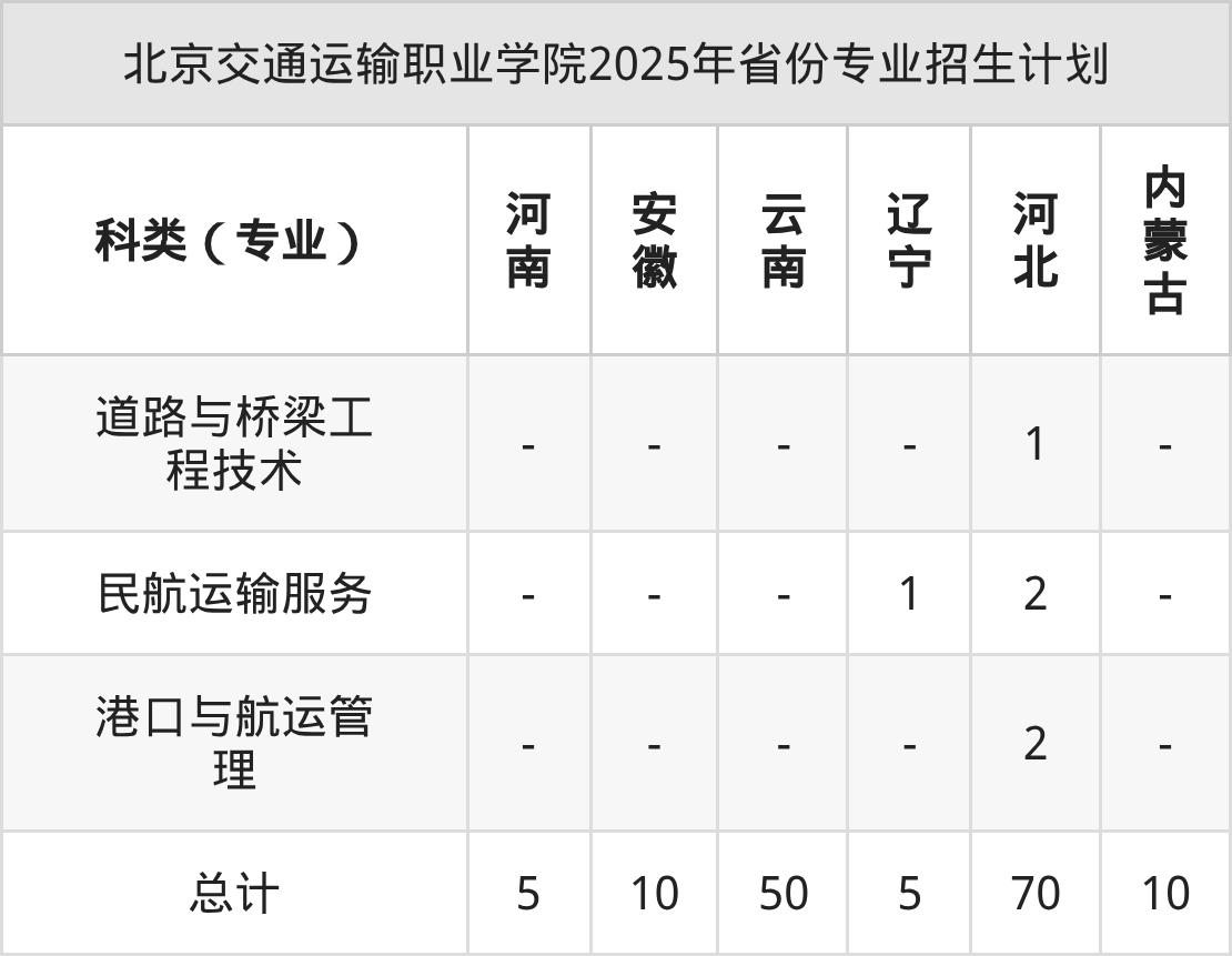 2026年北京交通运输职业学院专科招生计划待公布,下面附上2025年数据,暂供参考: