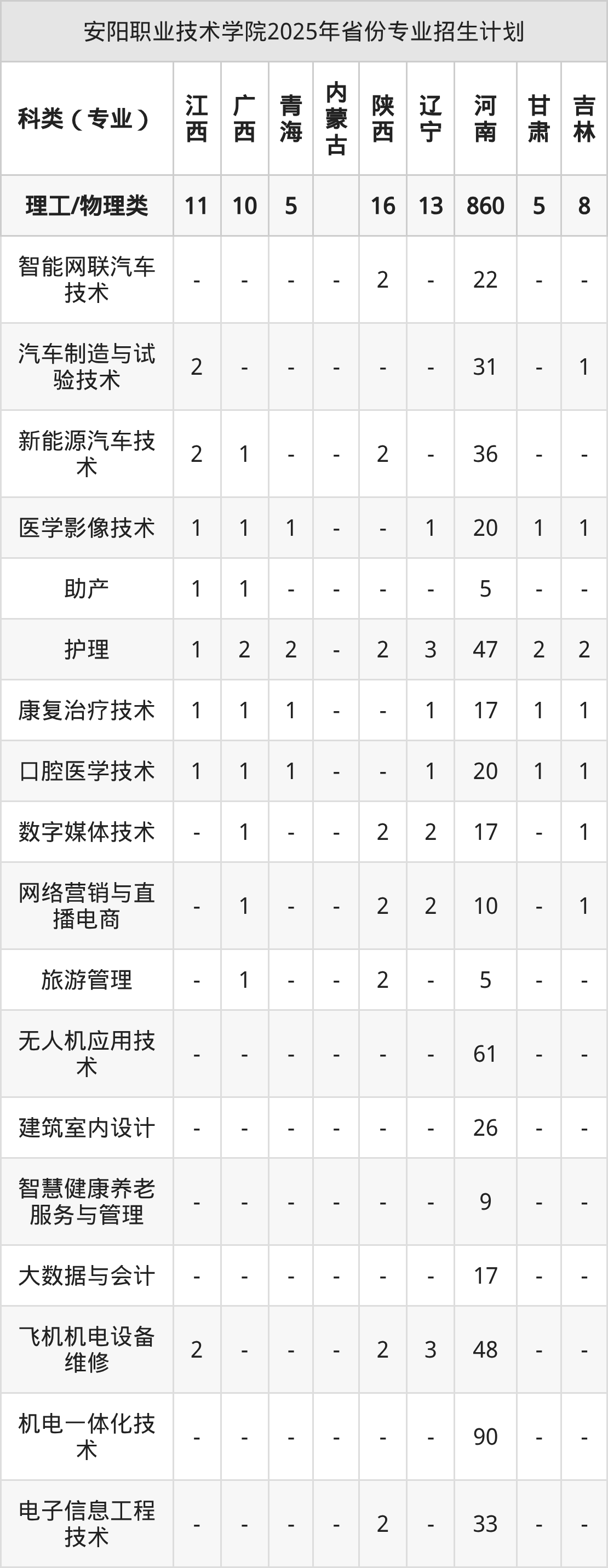2026年安阳职业技术学院专科招生计划待公布,下面附上2025年数据,暂供参考: