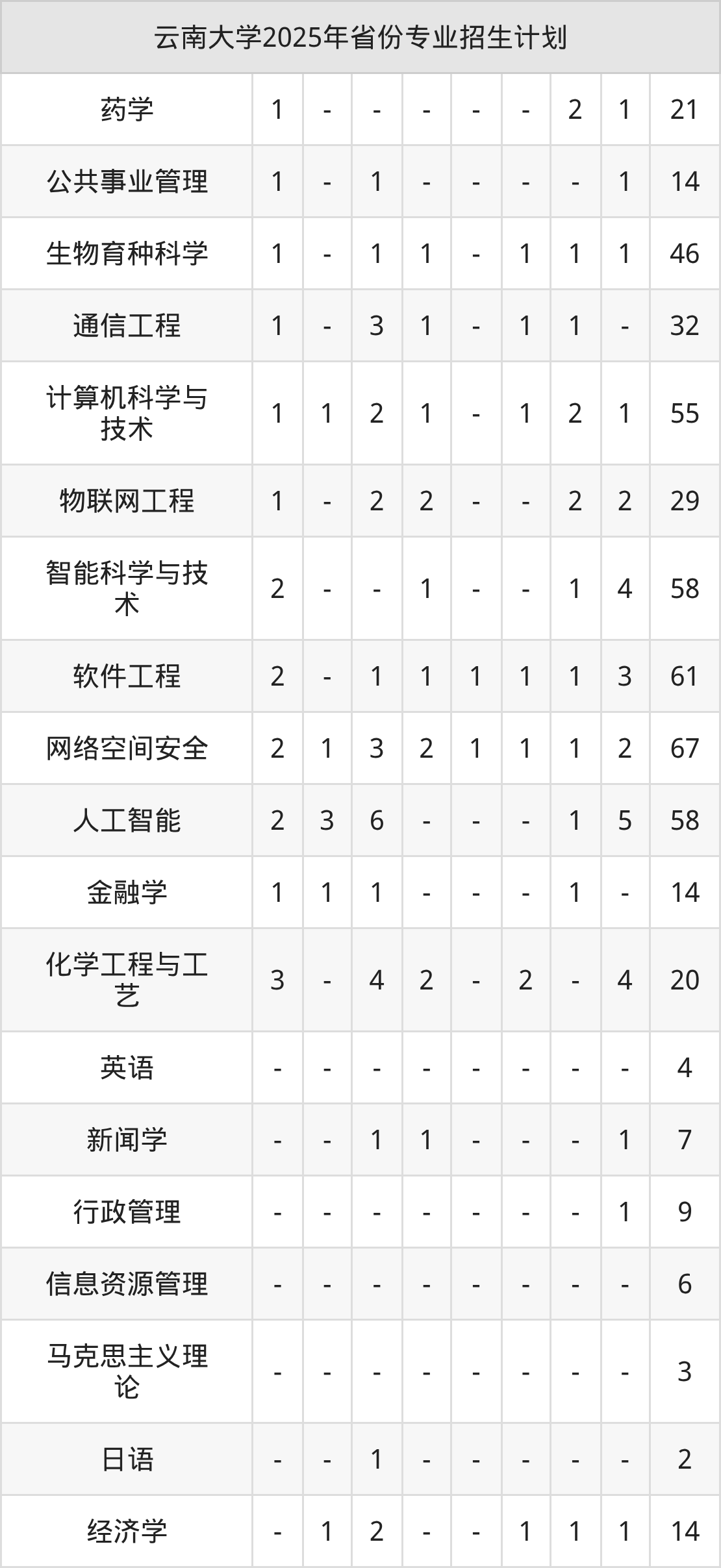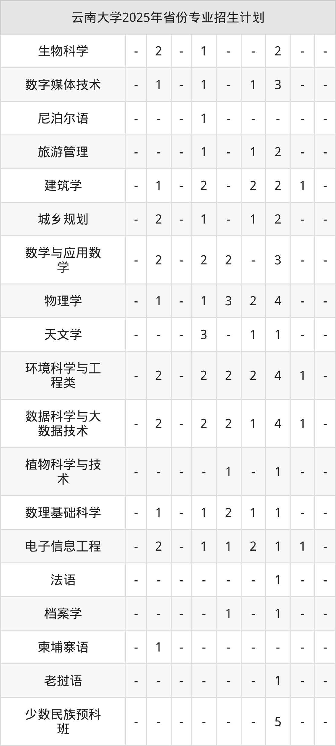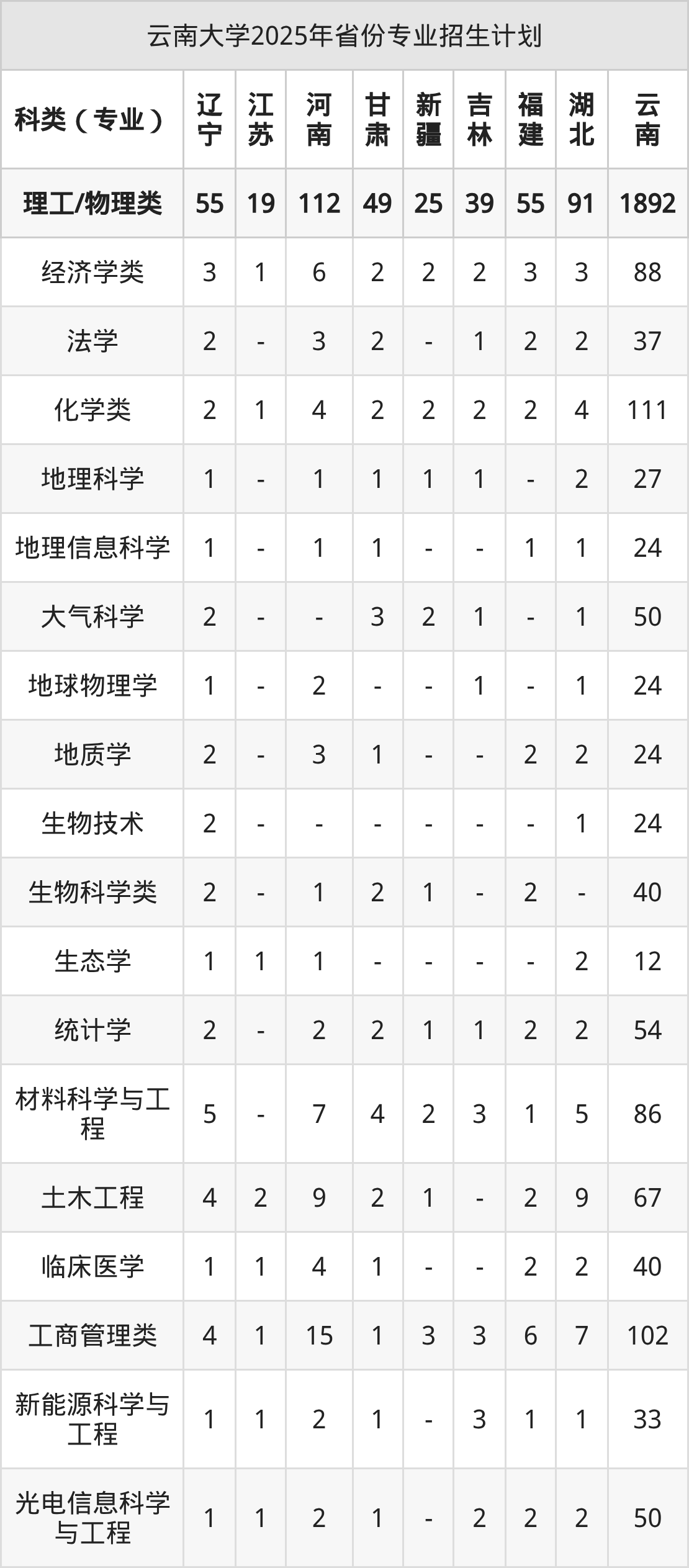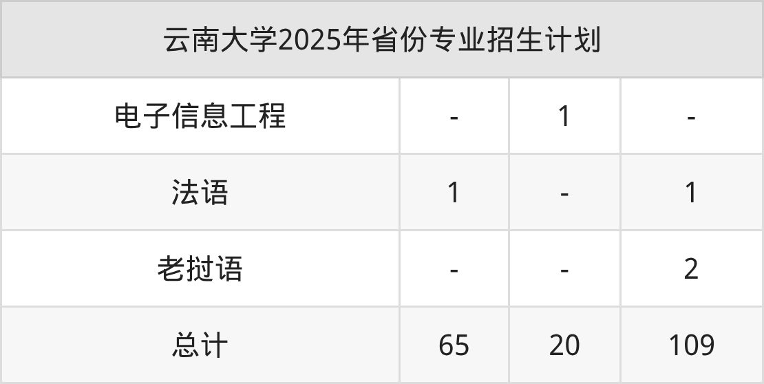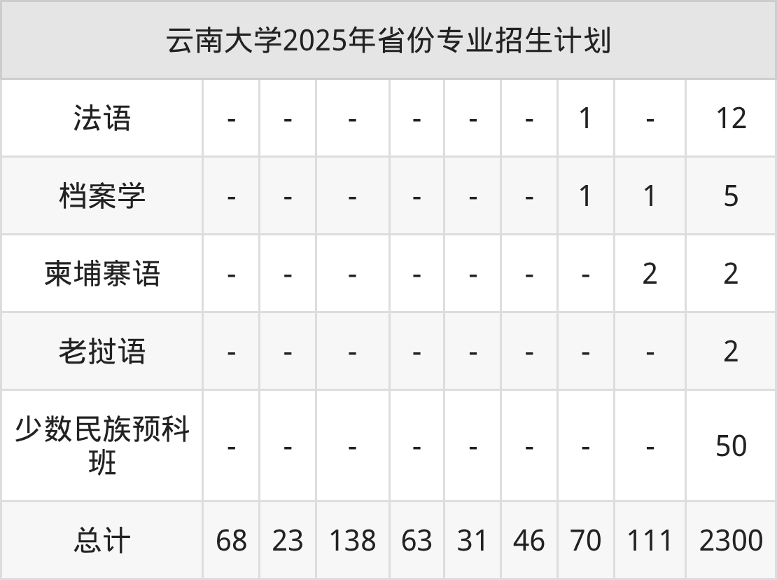 2026年云南大学本科招生计划待公布,下面附上2025年数据,暂供参考: