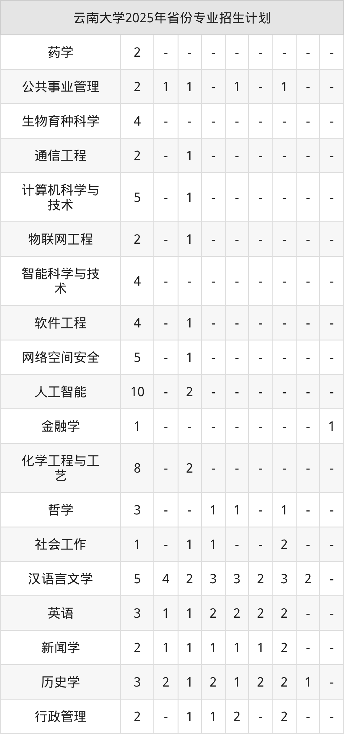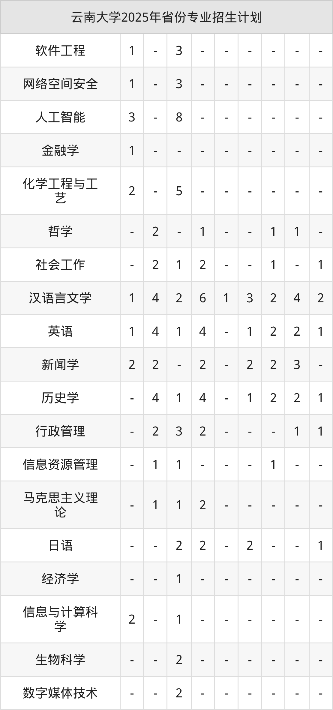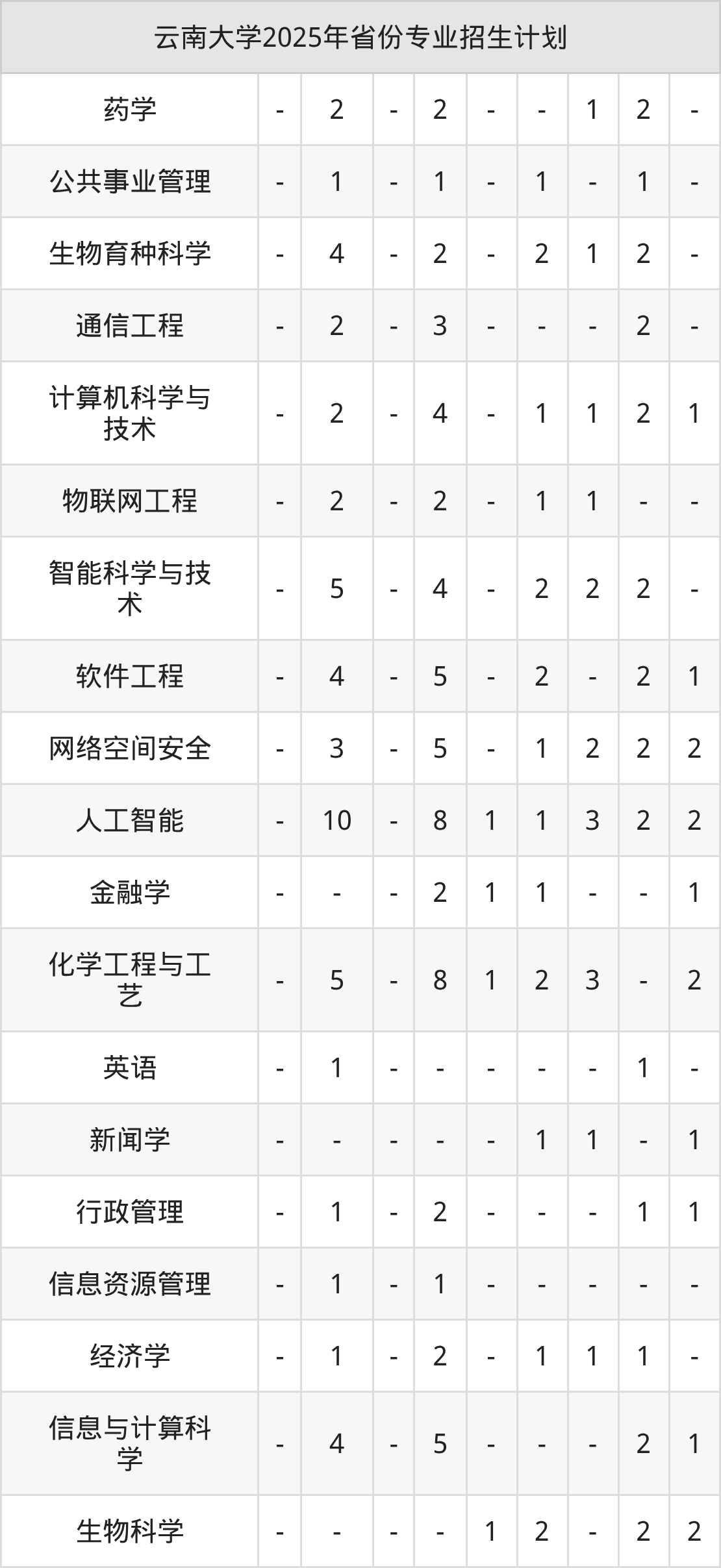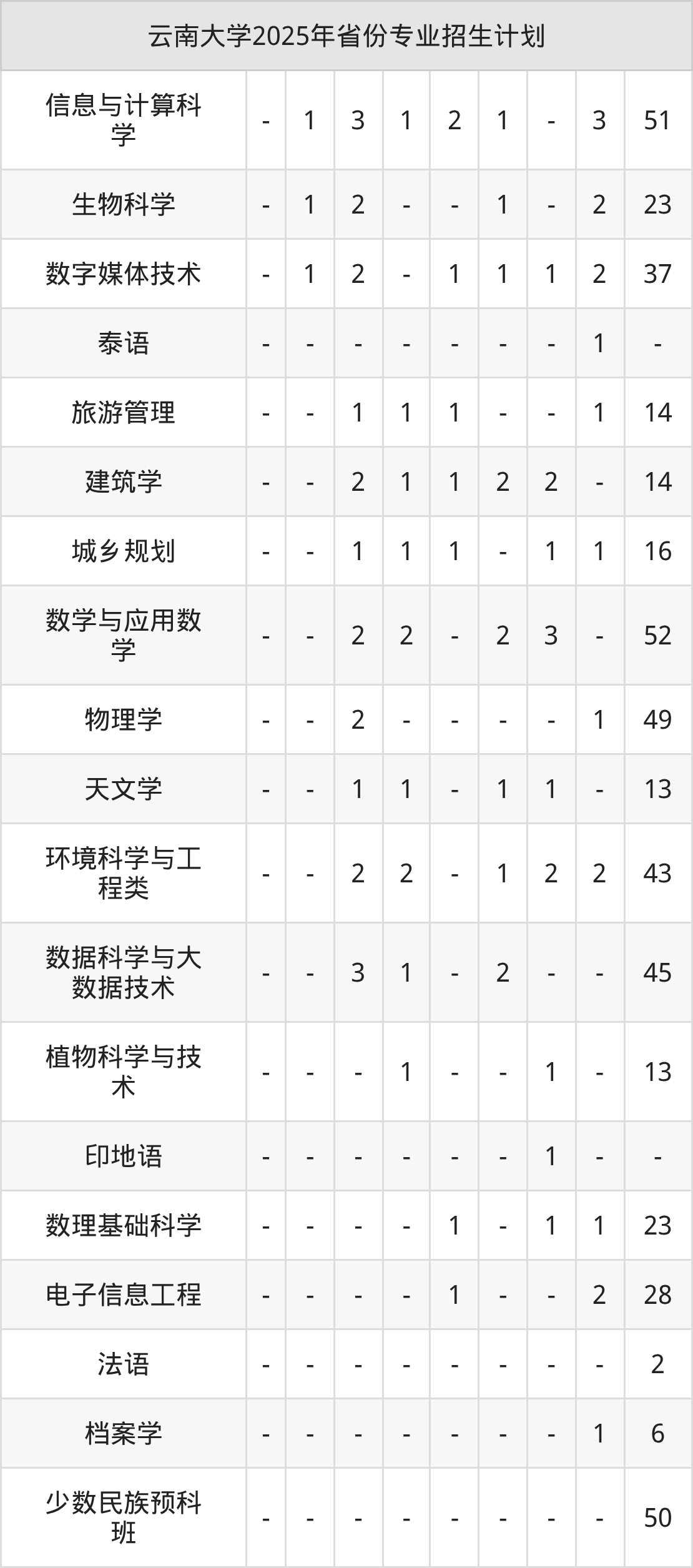 2026年云南大学本科招生计划待公布,下面附上2025年数据,暂供参考: