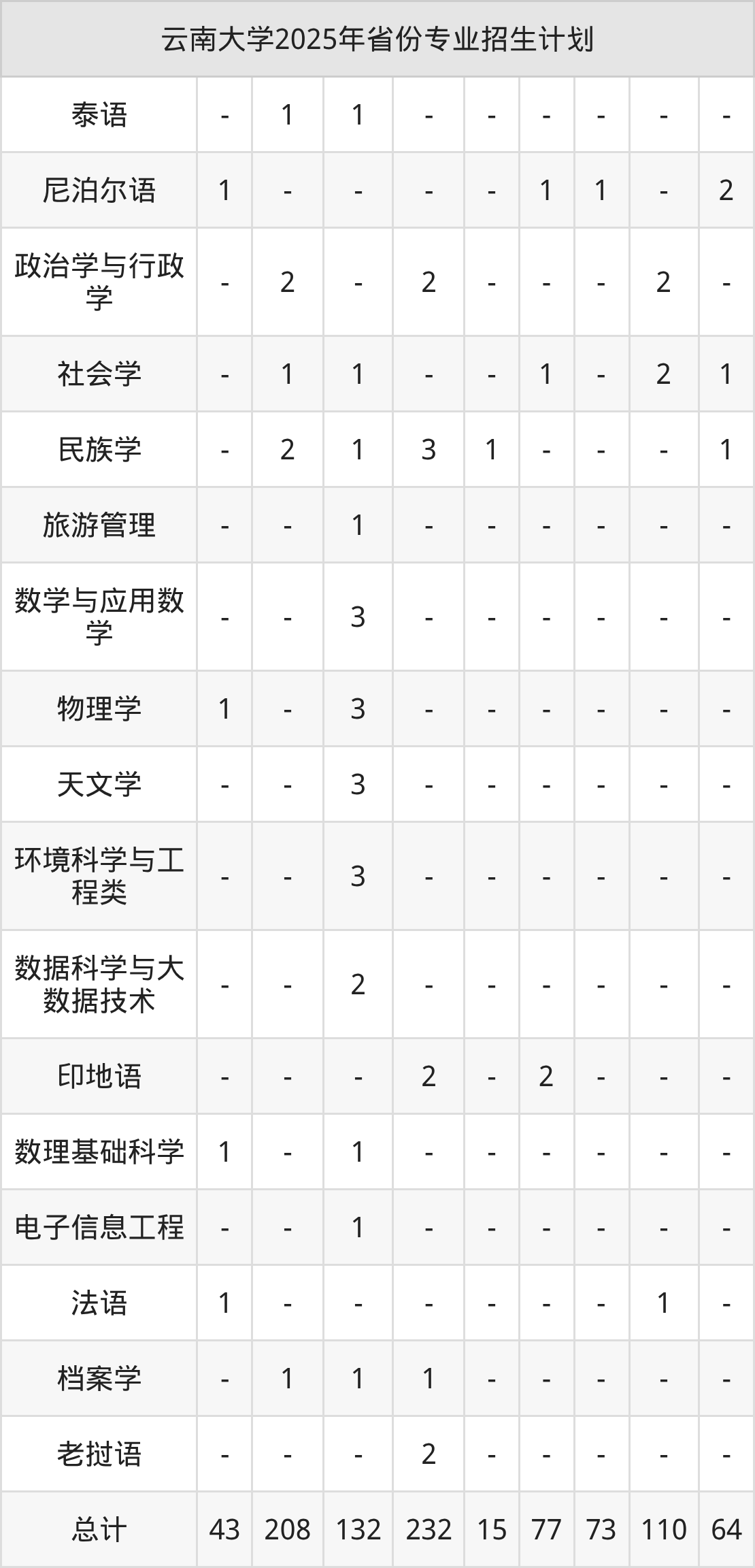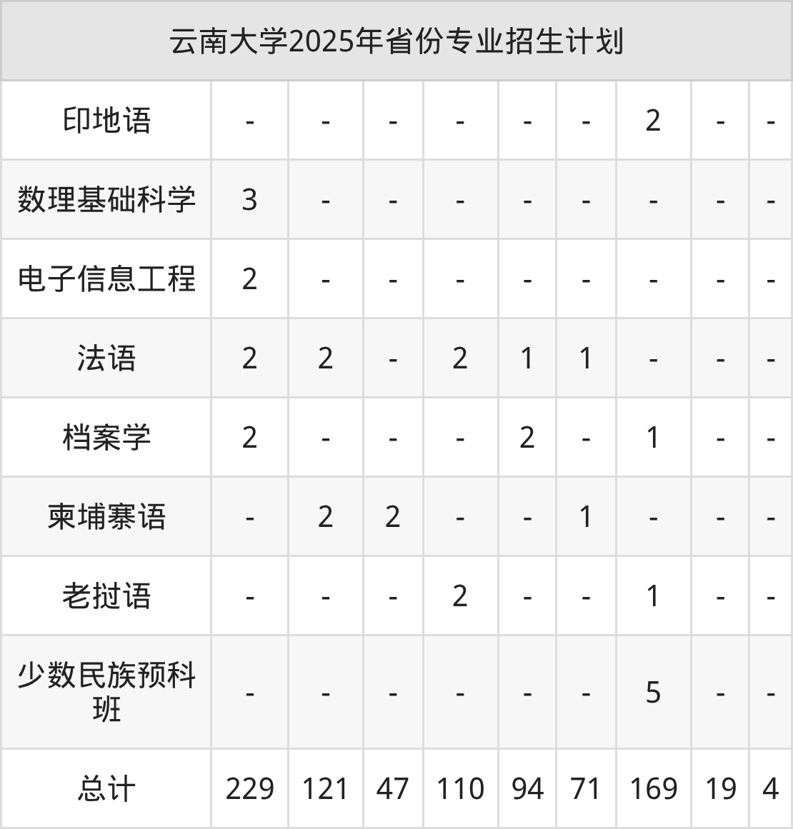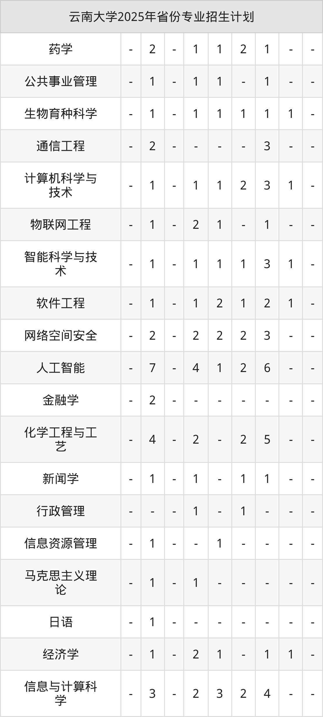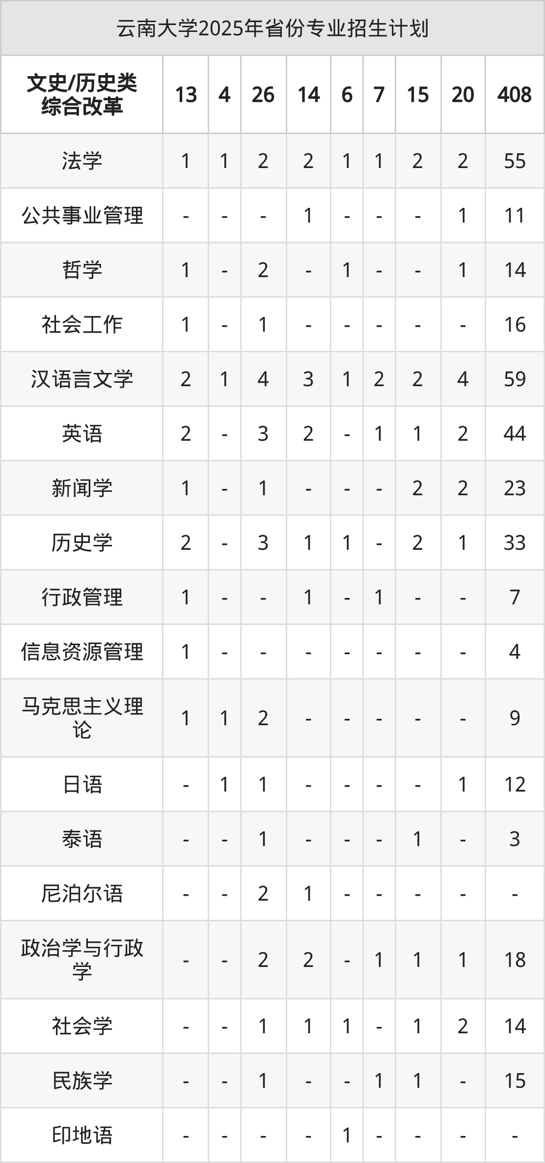 2026年云南大学本科招生计划待公布,下面附上2025年数据,暂供参考: