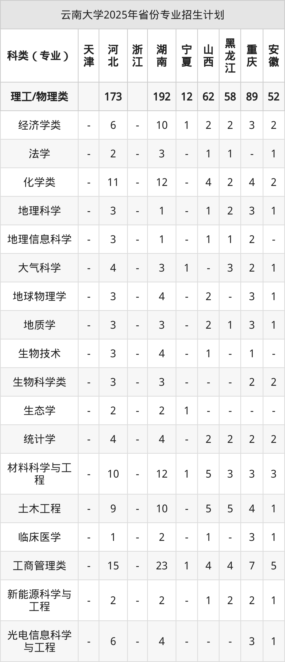 而各省份的招生计划数为江苏23人,云南2300人,浙江132人,重庆110人,河南138人等。