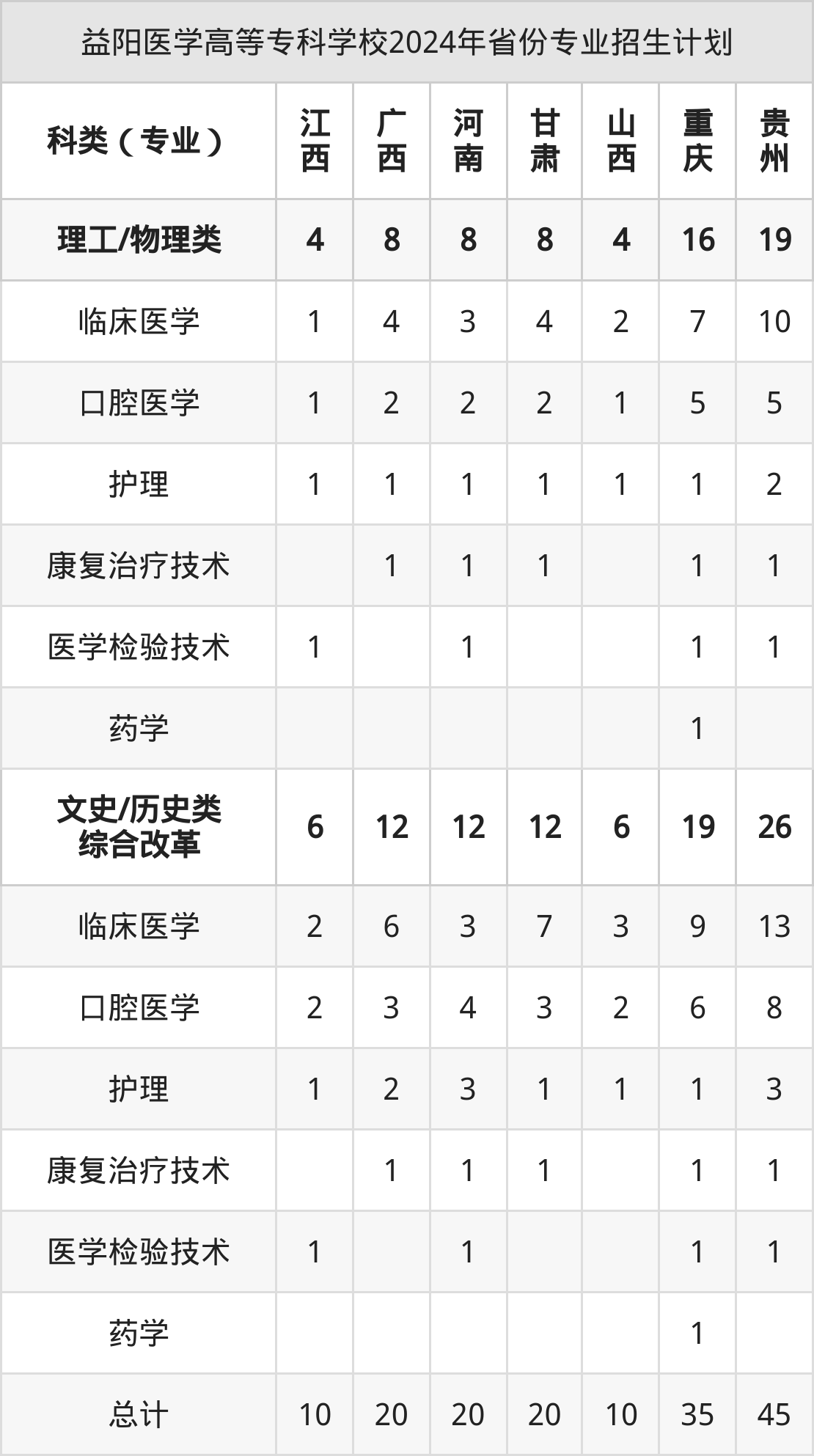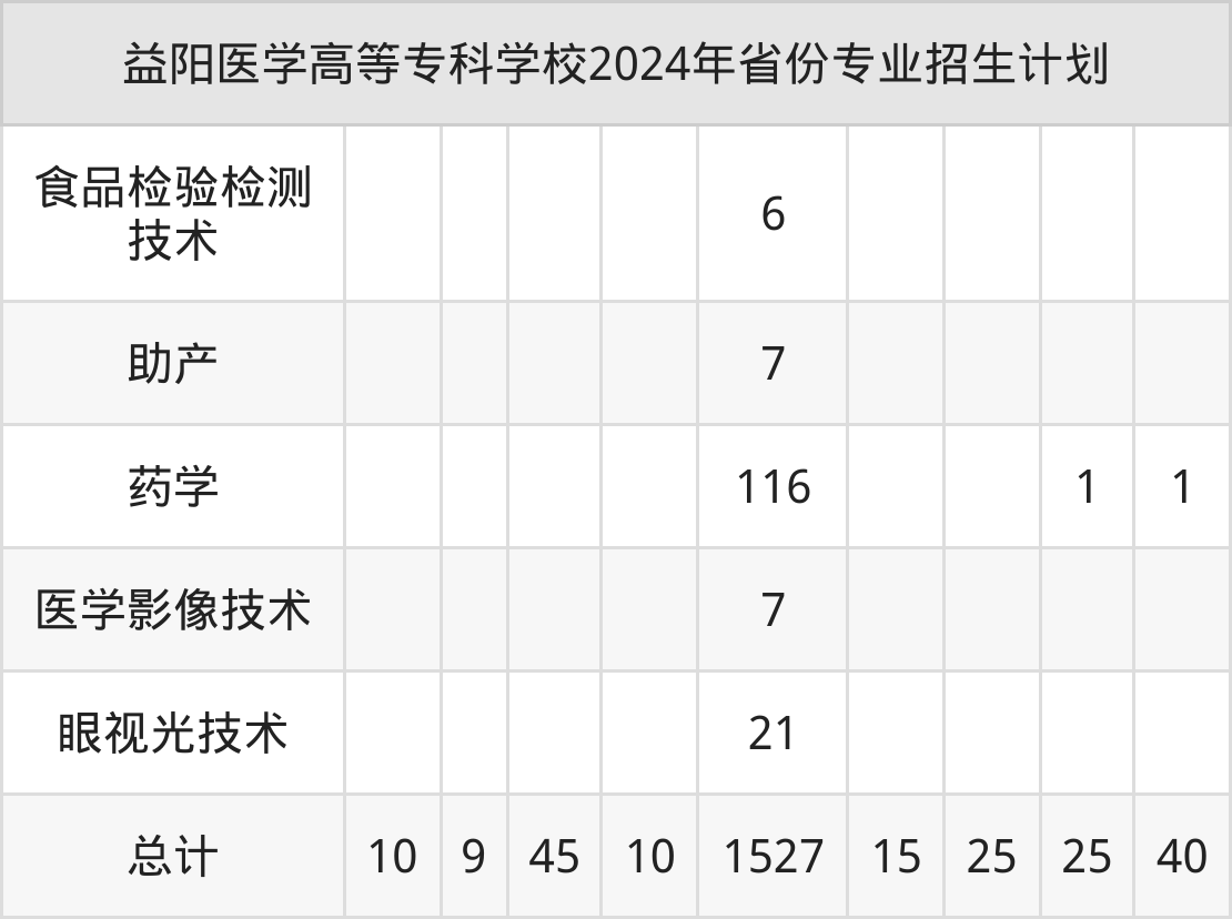 2025年益阳医学高等专科学校专科招生计划待公布,下面附上2024年数据,暂供参考:
