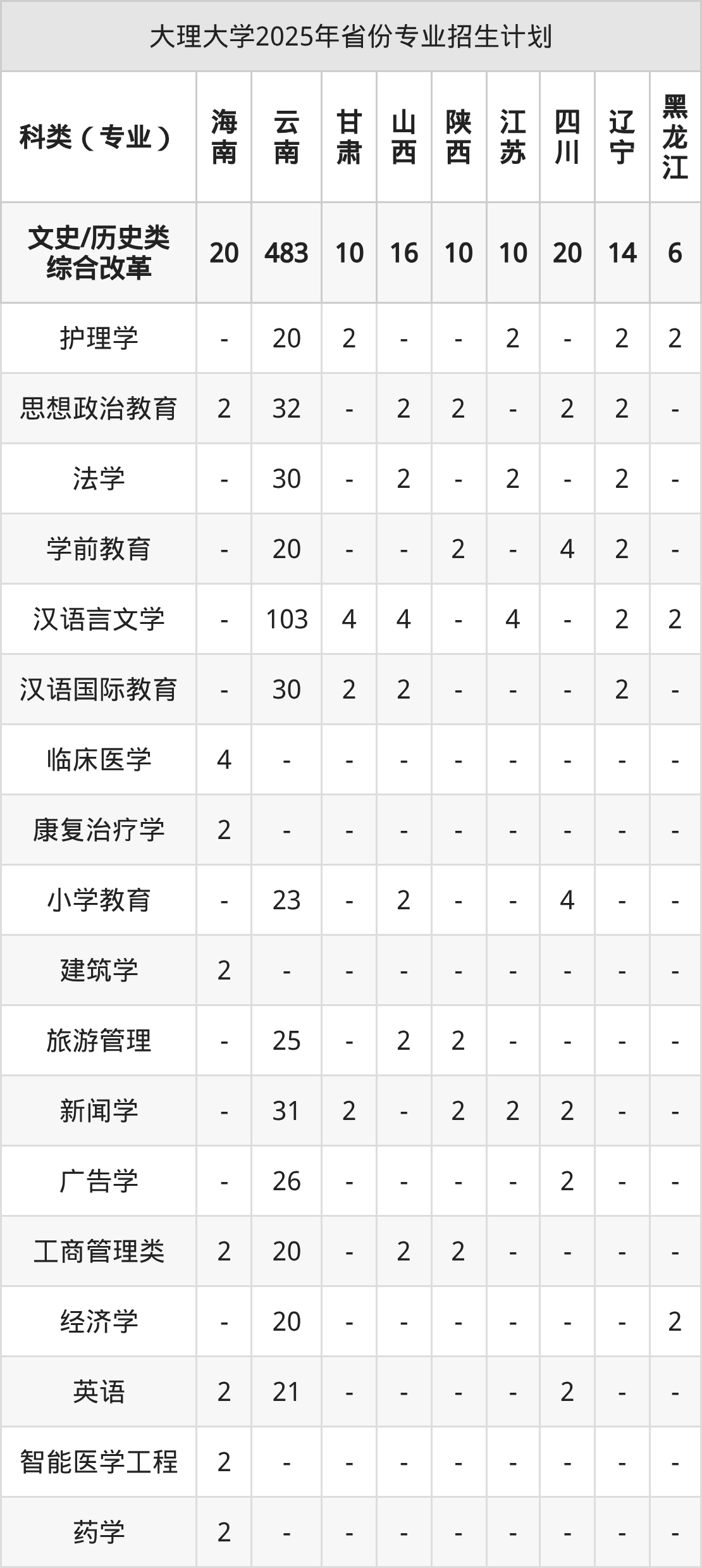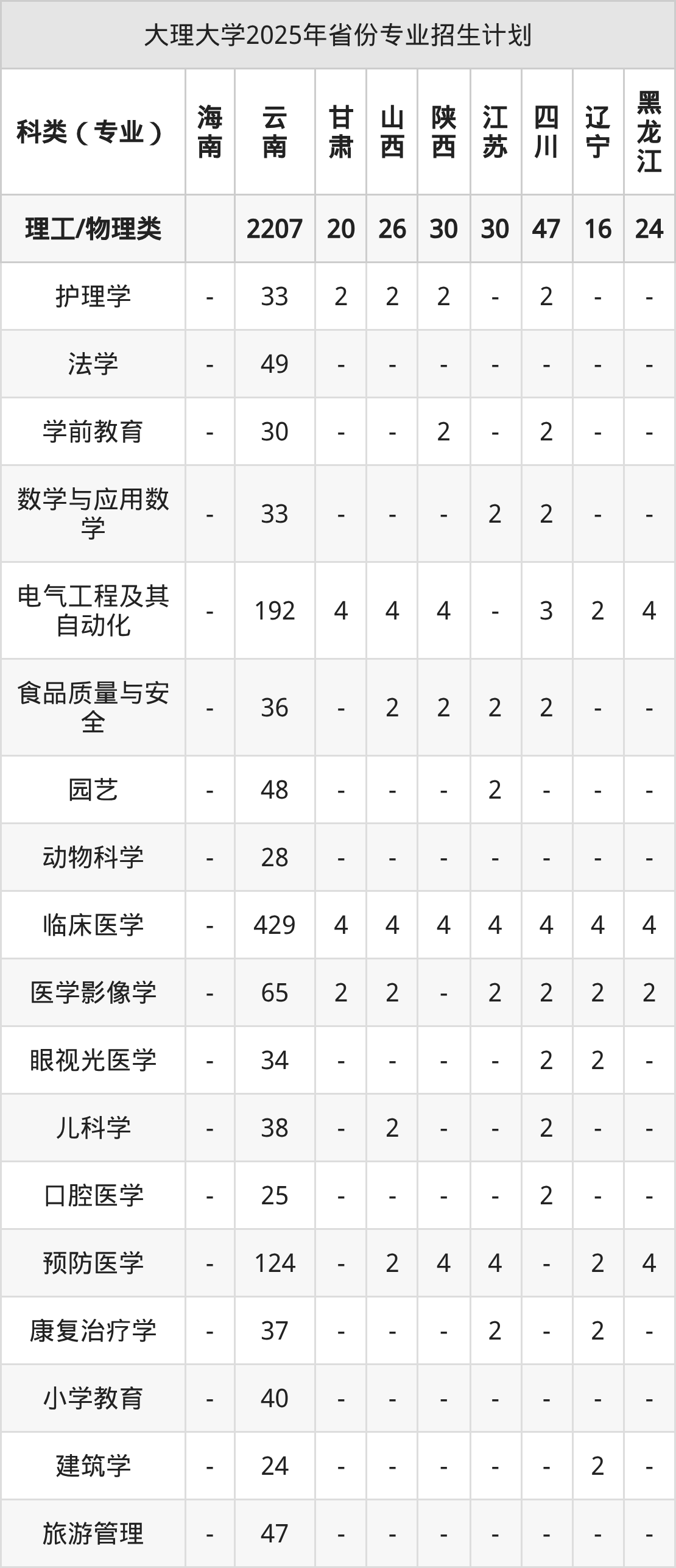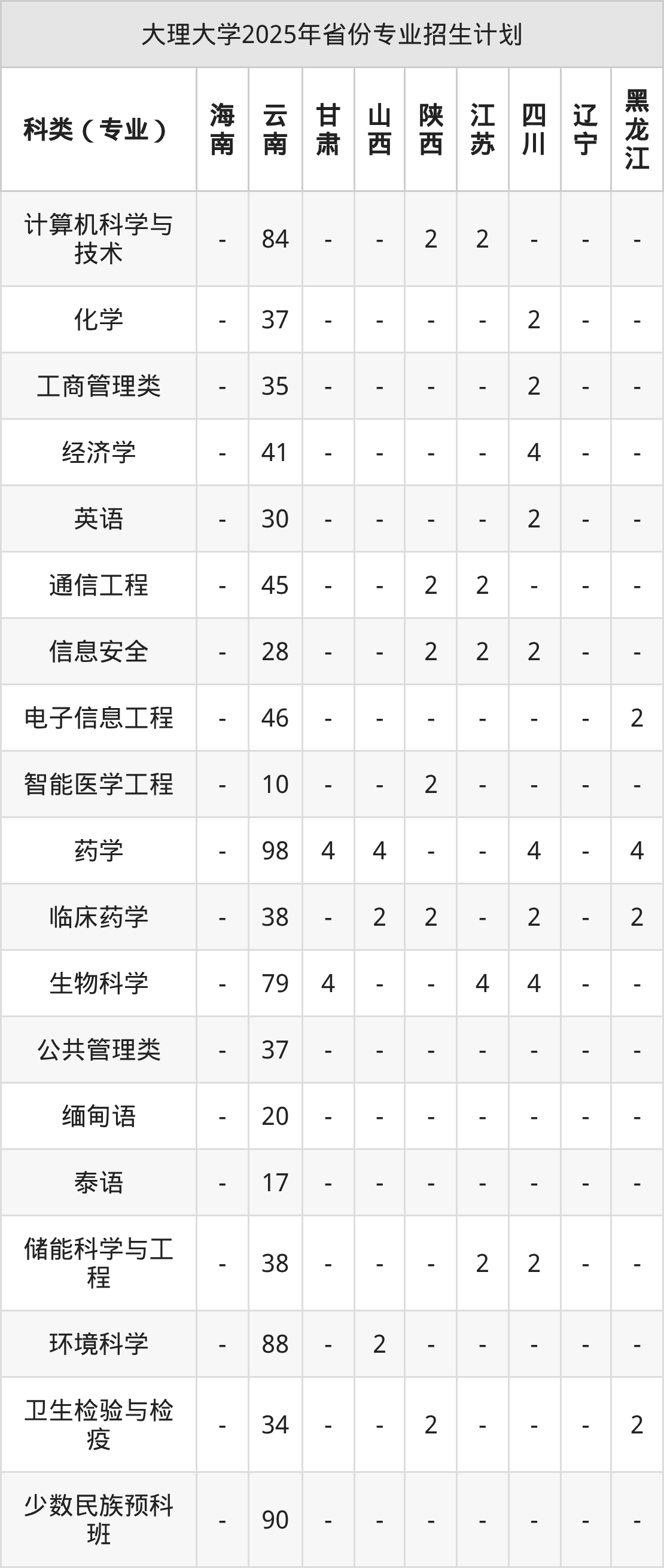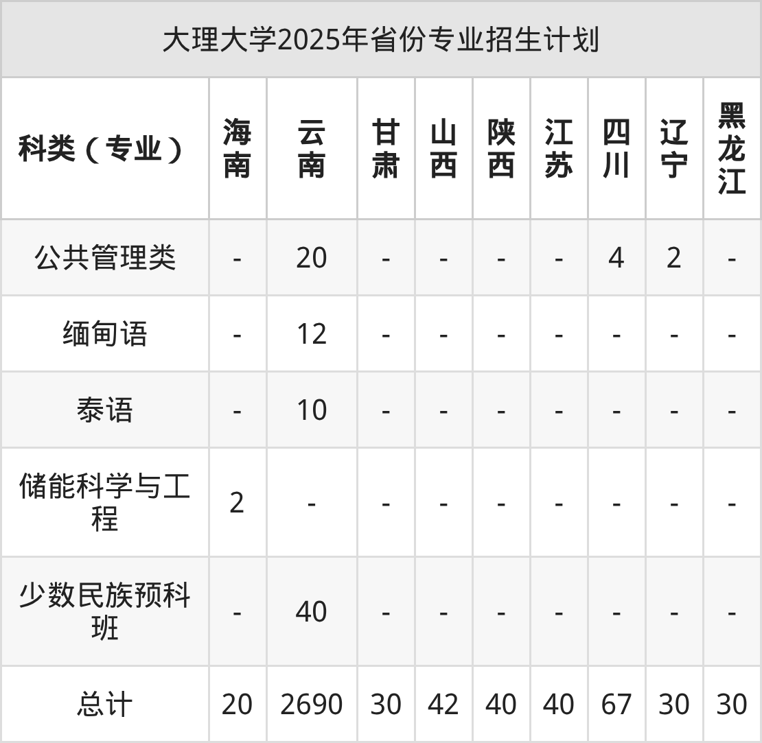 2026年大理大学本科招生计划待公布,下面附上2025年数据,暂供参考:
