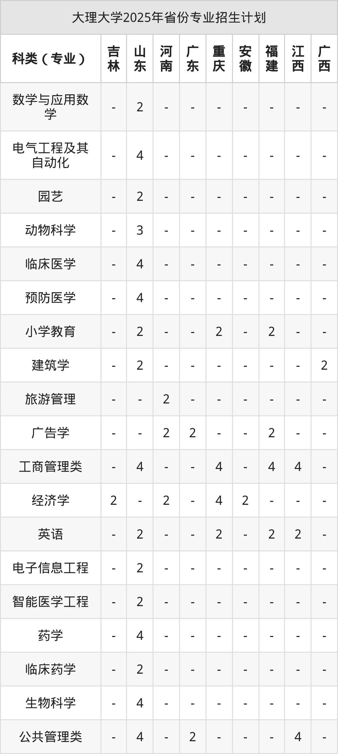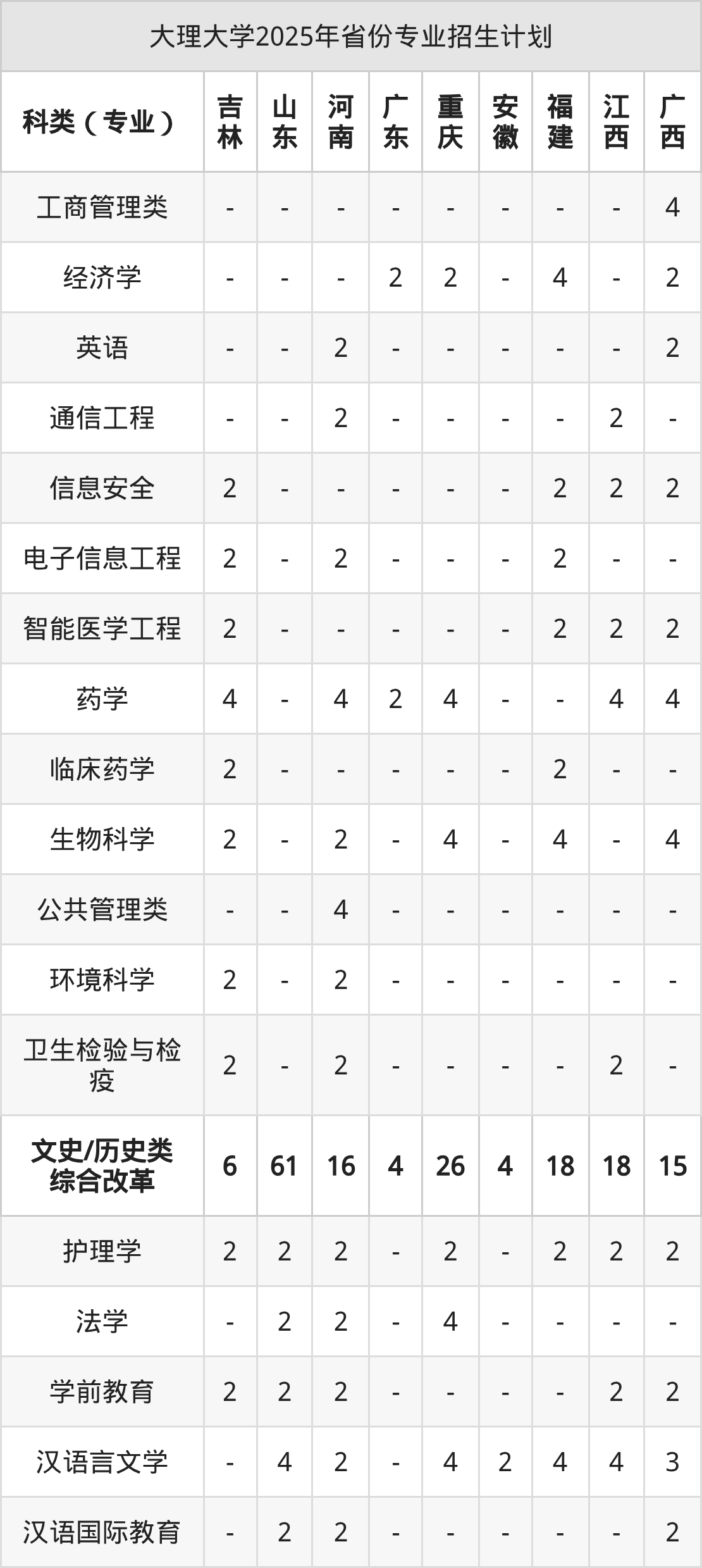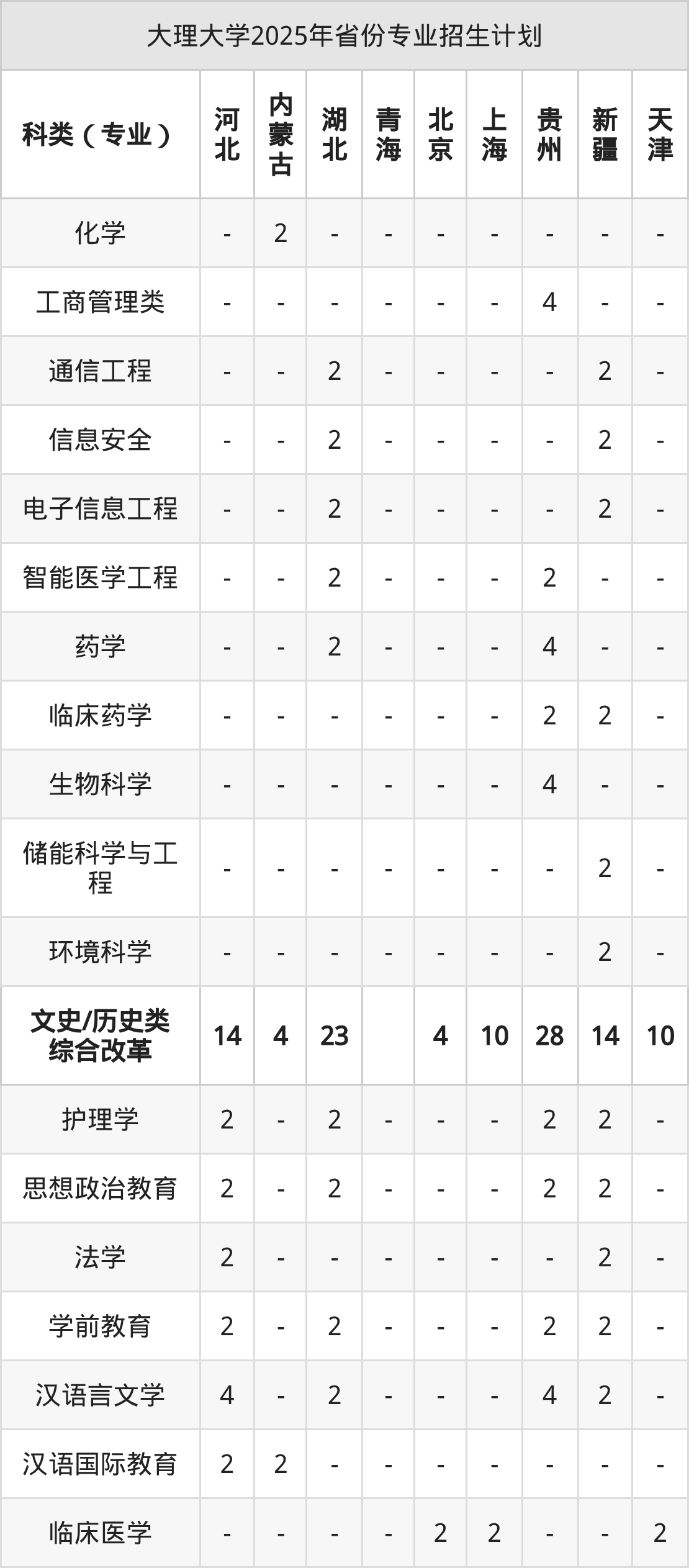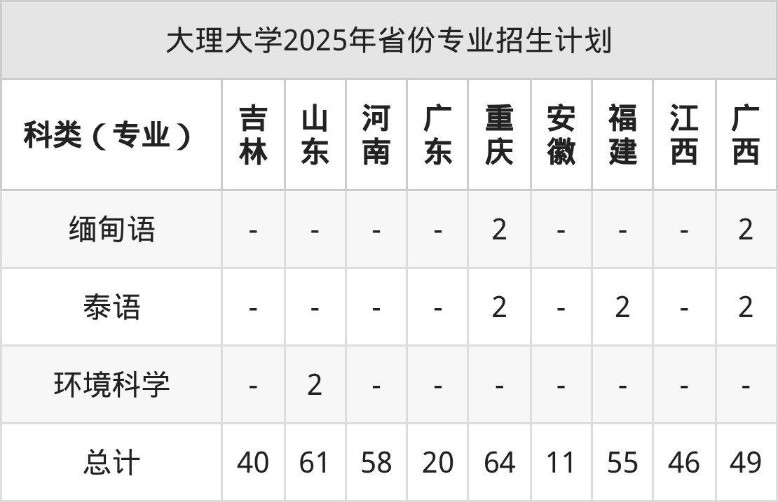 2026年大理大学本科招生计划待公布,下面附上2025年数据,暂供参考: