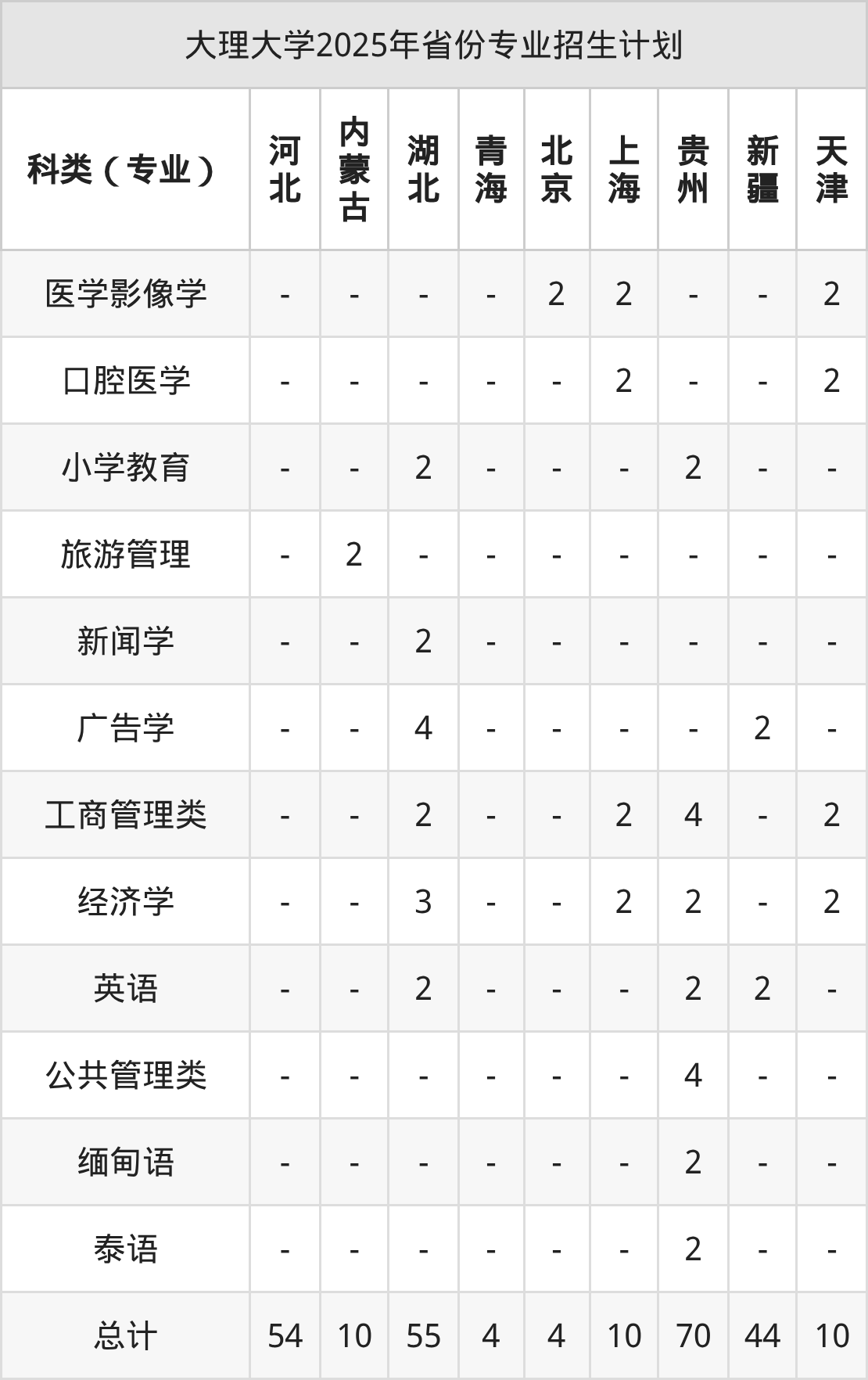 | 大理大学本科招生专业 | |