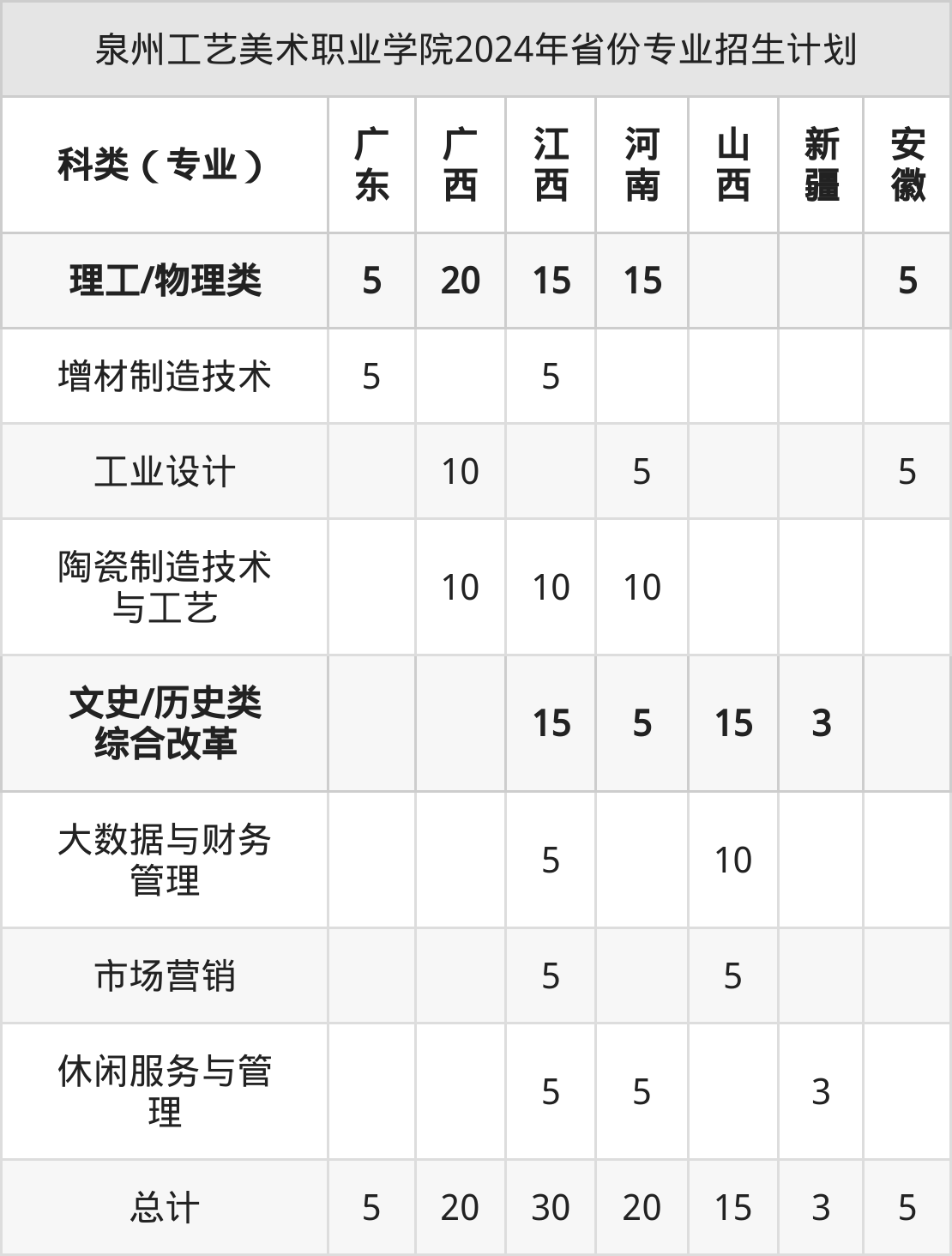 2025年泉州工艺美术职业学院专科招生计划待公布,下面附上2024年数据,暂供参考: