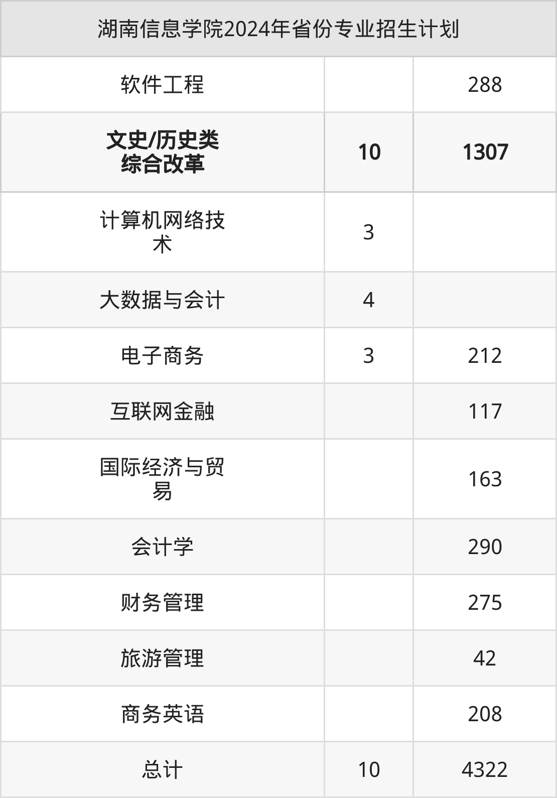 而各省份的招生计划数为浙江10人,湖南4322人。