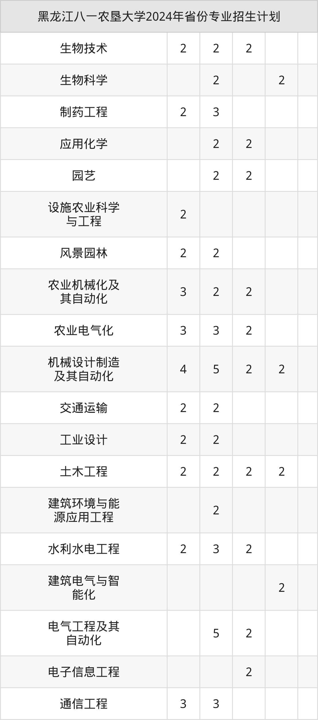 2025年黑龙江八一农垦大学本科招生计划待公布,下面附上2024年数据,暂供参考: