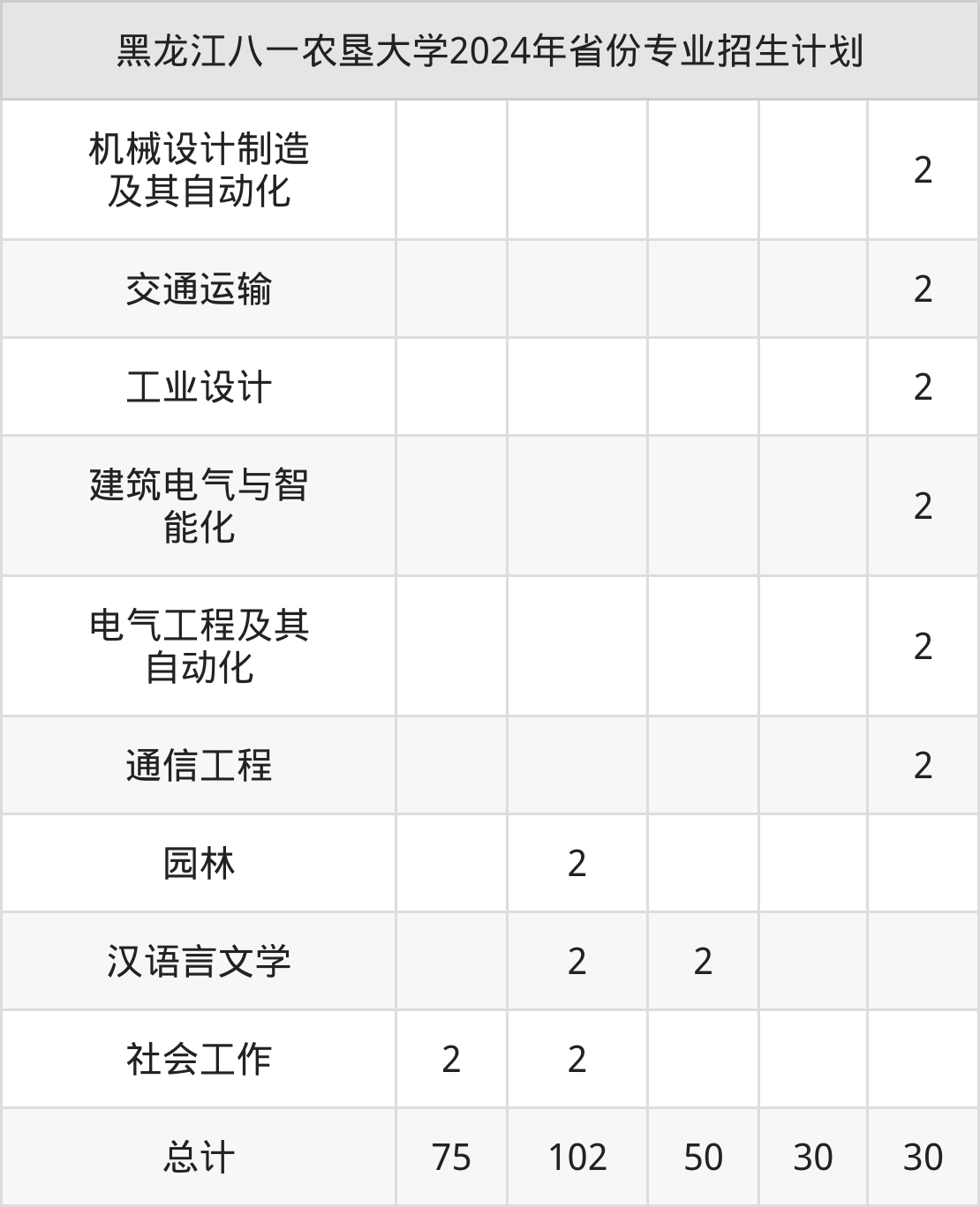 2024年黑龙江八一农垦大学计划招收本科生4111人,其中种子科学与工程专业60人,设施农业科学与工程专业85人,社会工作专业51人,农林经济管理专业46人,公共事业管理专业66人等。