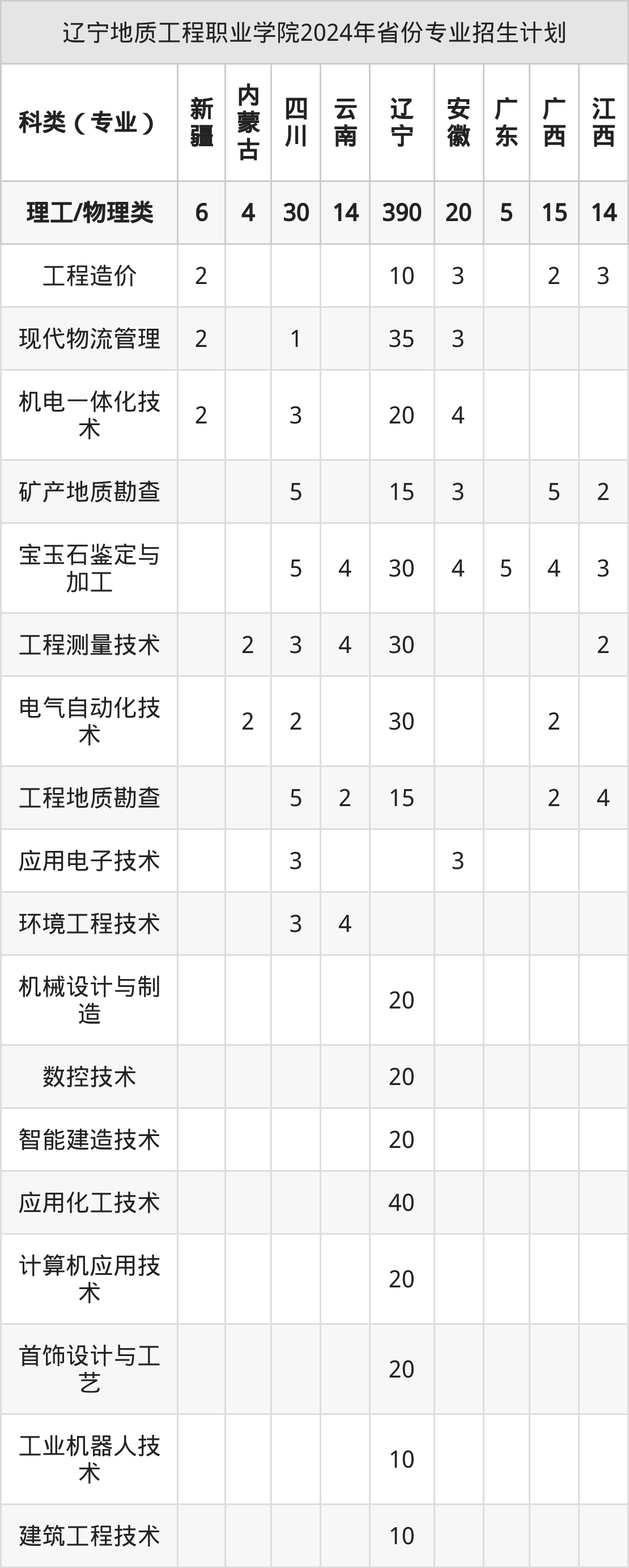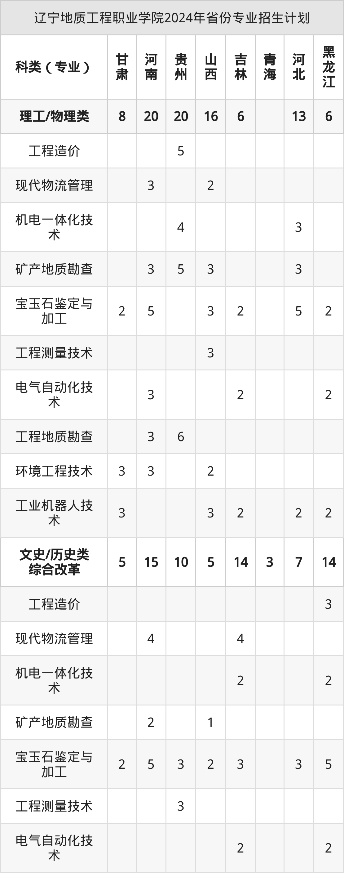 2025年辽宁地质工程职业学院专科招生计划待公布,下面附上2024年数据,暂供参考: