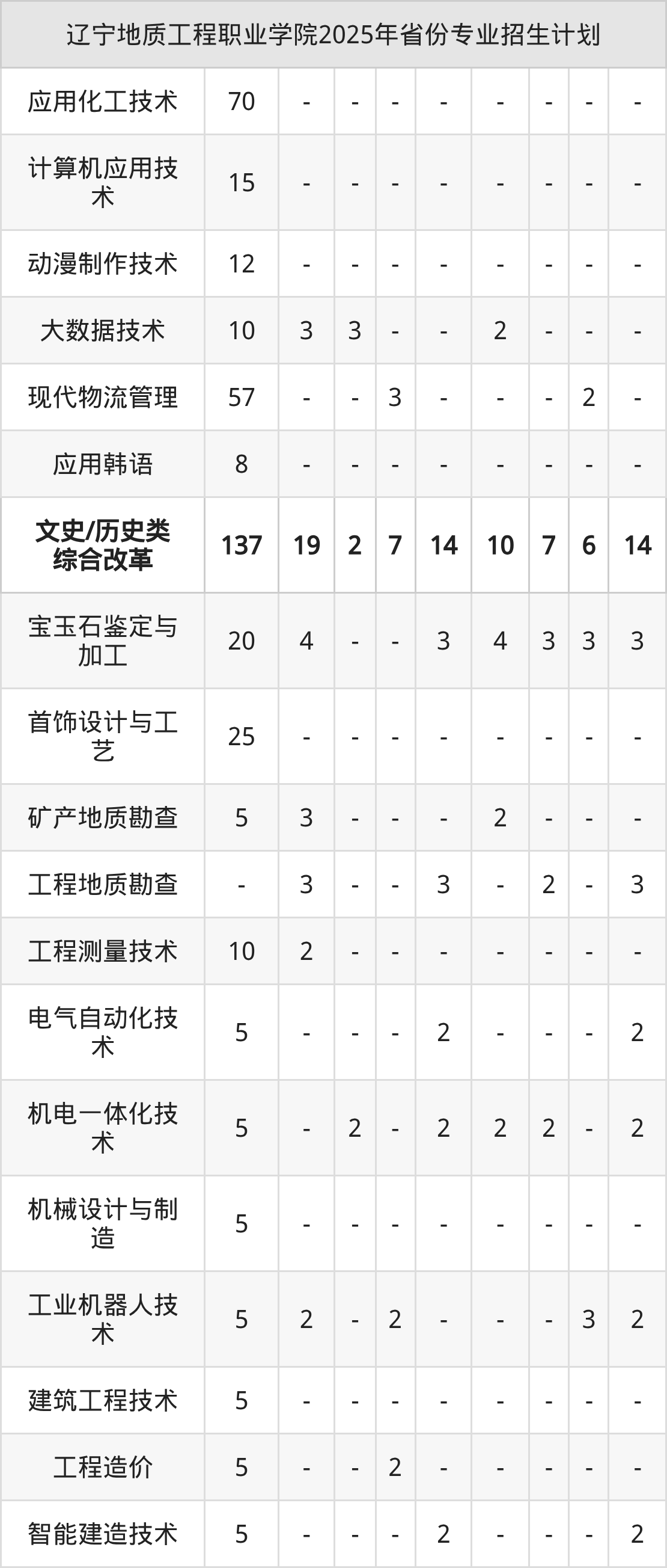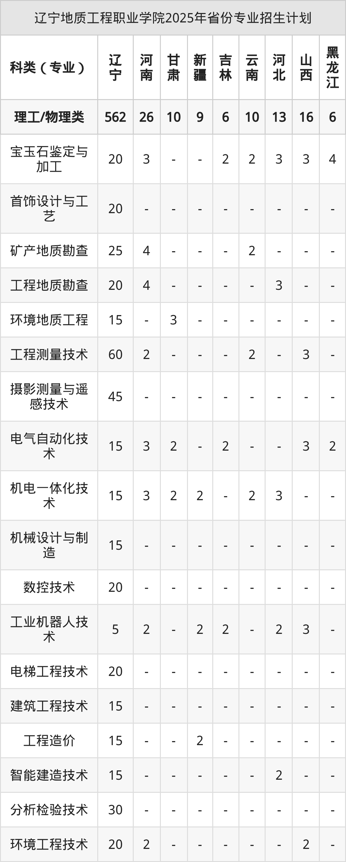 2026年辽宁地质工程职业学院专科招生计划待公布,下面附上2025年数据,暂供参考: