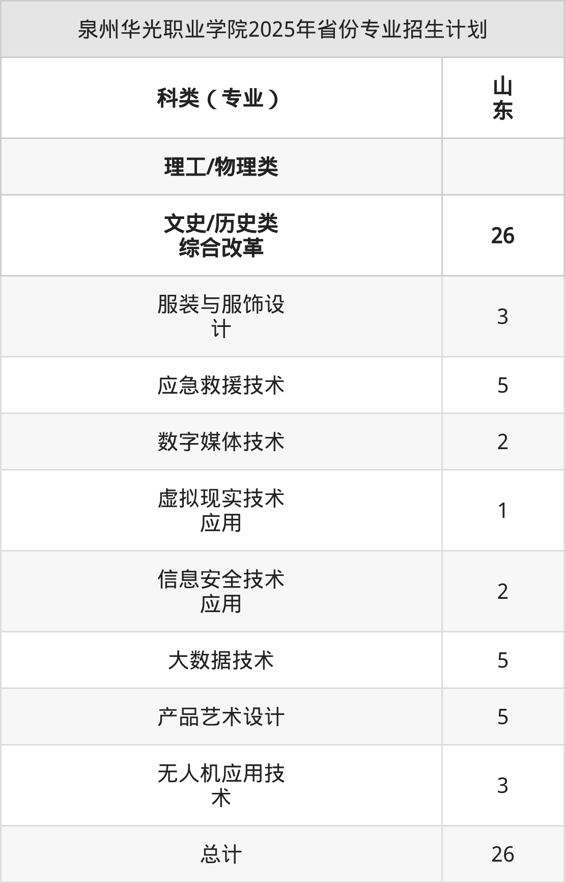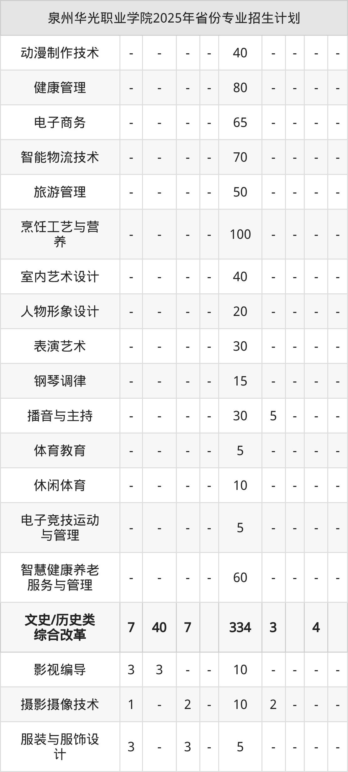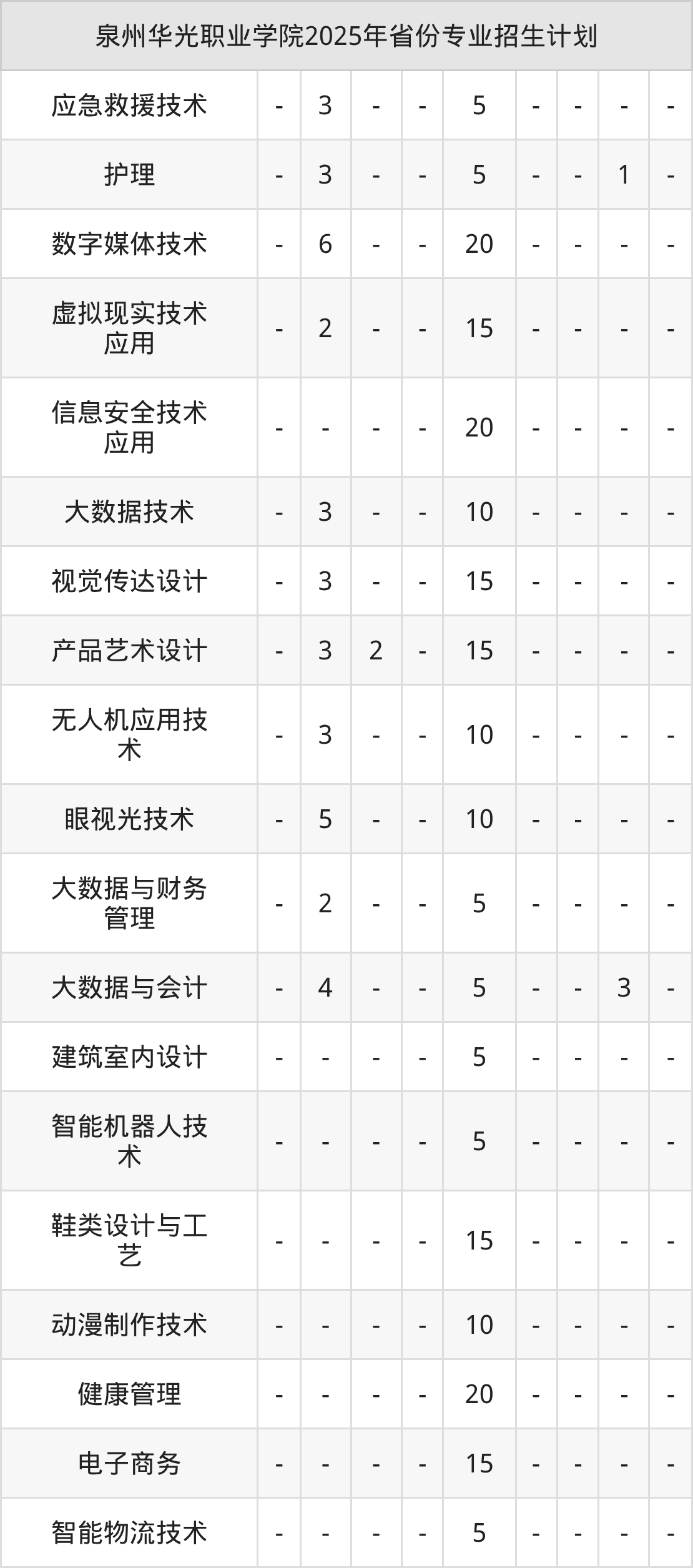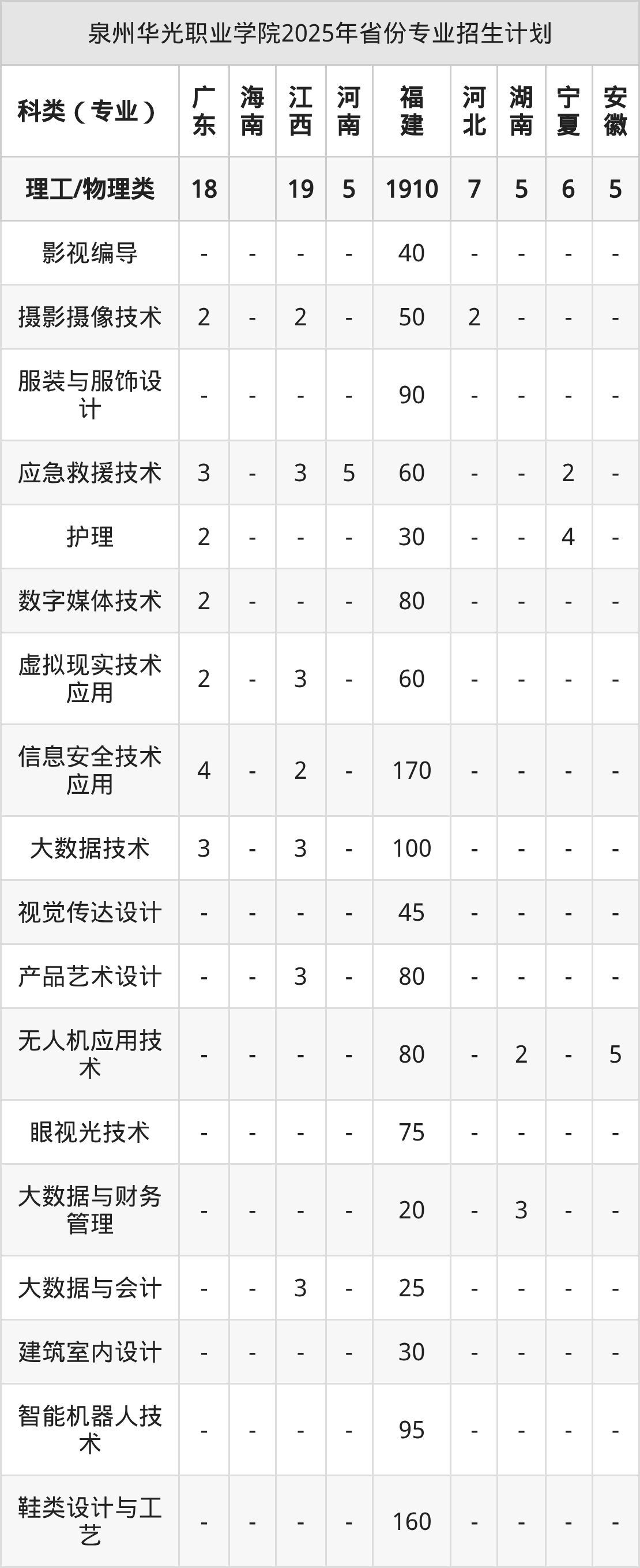 2026年泉州华光职业学院专科招生计划待公布,下面附上2025年数据,暂供参考: