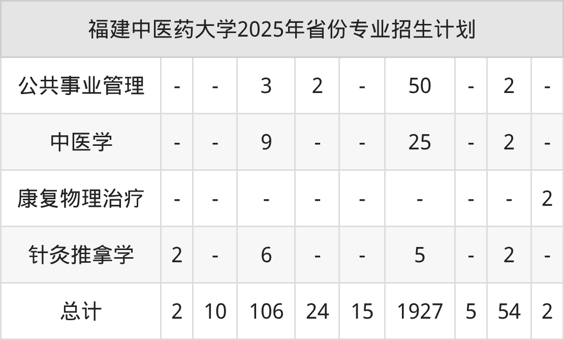2026年福建中医药大学本科招生计划待公布,下面附上2025年数据,暂供参考: