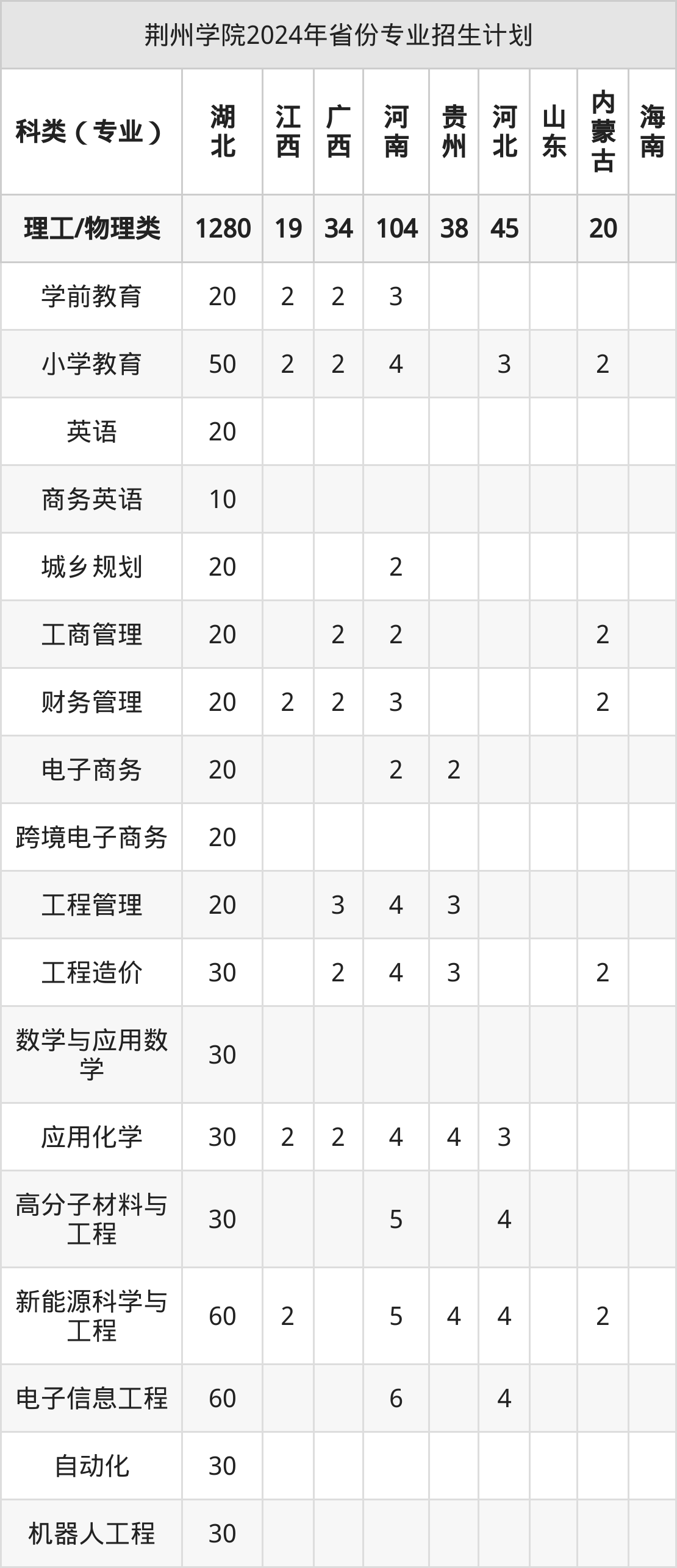 2025年荆州学院本科招生计划待公布,下面附上2024年数据,暂供参考: