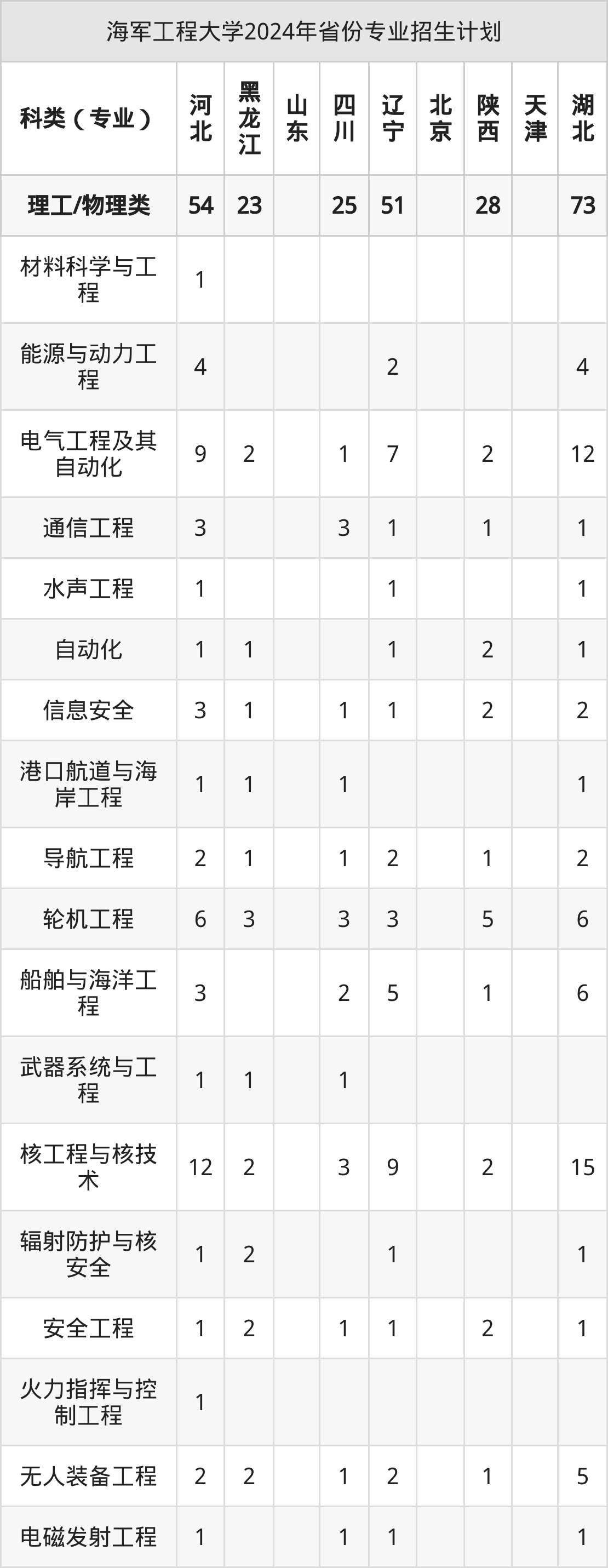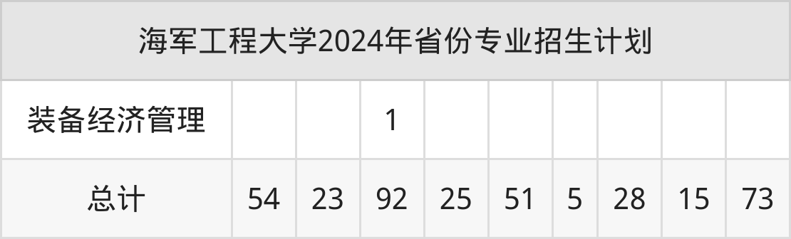 2025年海军工程大学本科招生计划待公布,下面附上2024年数据,暂供参考: