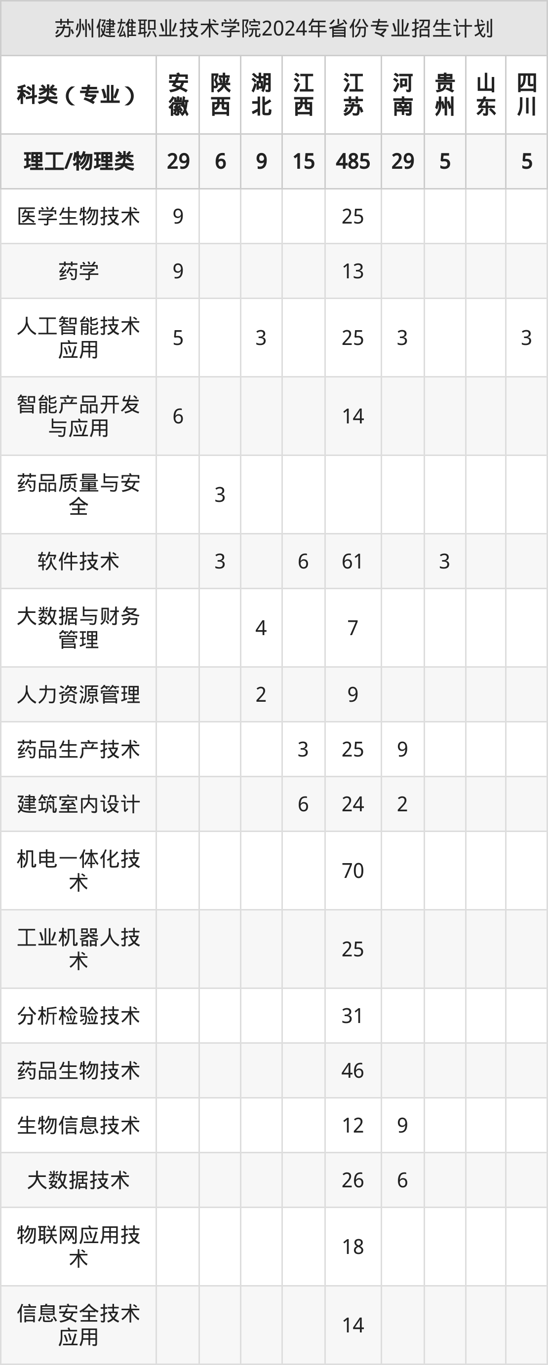 2025年苏州健雄职业技术学院专科招生计划待公布,下面附上2024年数据,暂供参考: