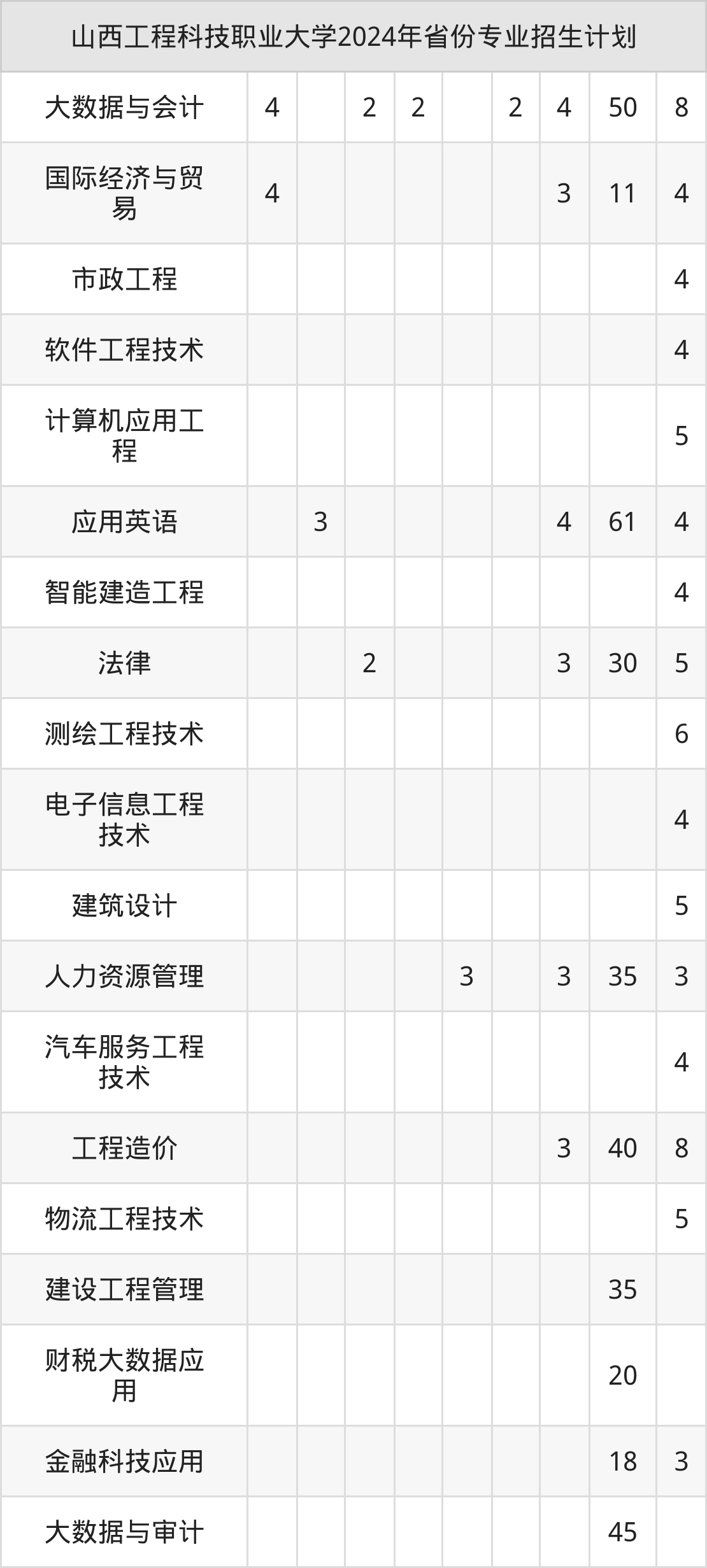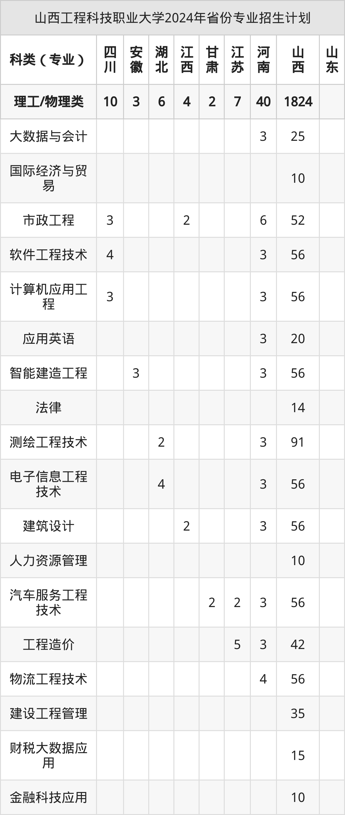 2025年山西工程科技职业大学本科招生计划待公布,下面附上2024年数据,暂供参考: