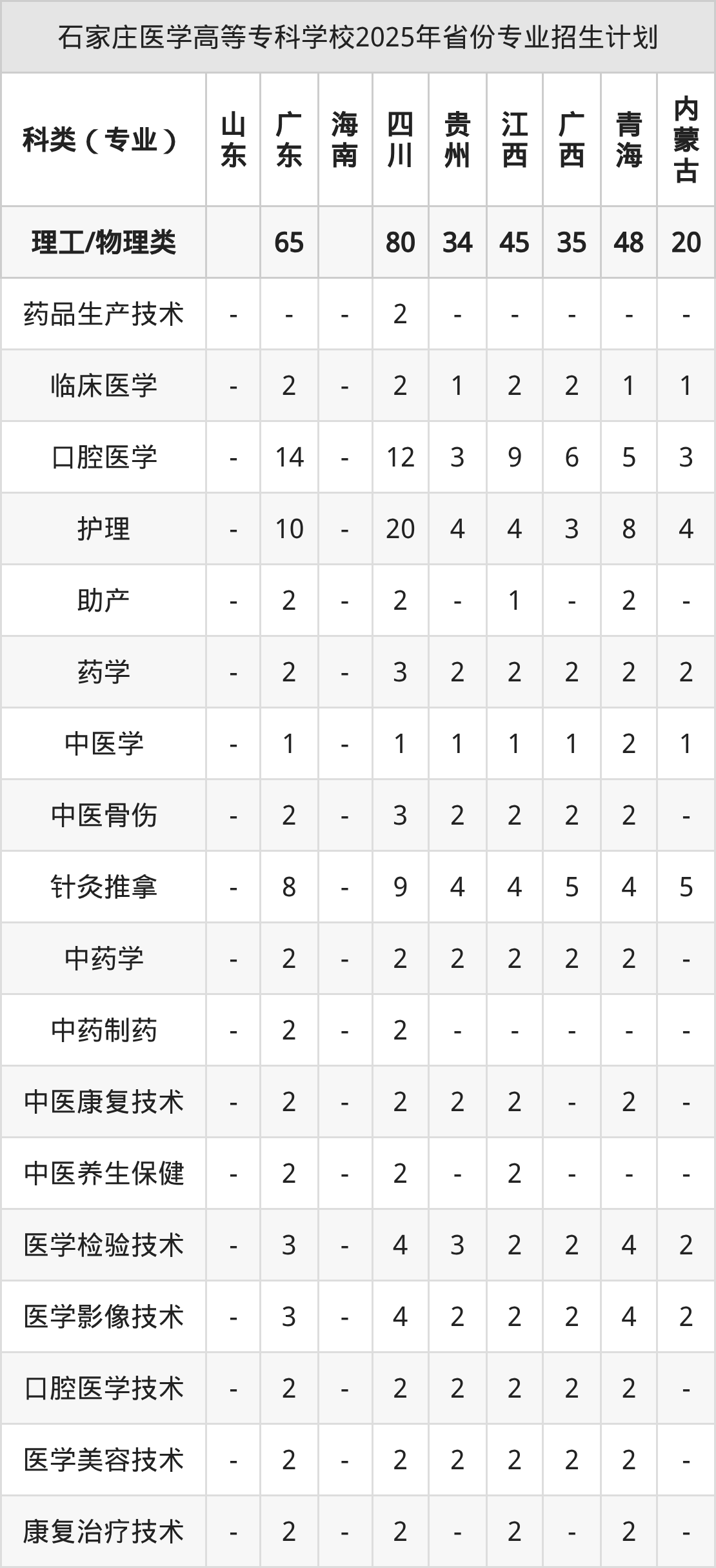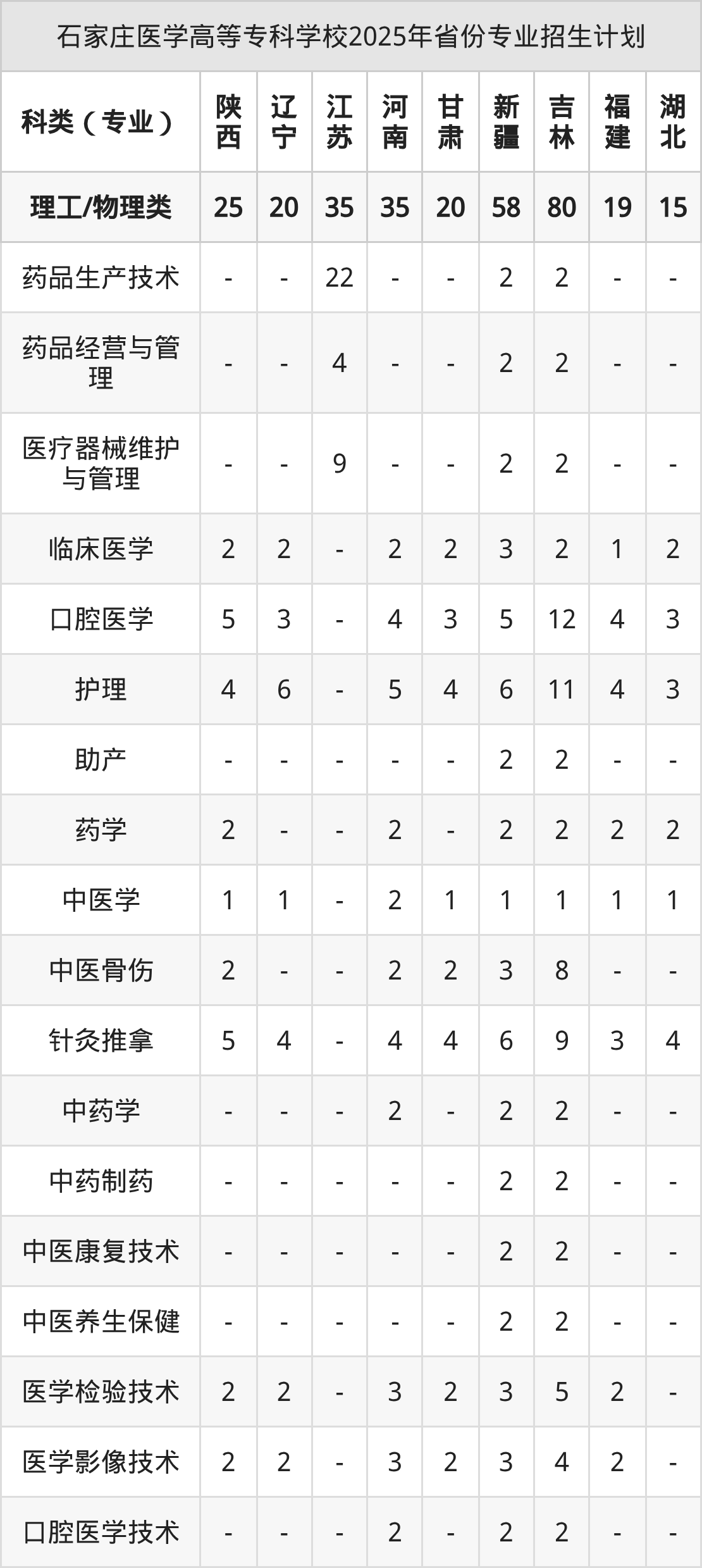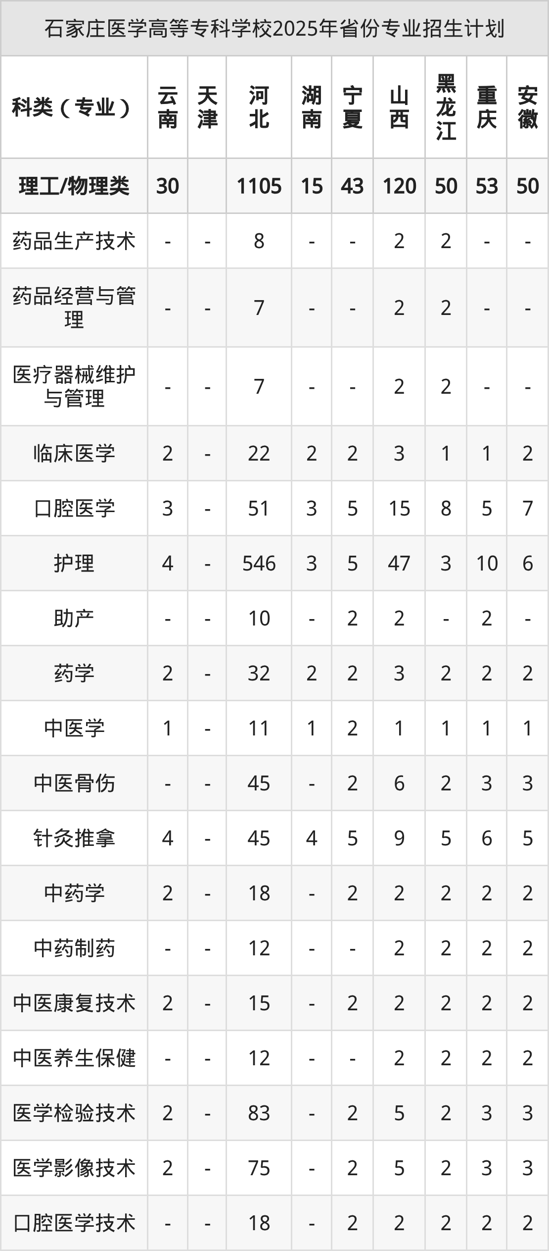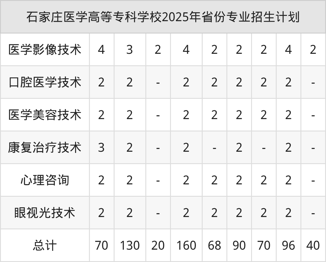 2026年石家庄医学高等专科学校专科招生计划待公布,下面附上2025年数据,暂供参考: