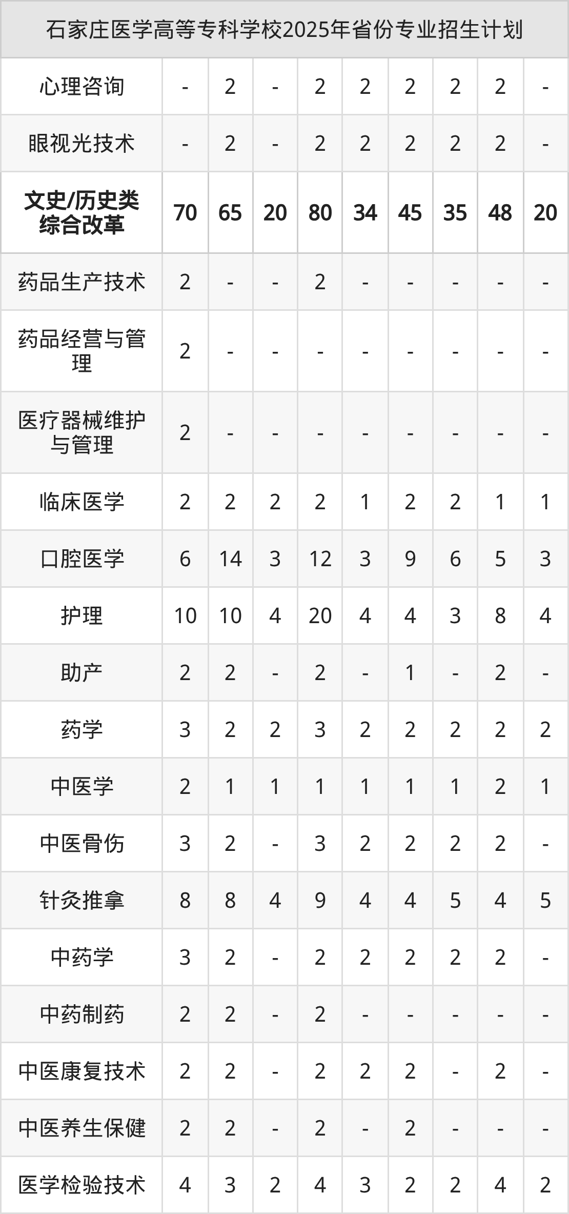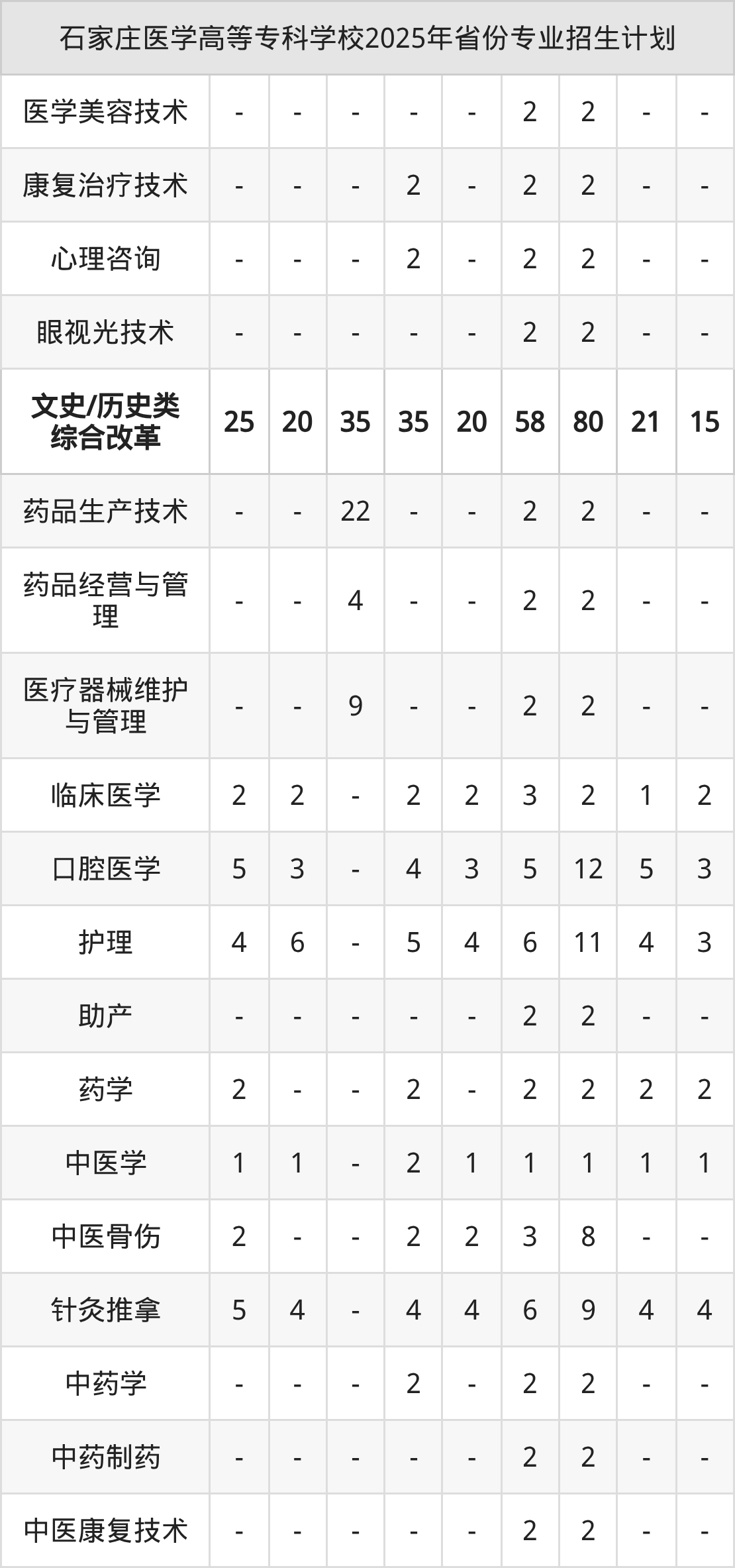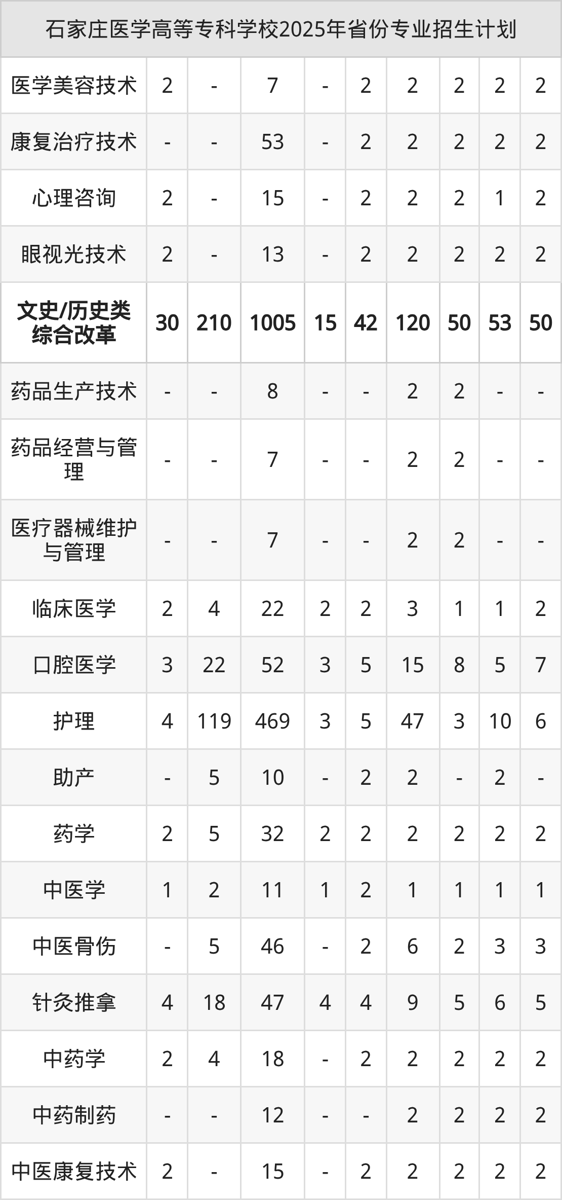 2026年石家庄医学高等专科学校专科招生计划待公布,下面附上2025年数据,暂供参考: