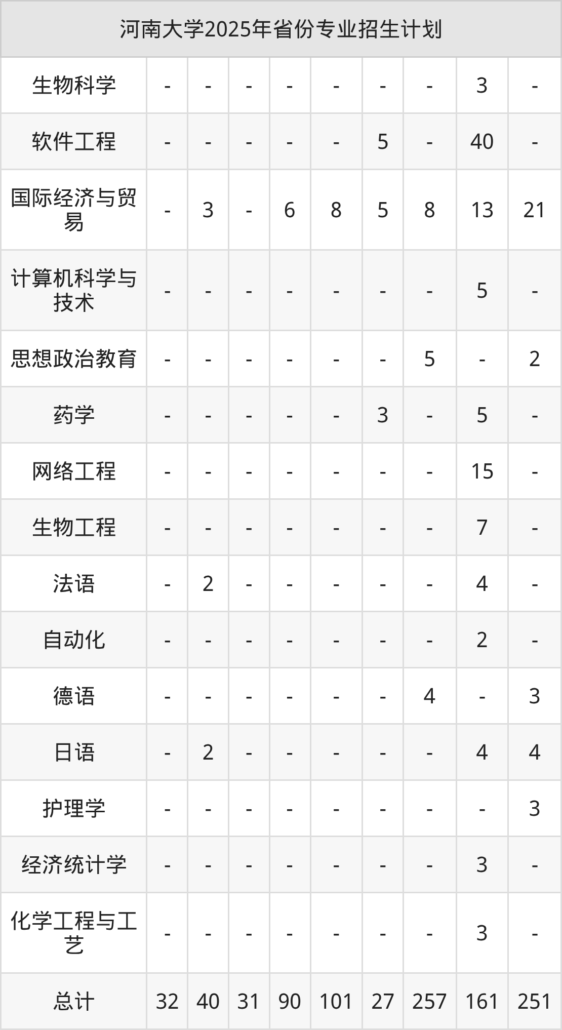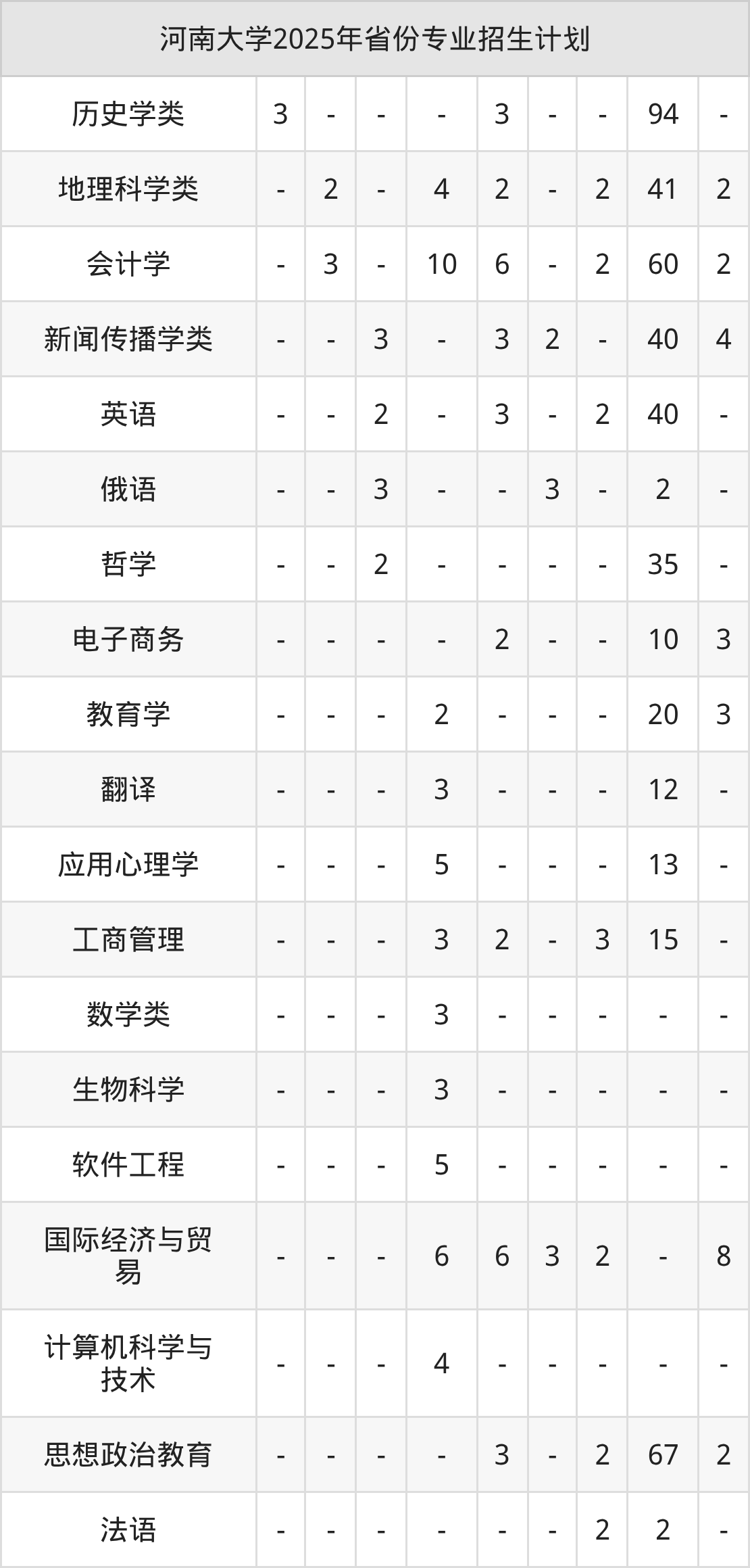| 河南大学本科招生专业 | |