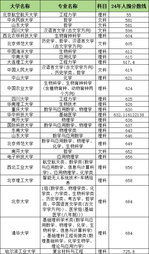 2024年四川省强基计划最低入围分数线是581分,对应的是中央民族大学哲学专业和山东大学哲学专业,选科要求是文科。