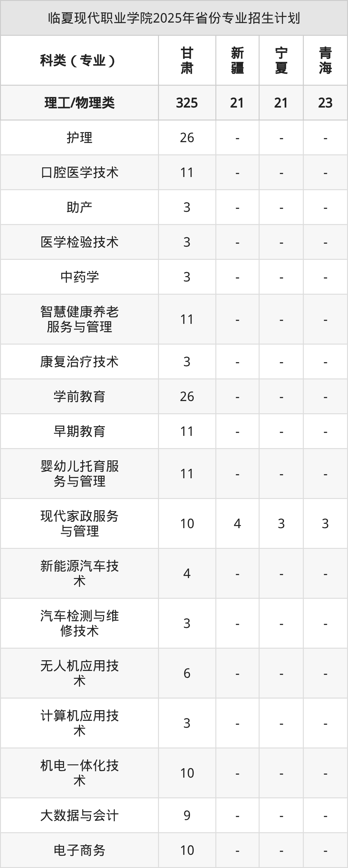 2026年临夏现代职业学院专科招生计划待公布,下面附上2025年数据,暂供参考: