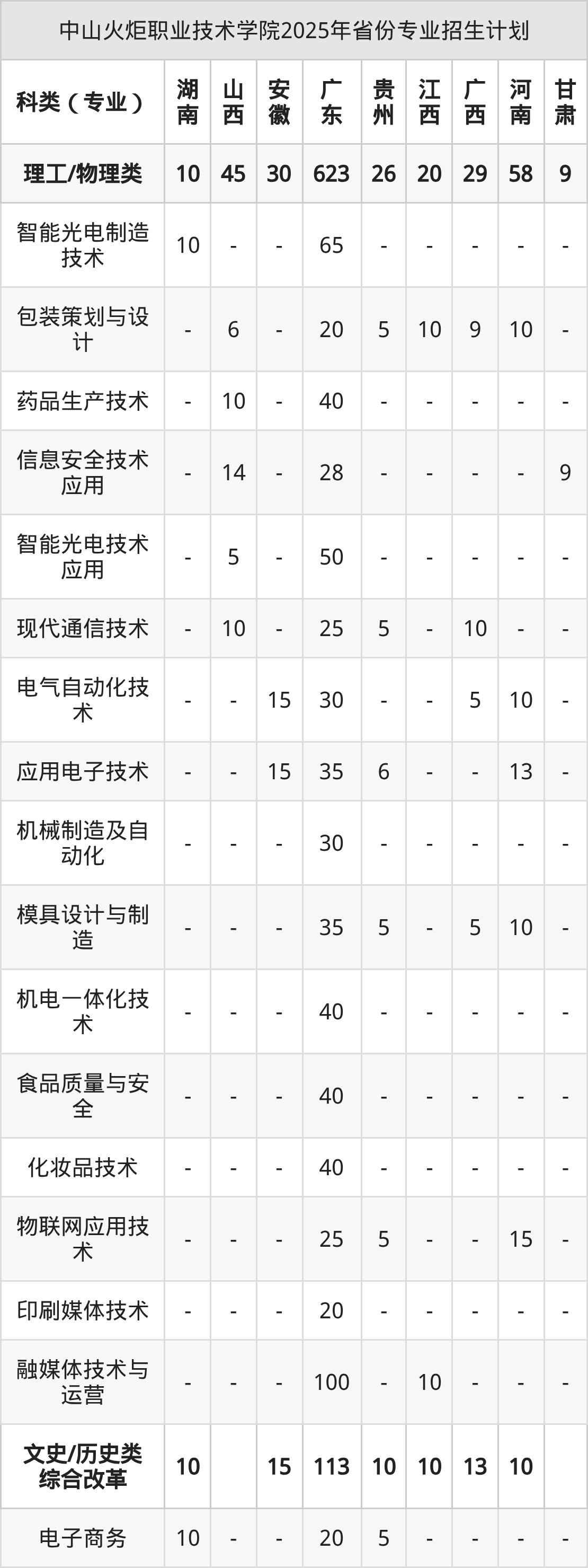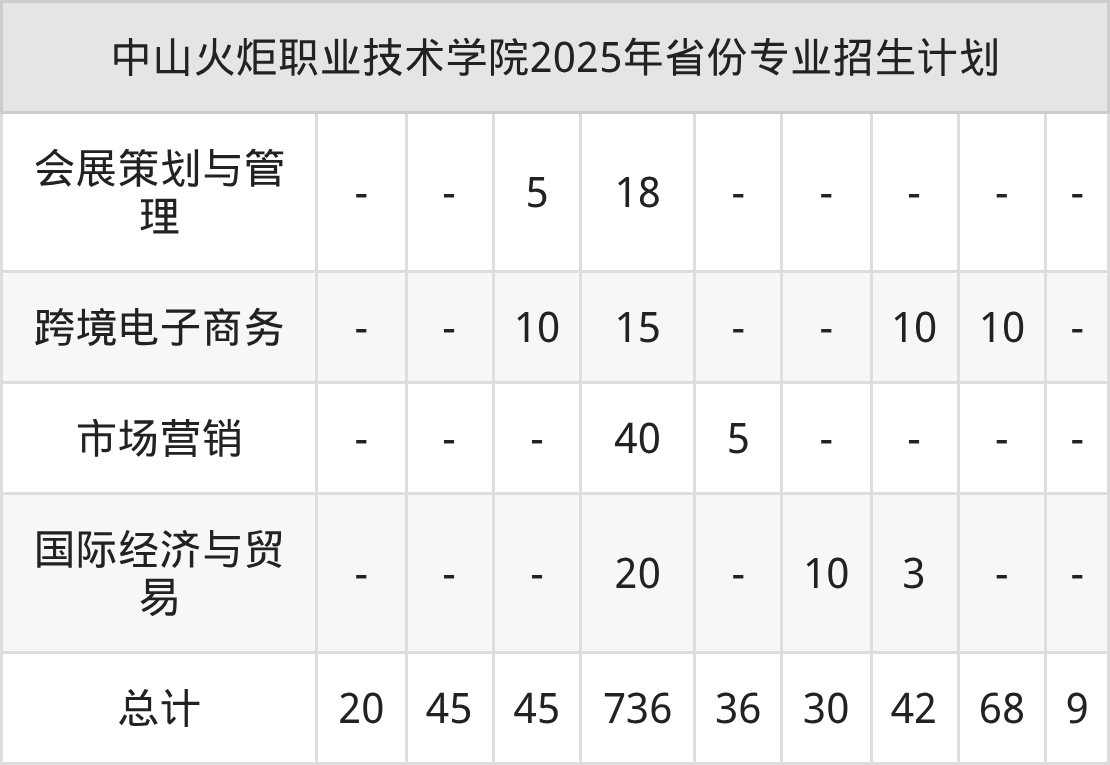 2026年中山火炬职业技术学院专科招生计划待公布,下面附上2025年数据,暂供参考: