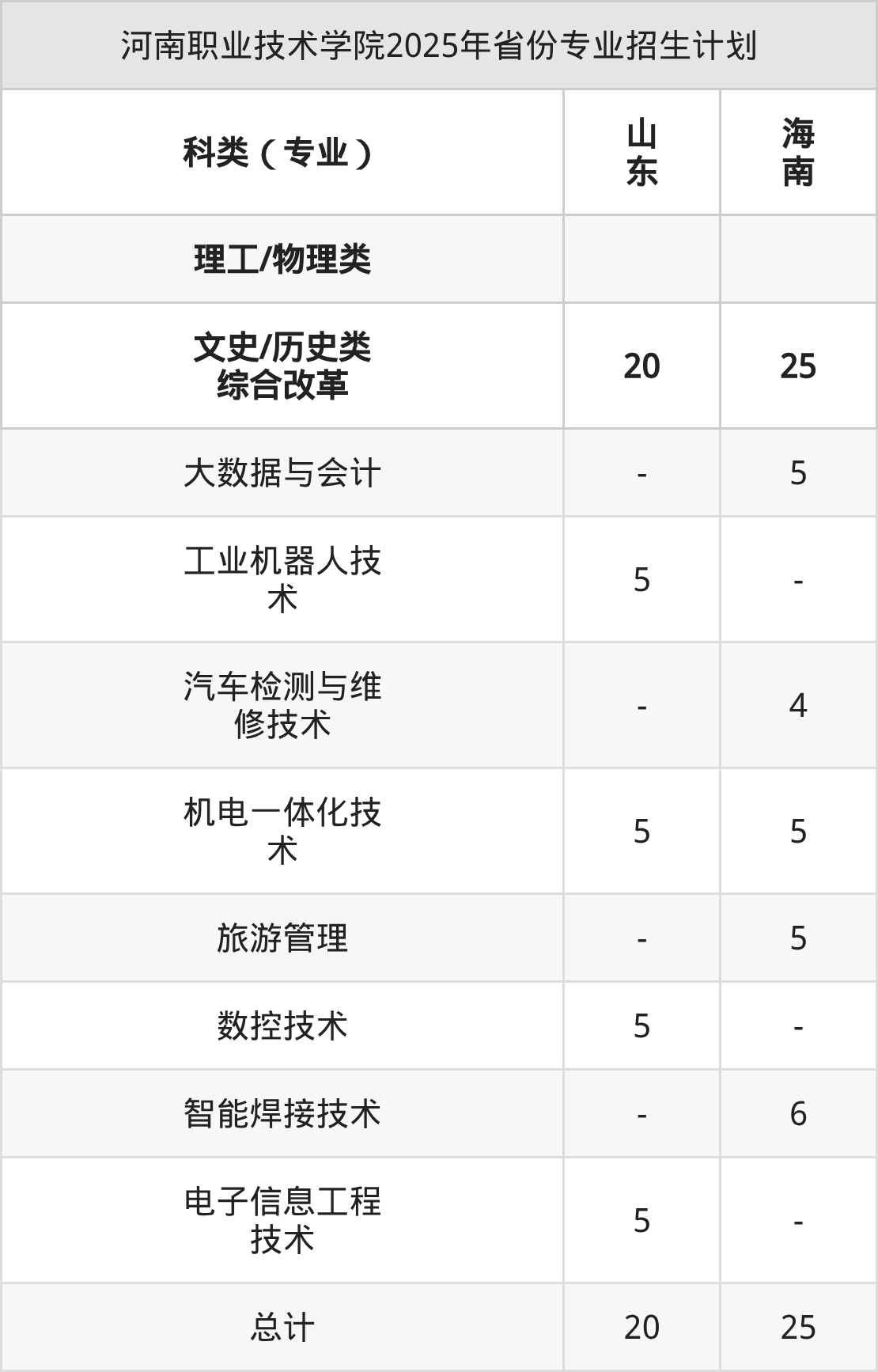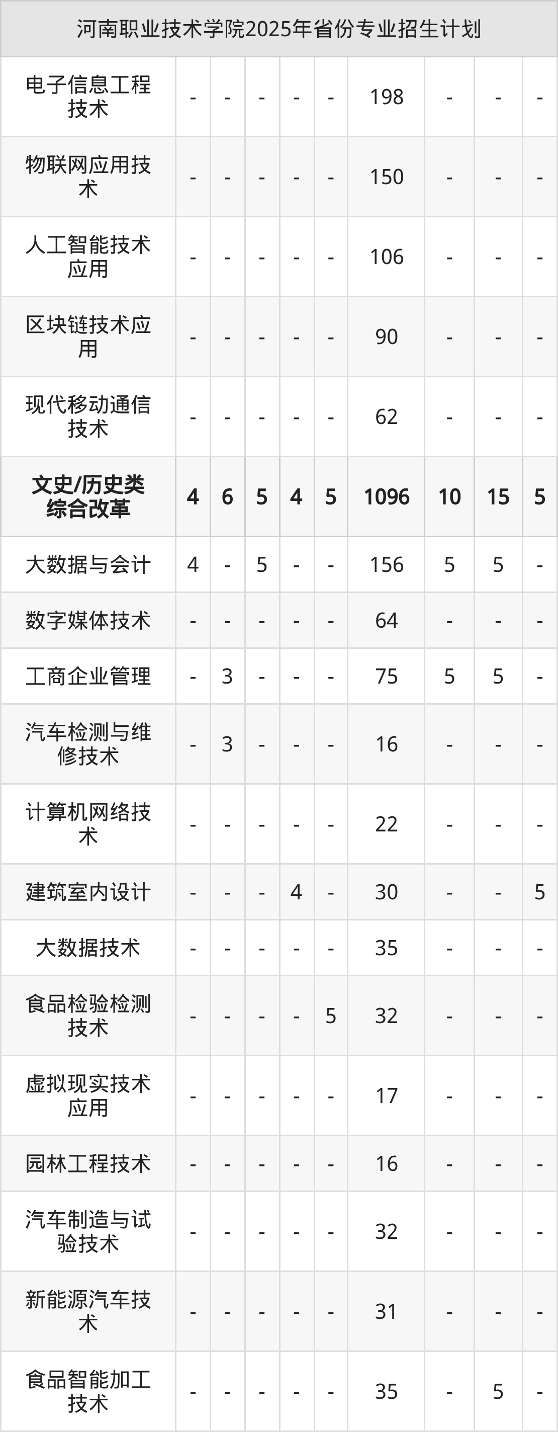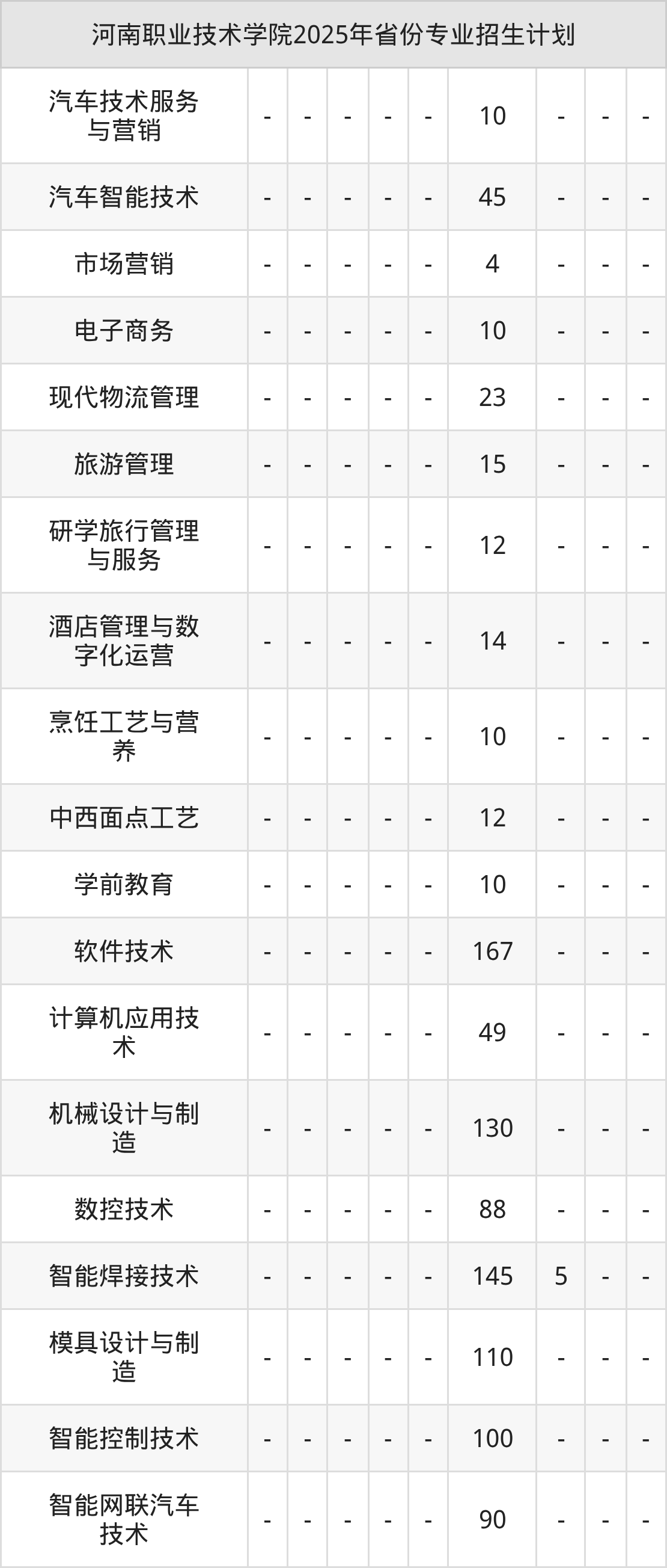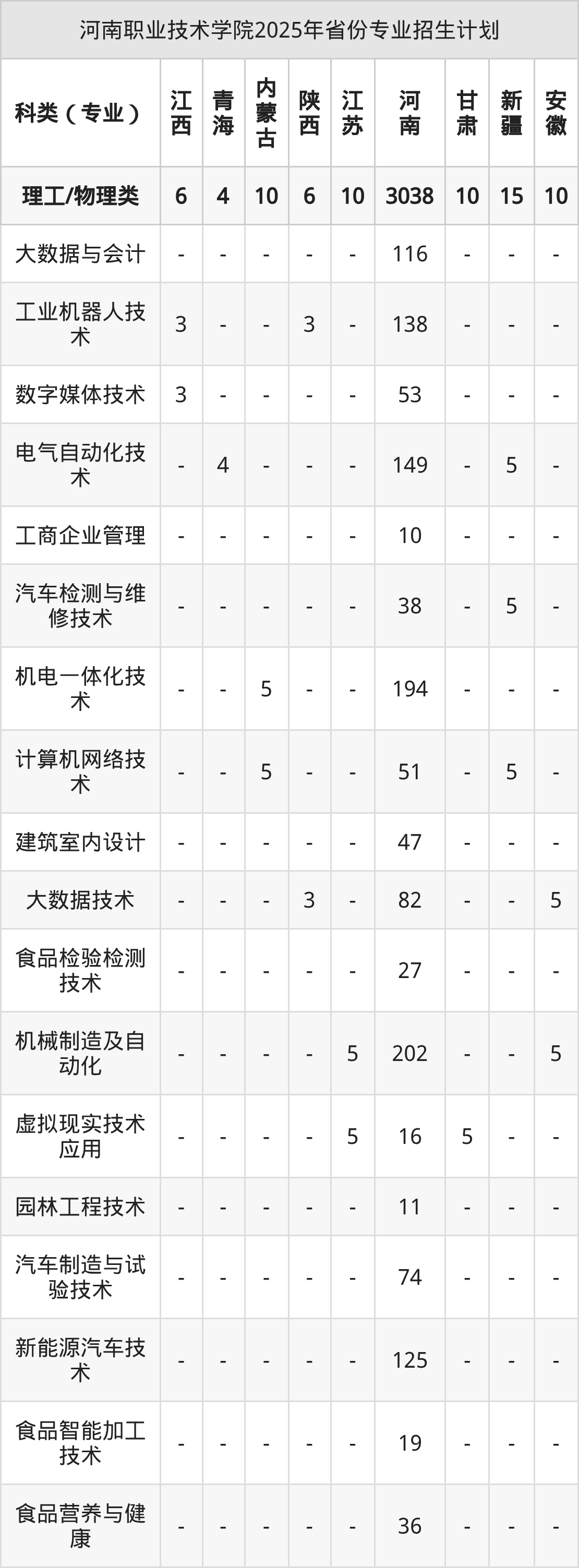 2026年河南职业技术学院专科招生计划待公布,下面附上2025年数据,暂供参考: