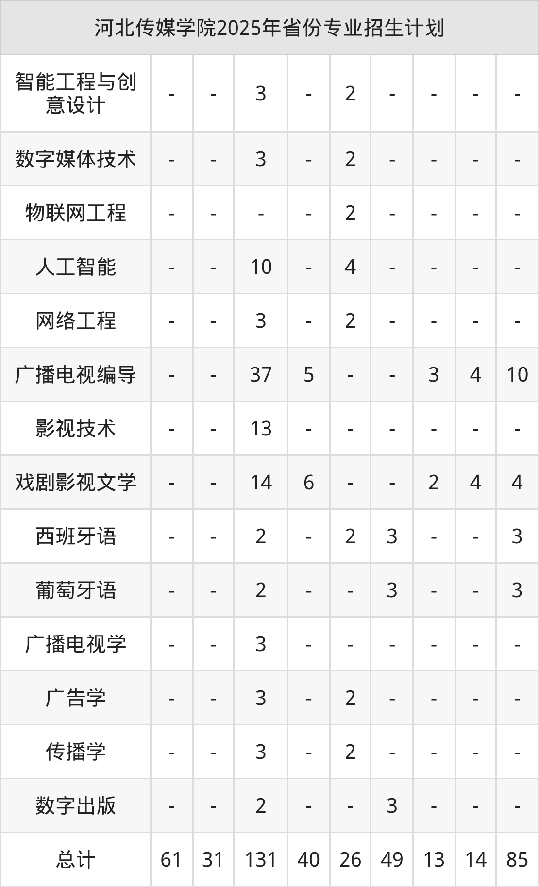 而各省份的招生计划数为山西61人,山东131人,陕西14人,河南85人,福建16人等。