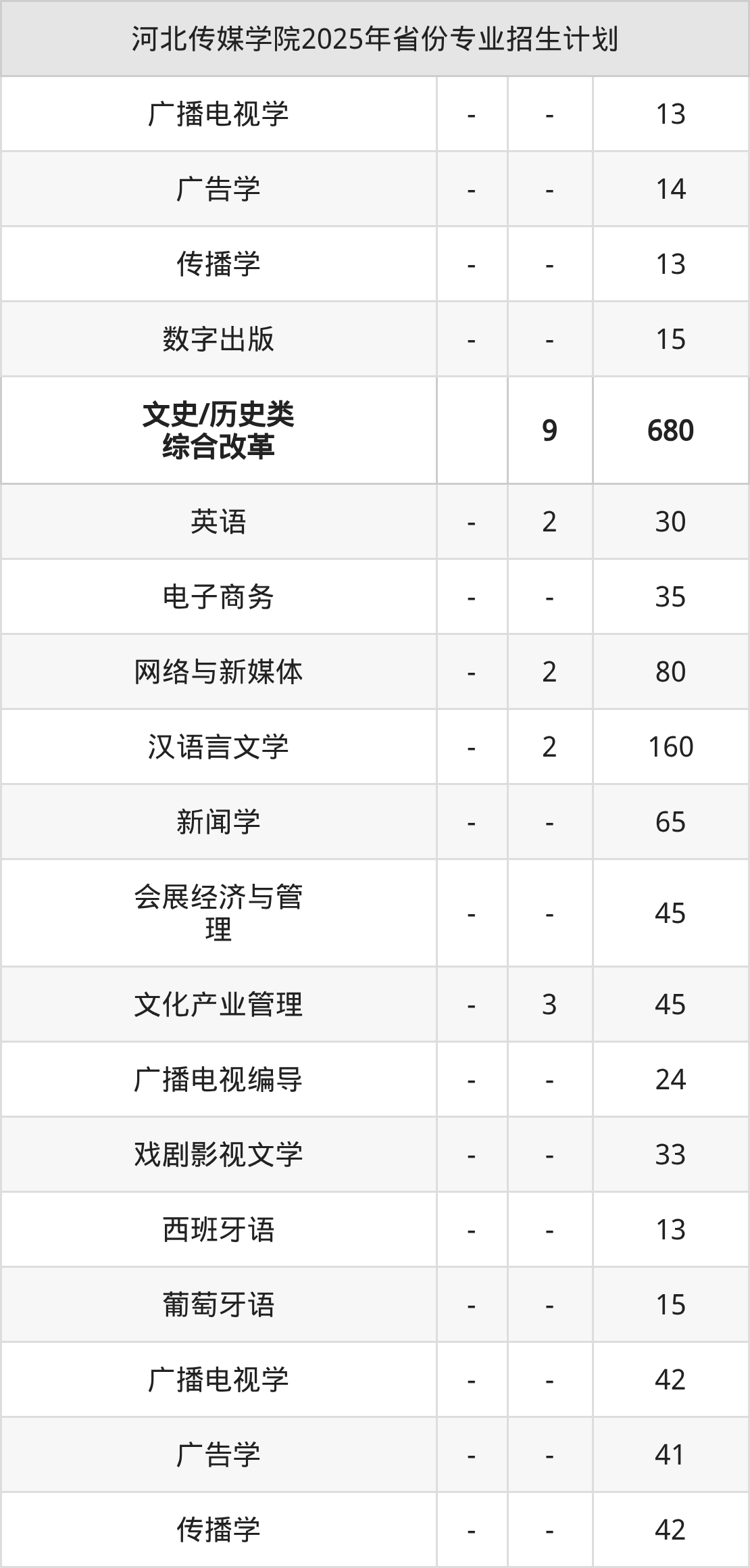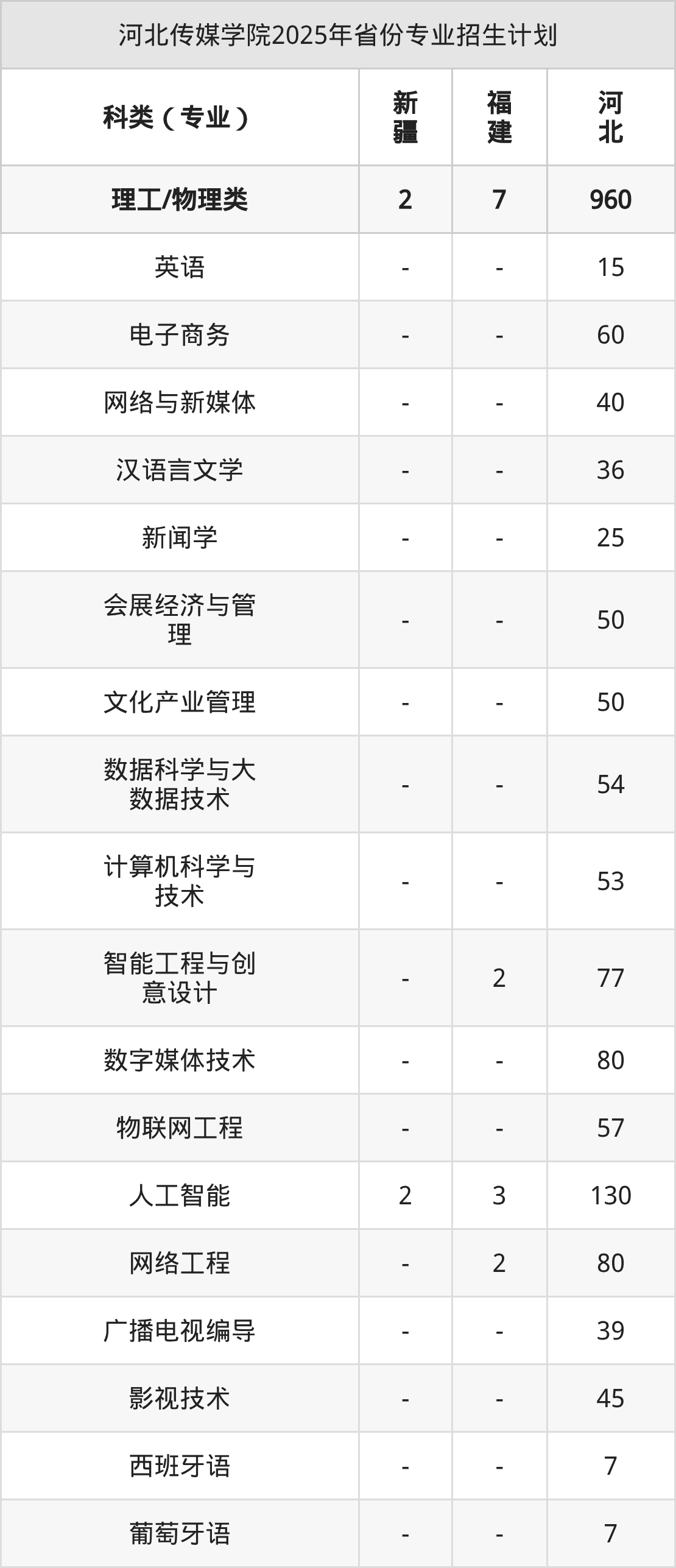 2026年河北传媒学院本科招生计划待公布,下面附上2025年数据,暂供参考: