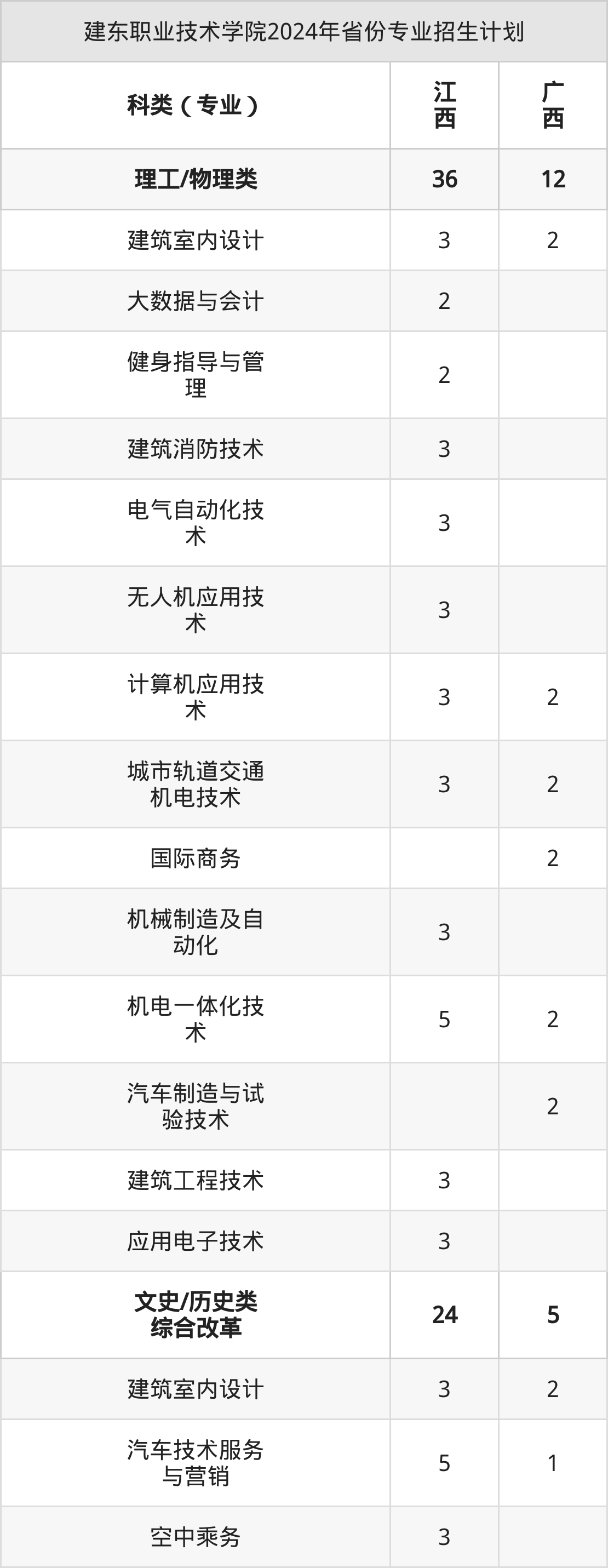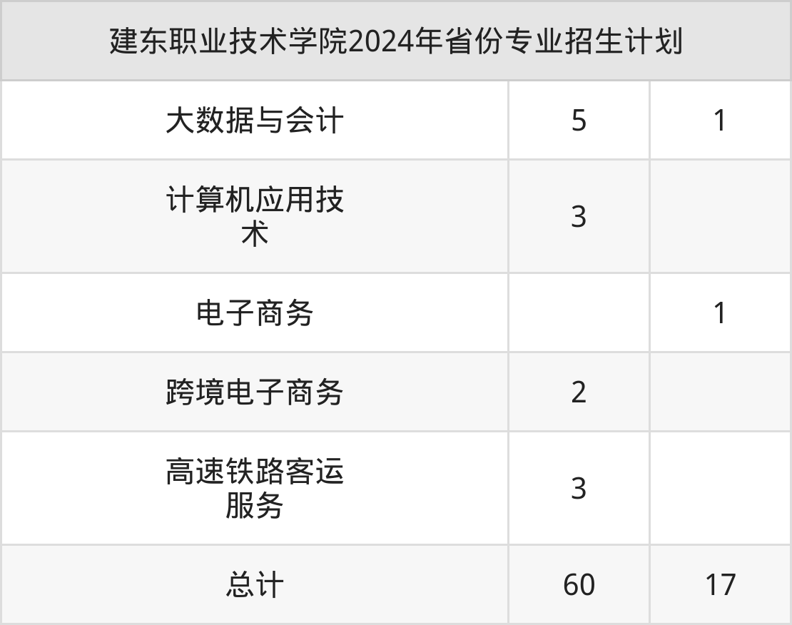 2025年建东职业技术学院专科招生计划待公布,下面附上2024年数据,暂供参考: