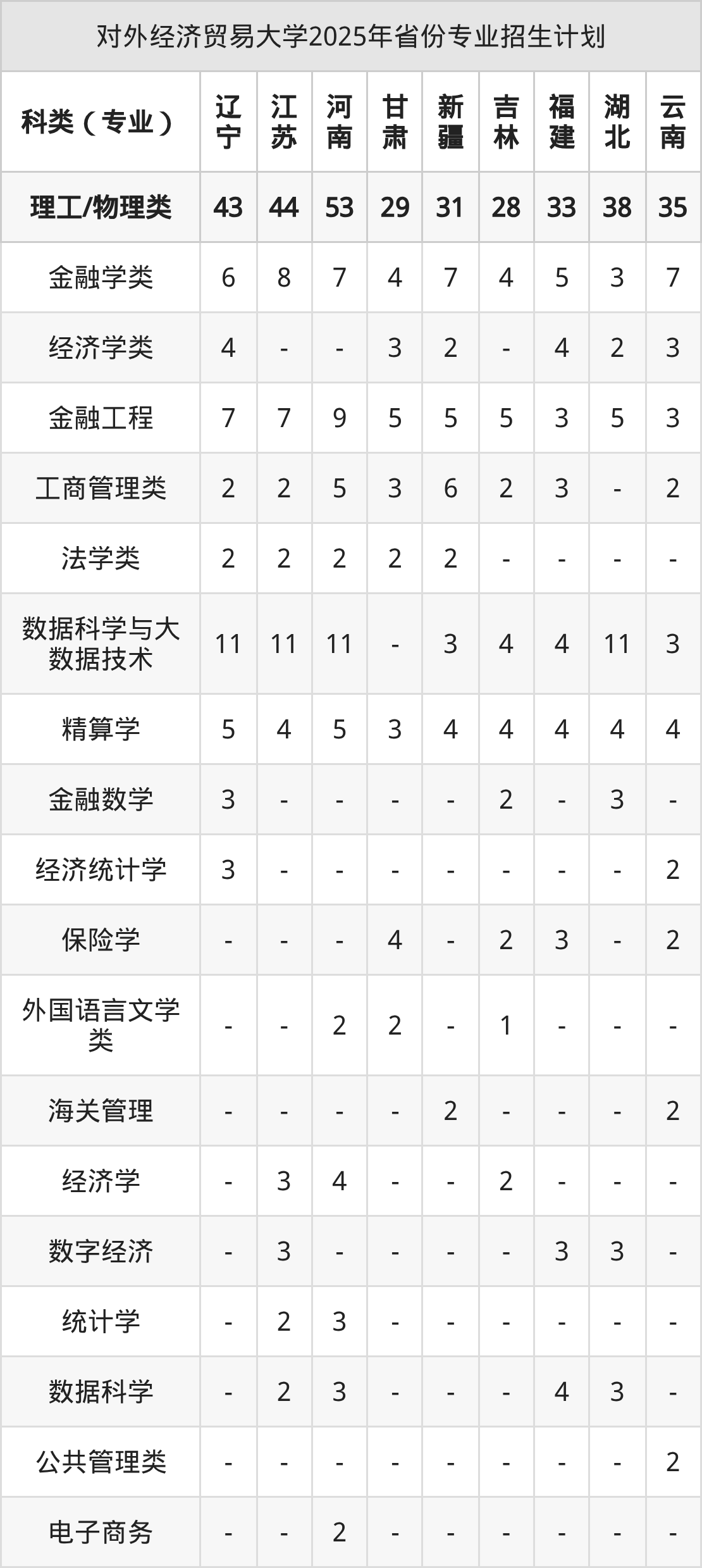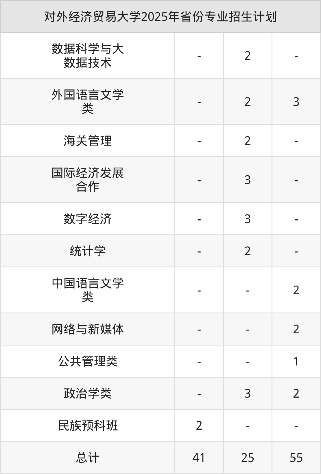 2026年对外经济贸易大学本科招生计划待公布,下面附上2025年数据,暂供参考: