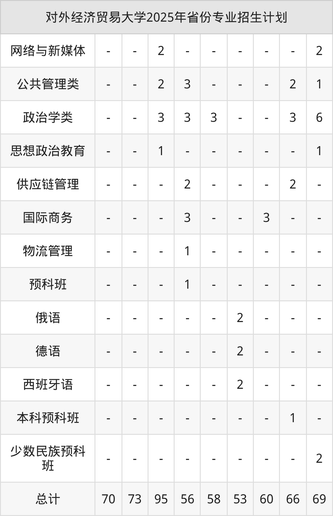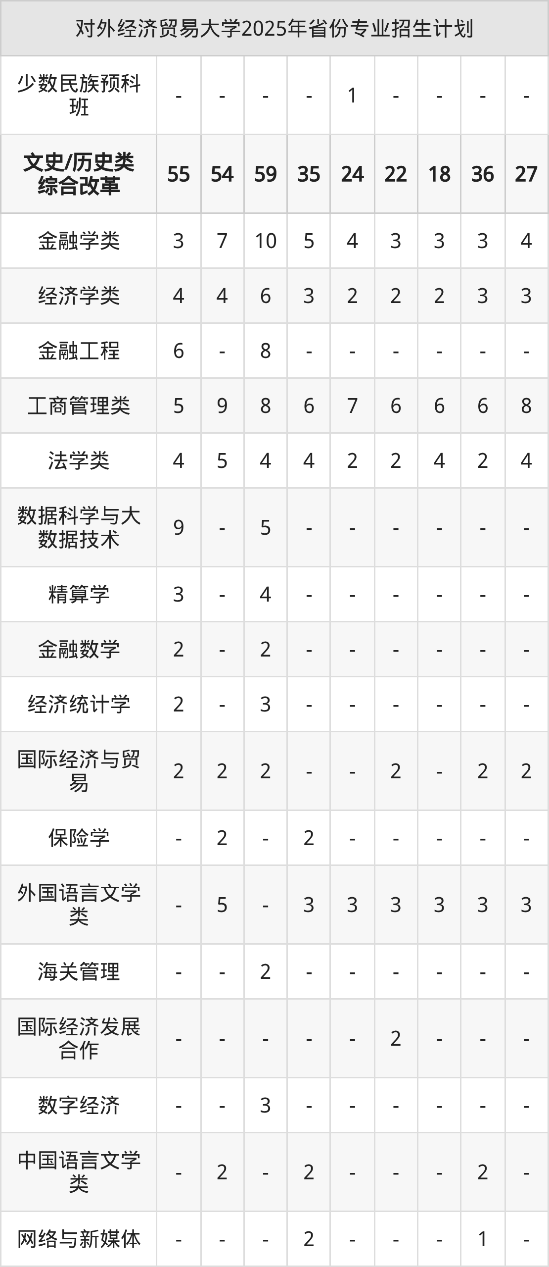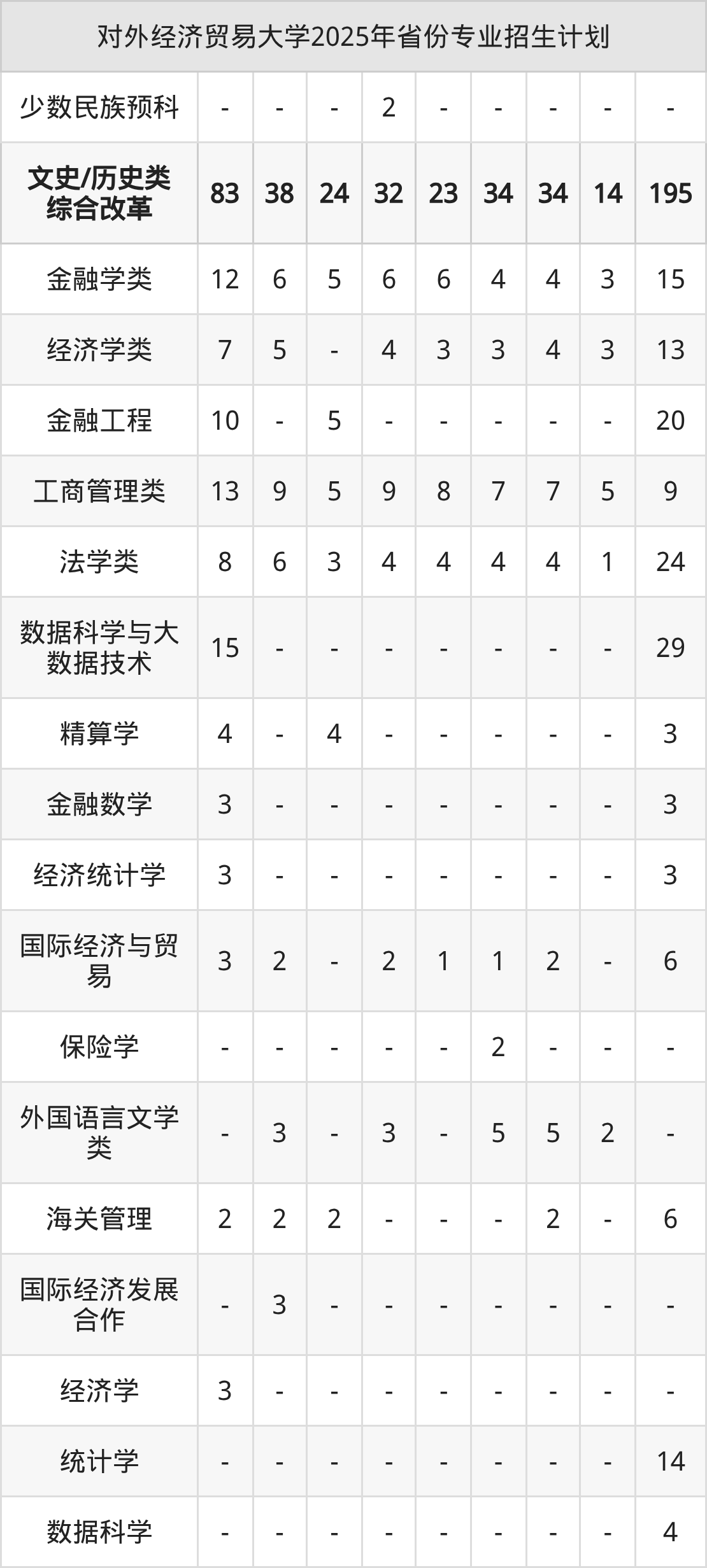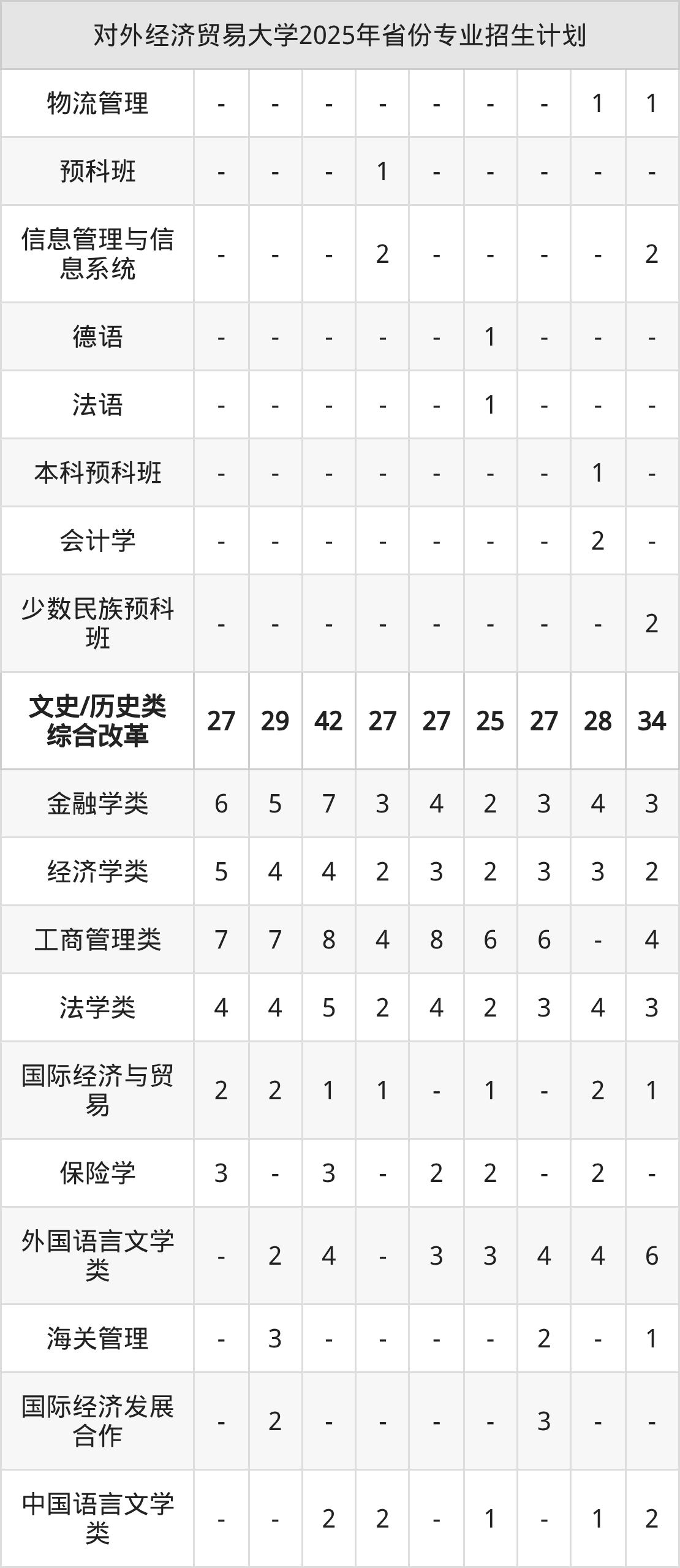 | 对外经济贸易大学2025年本科最低分汇总 | ||||