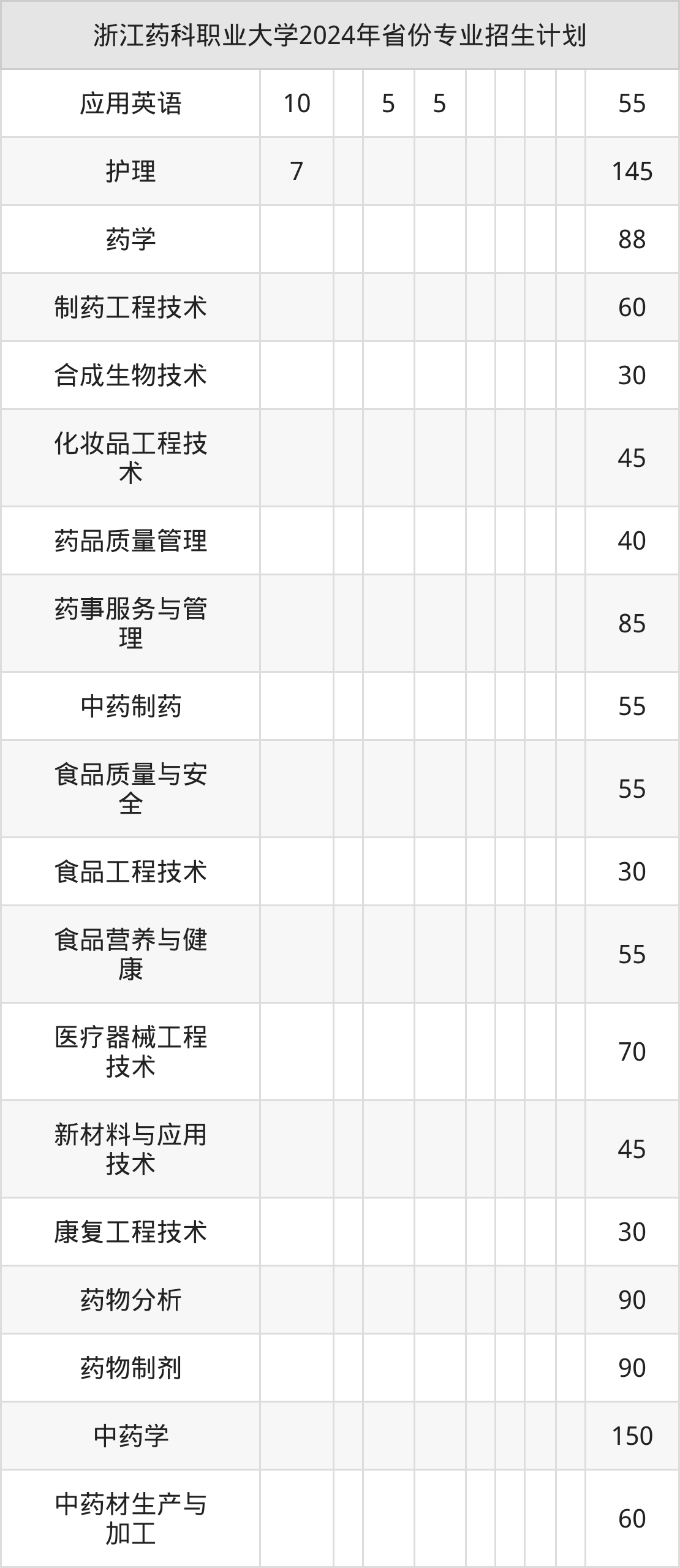 2025年浙江药科职业大学本科招生计划待公布,下面附上2024年数据,暂供参考:
